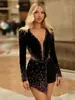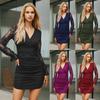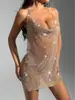 Ropa de Mujer Transfronteriza Vestido Amazon Sexy Abertura Falda de Lentejuelas Metálicas Diamantes de Imitación Falda con Cuello de Diamantes Completos Falda Slip