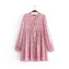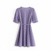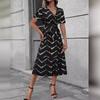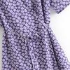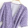 6202-20 Vestido cruzado con cordones y manga corta con estampado de margaritas, corte entallado, estilo abanico europeo y americano de primavera