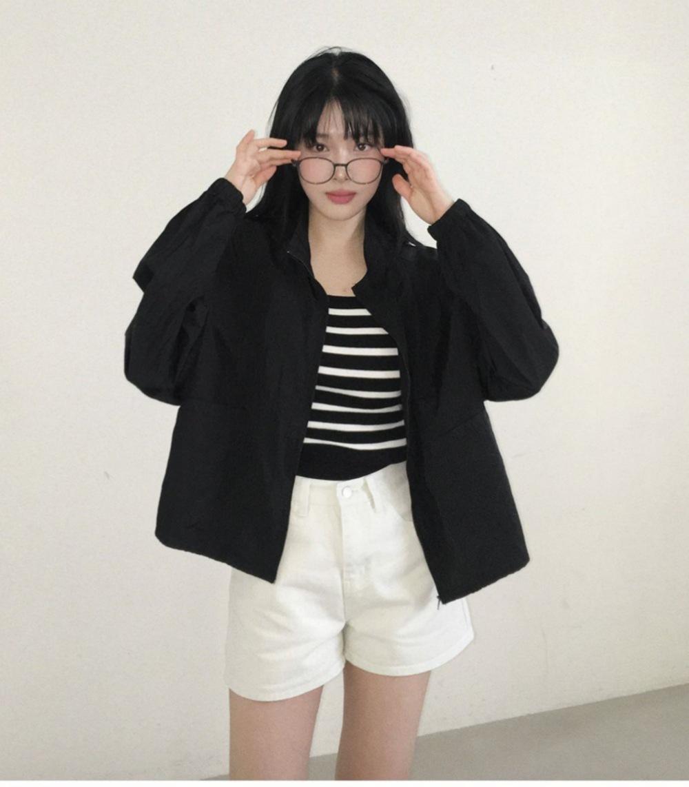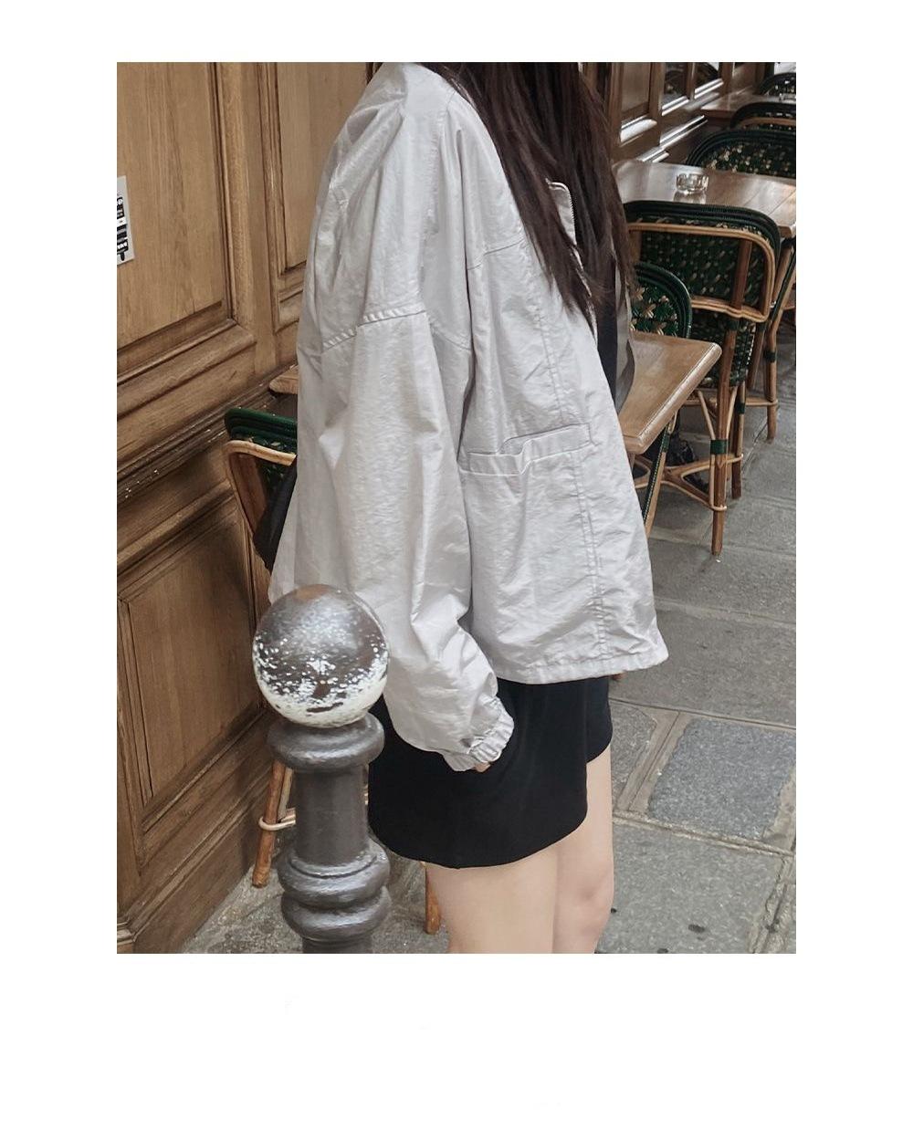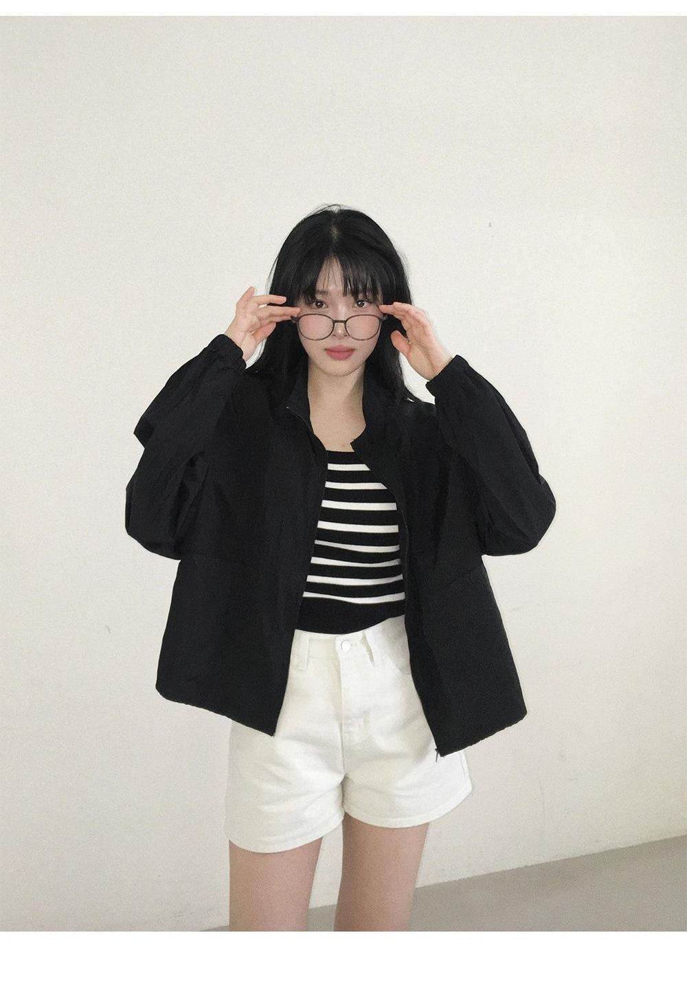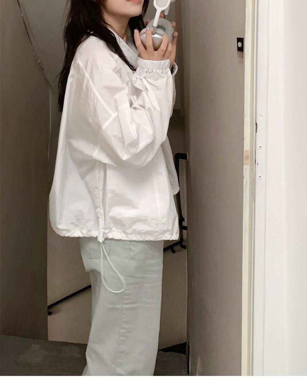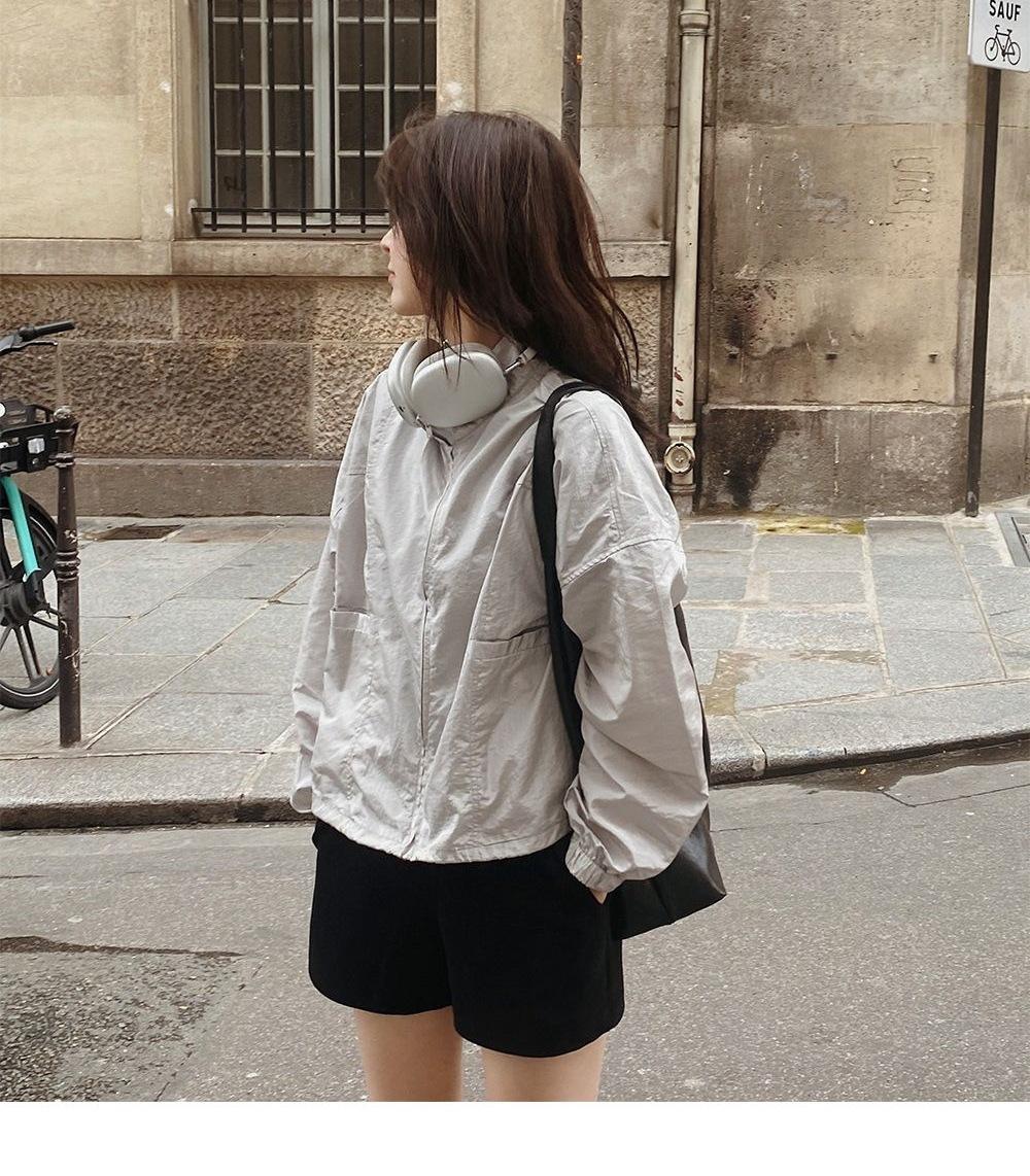 2025 Nuevo Verano Estilo Coreano Ligero y Transpirable Color Puro Chaqueta Corta Holgada Cuello Alto con Cordón en la Cintura Ropa de Protección Solar Ins Mujeres