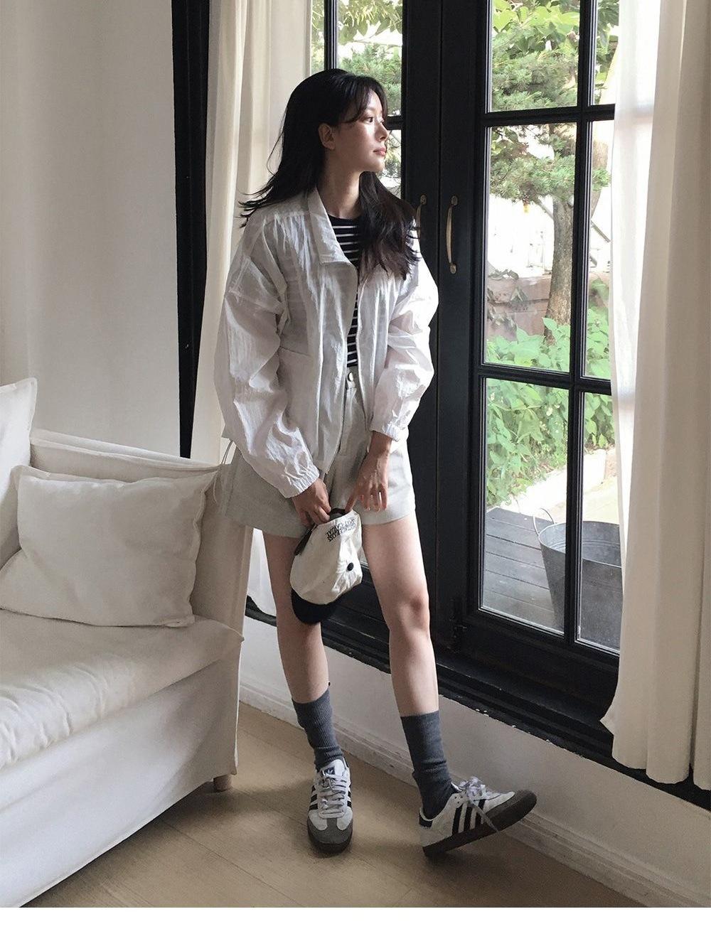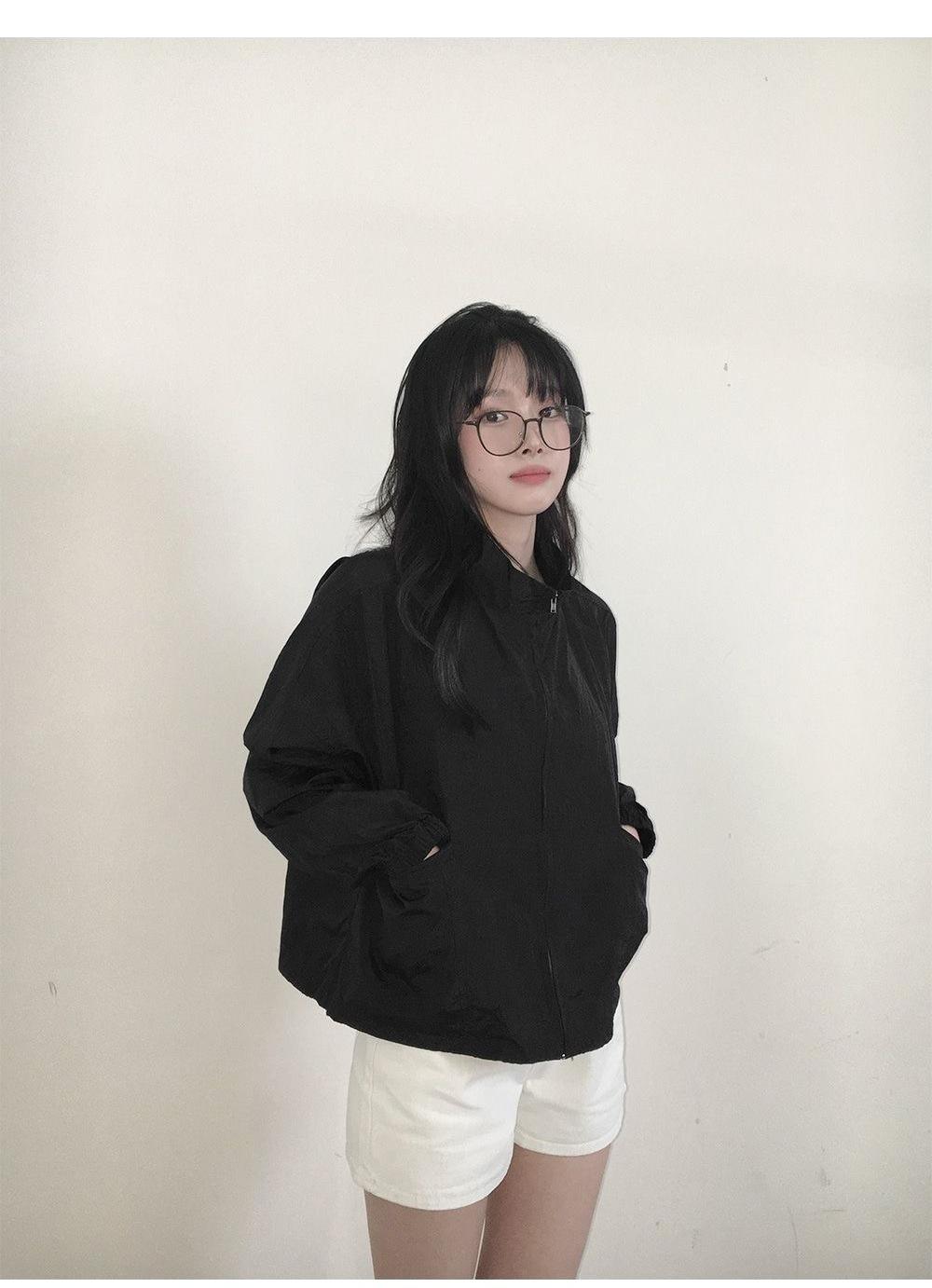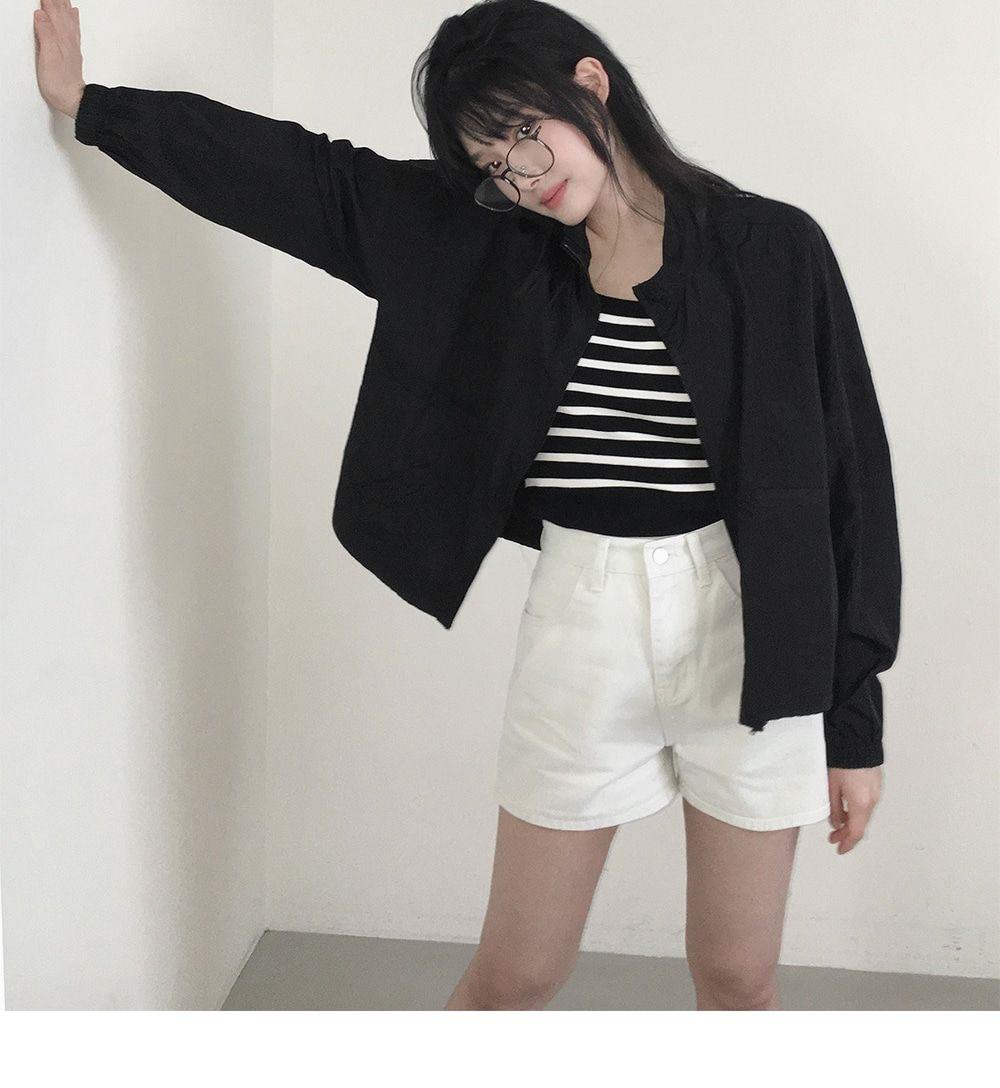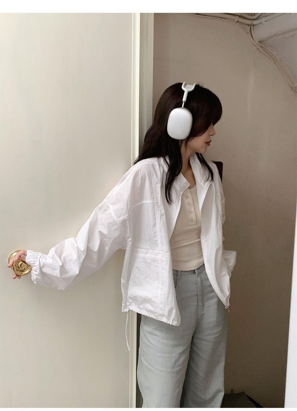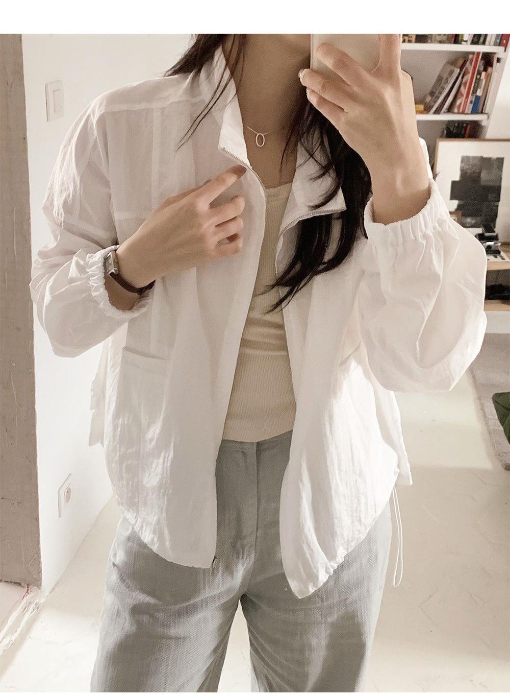2025 Nuevo Verano Estilo Coreano Ligero y Transpirable Color Puro Chaqueta Corta Holgada Cuello Alto con Cordón en la Cintura Ropa de Protección Solar Ins Mujeres