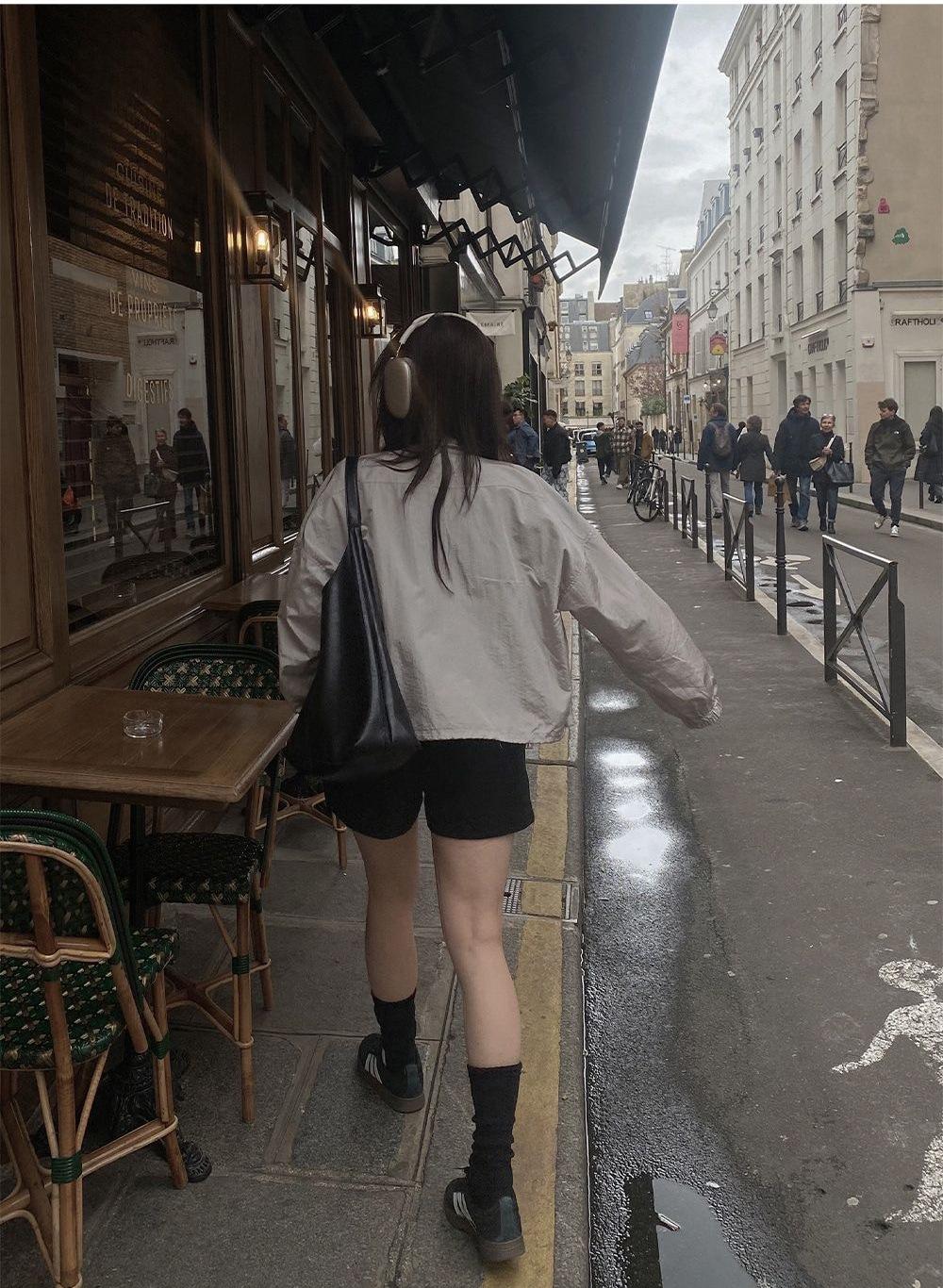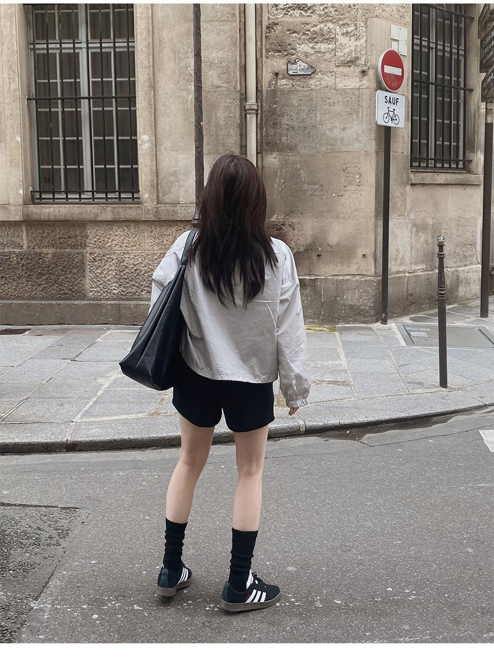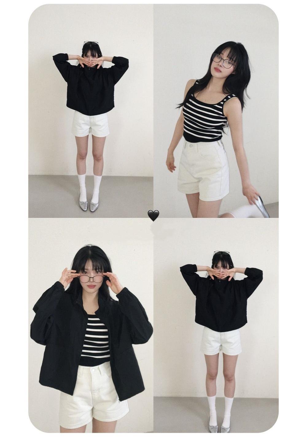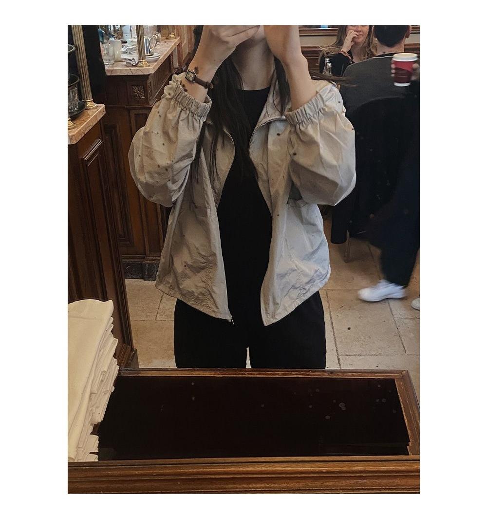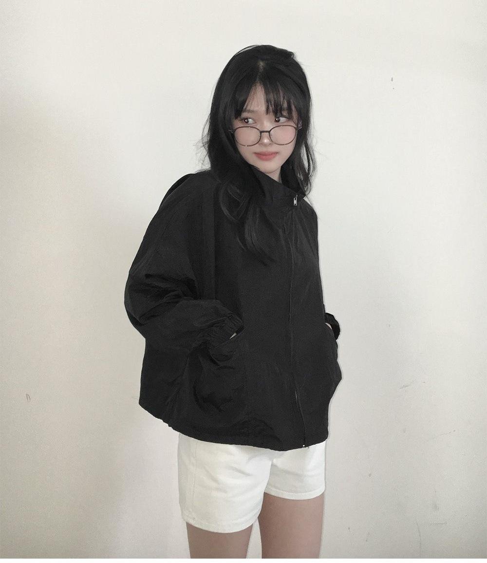 2025 Nuevo Verano Estilo Coreano Ligero y Transpirable Color Puro Chaqueta Corta Holgada Cuello Alto con Cordón en la Cintura Ropa de Protección Solar Ins Mujeres