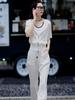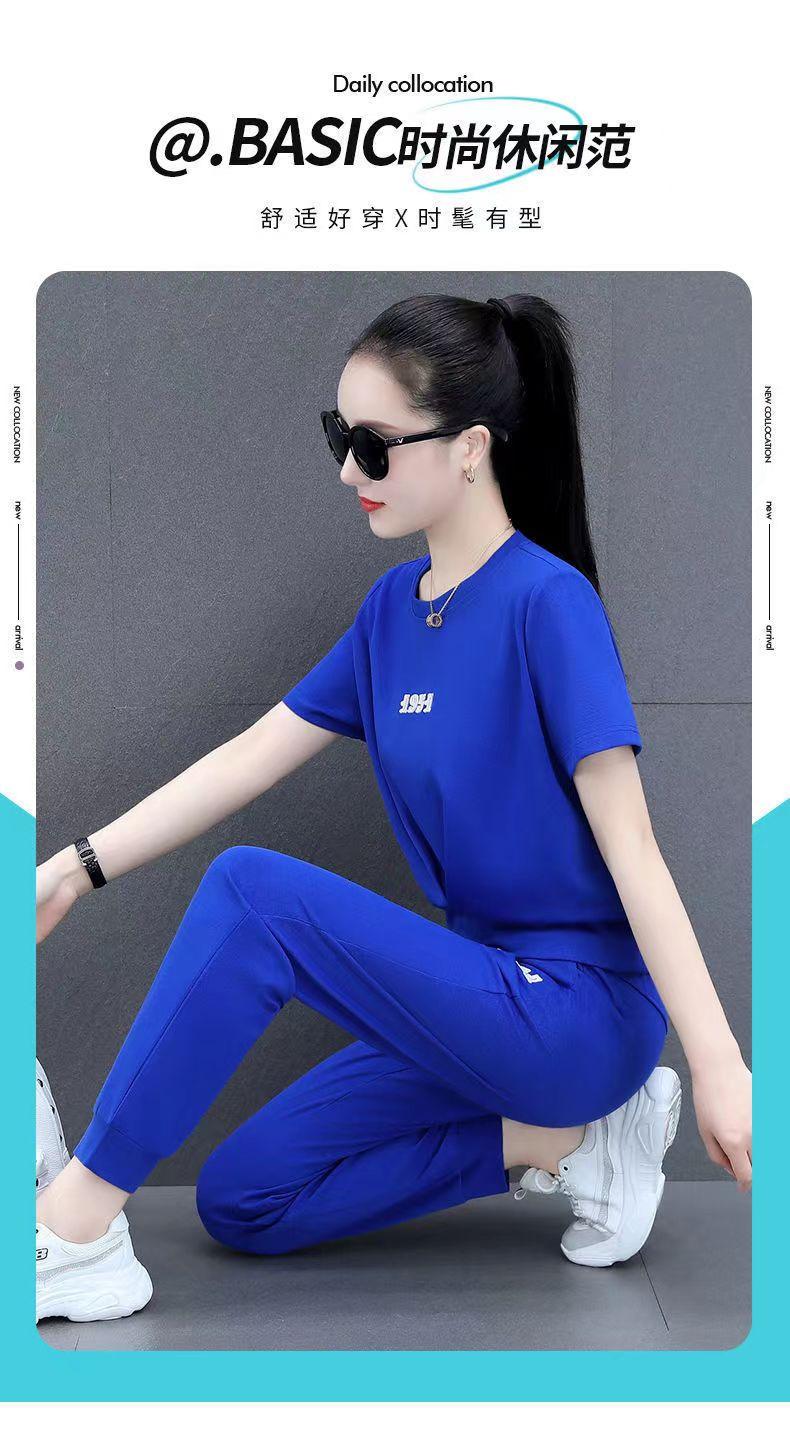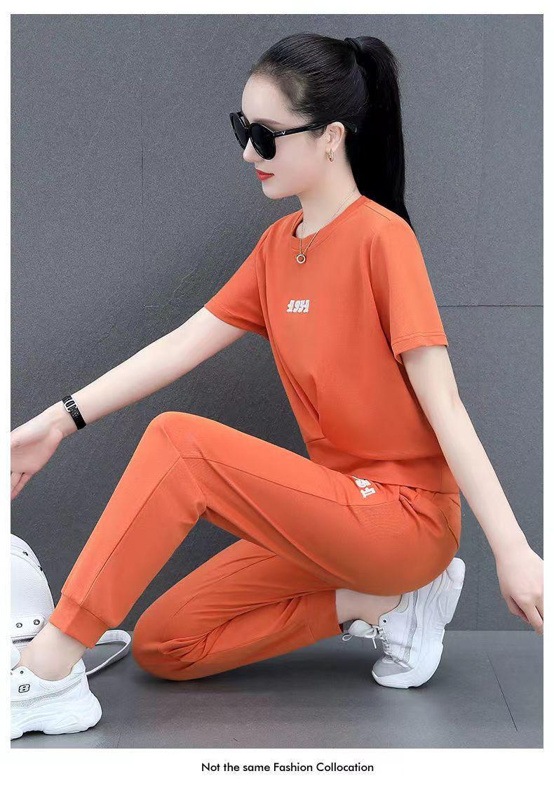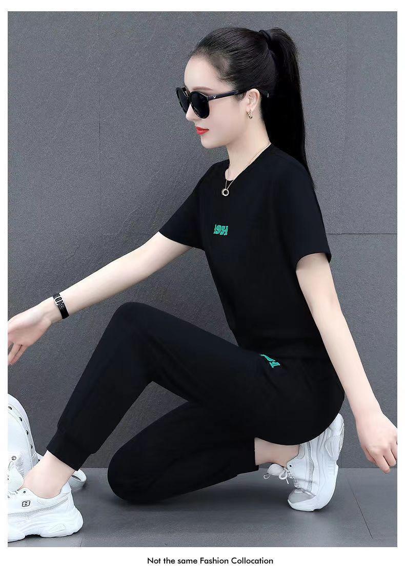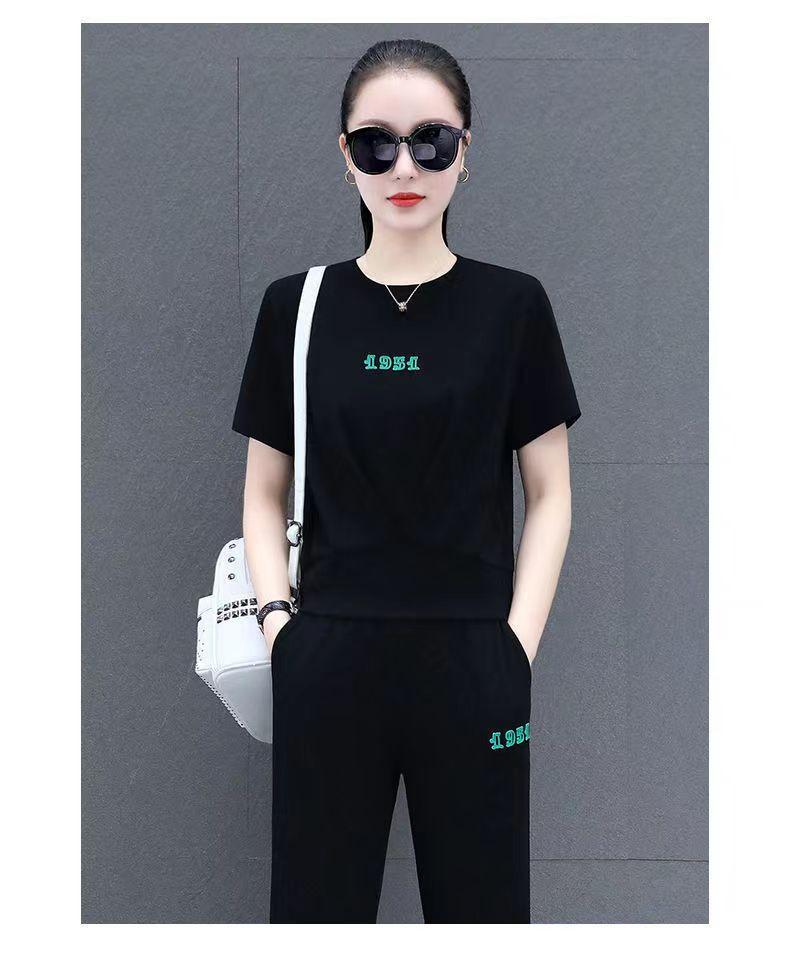 Conjunto deportivo de dos piezas para mujer, moda de verano 2024, top fino, manga corta, holgado, informal, estilo occidental