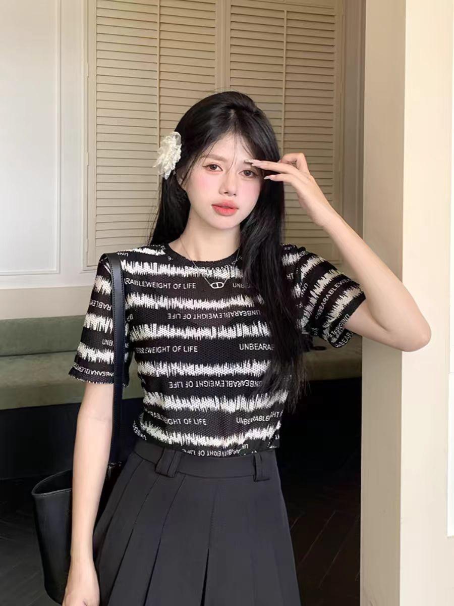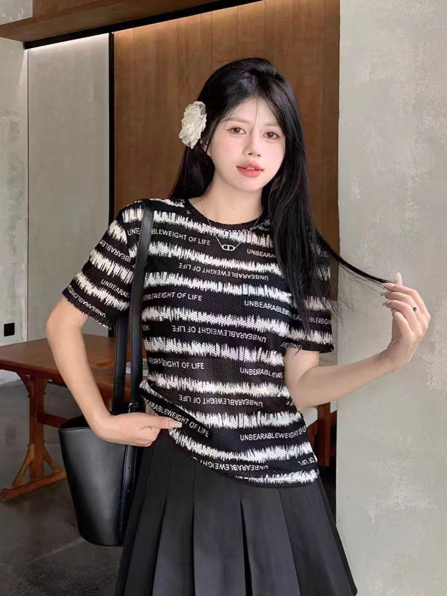 💫Playera de malla con cuello redondo, colores únicos de verano y un aire juguetón y femenino