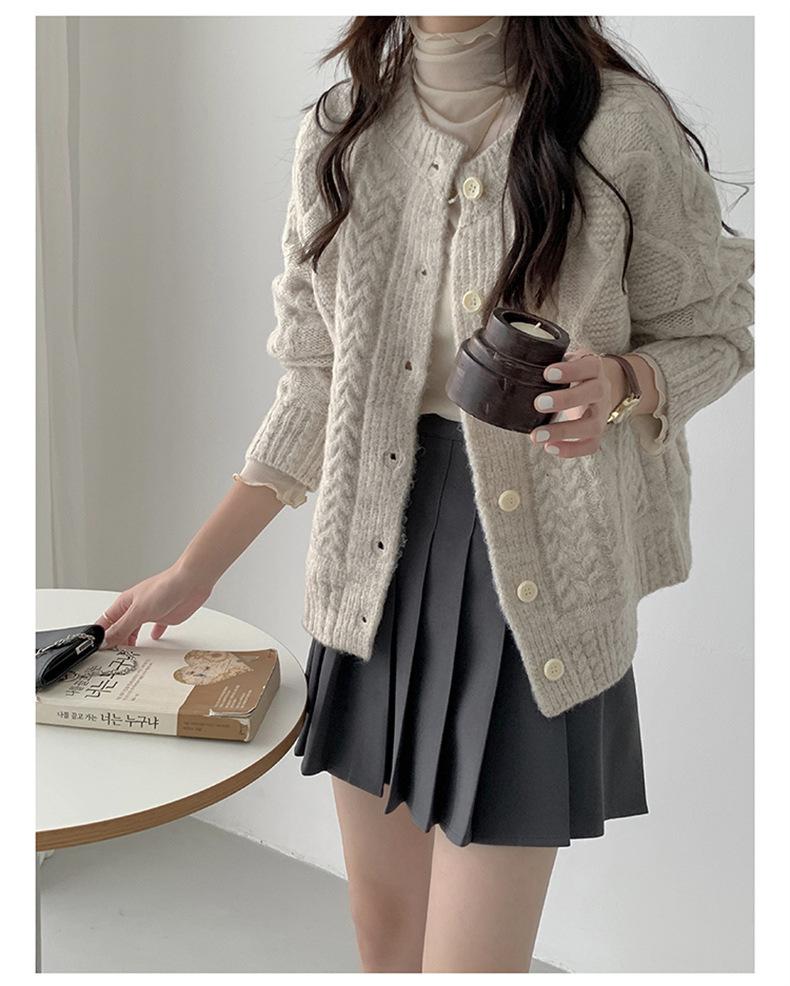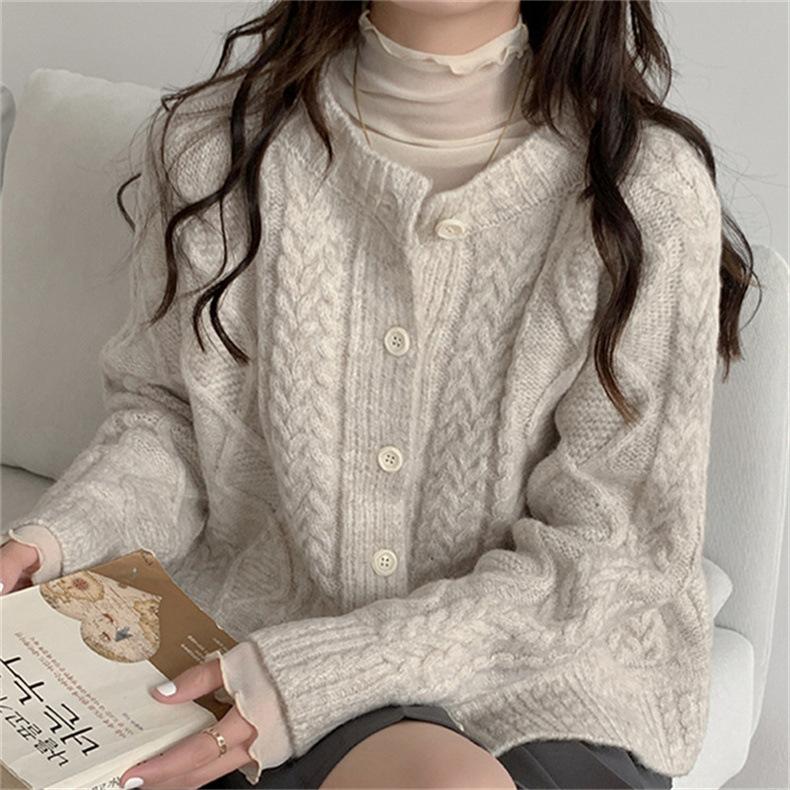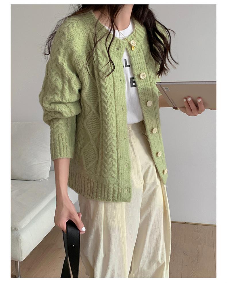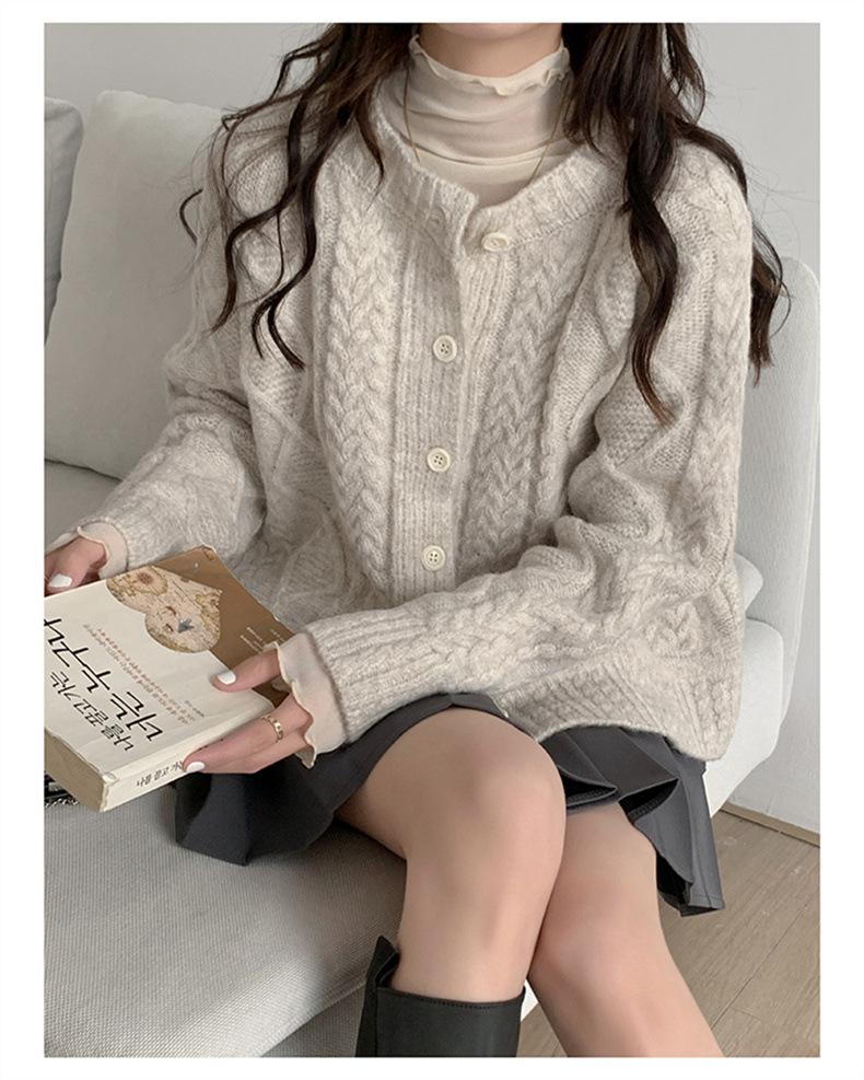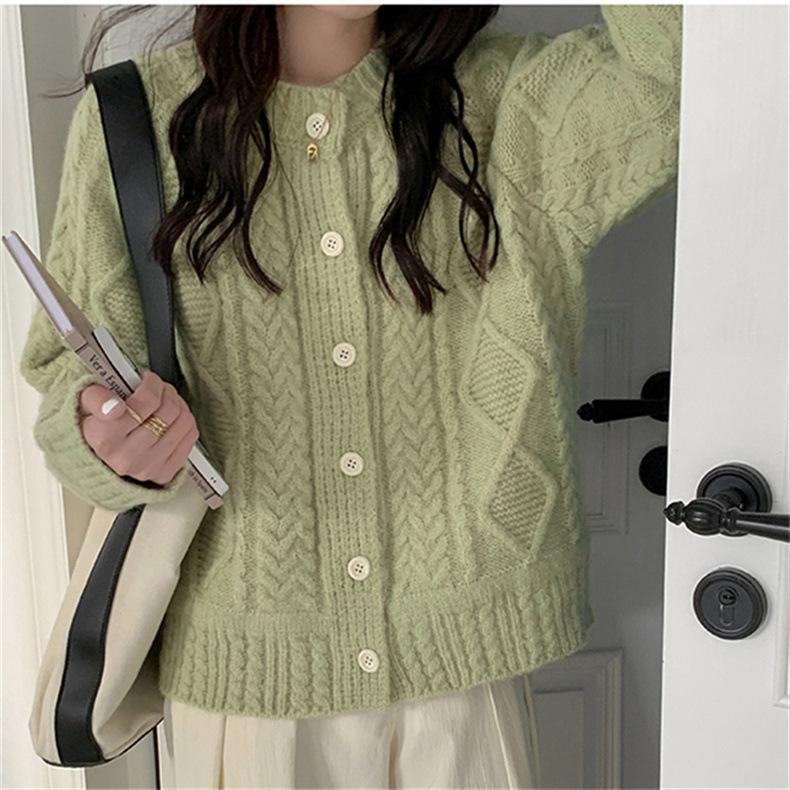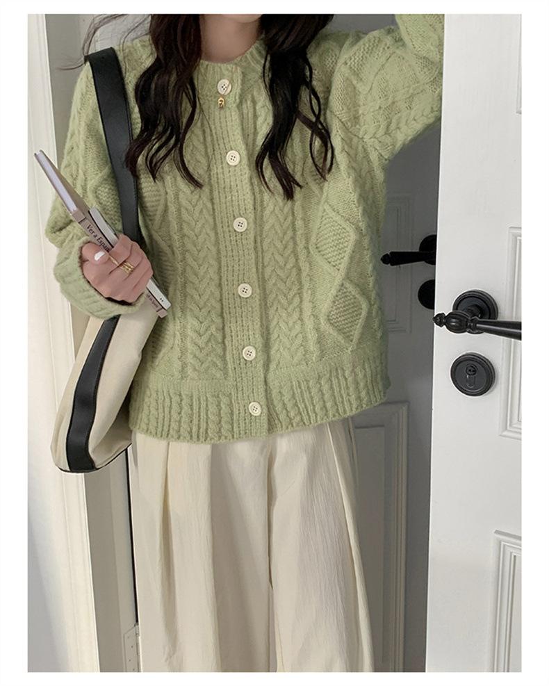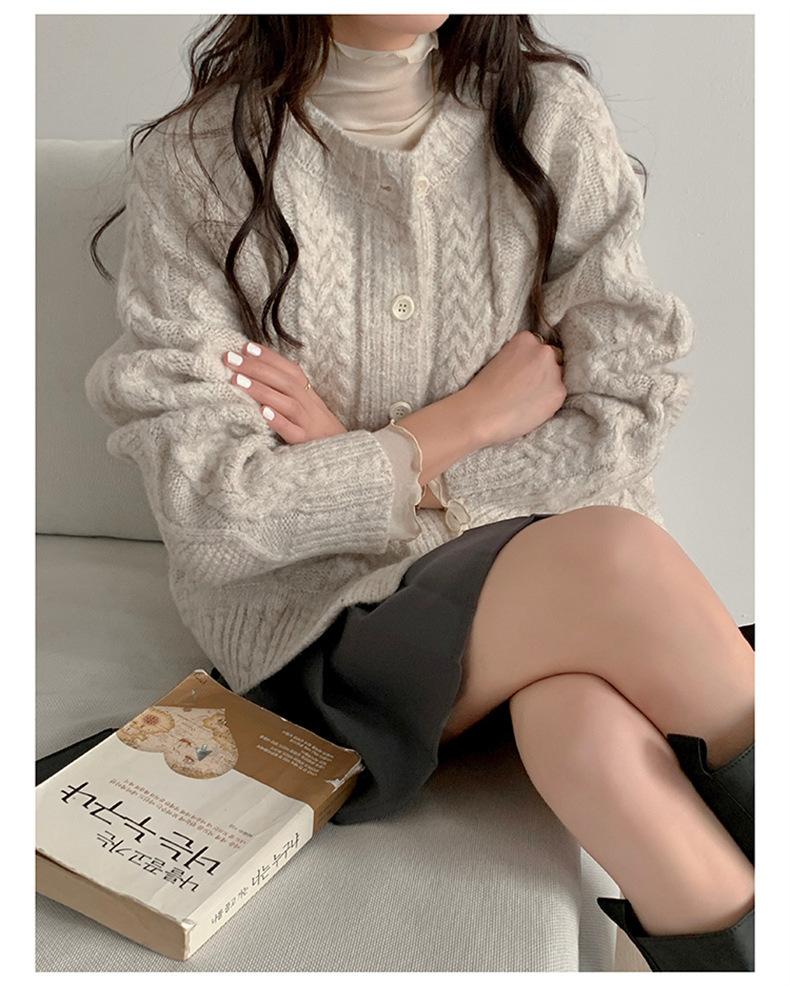 Cárdigan de punto con cuello redondo y manga larga para mujer, estilo coreano, holgado y combinable, para otoño e invierno