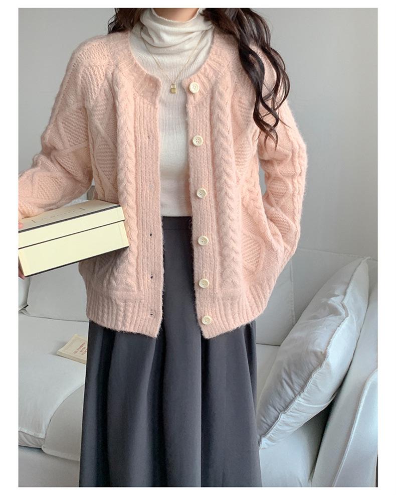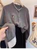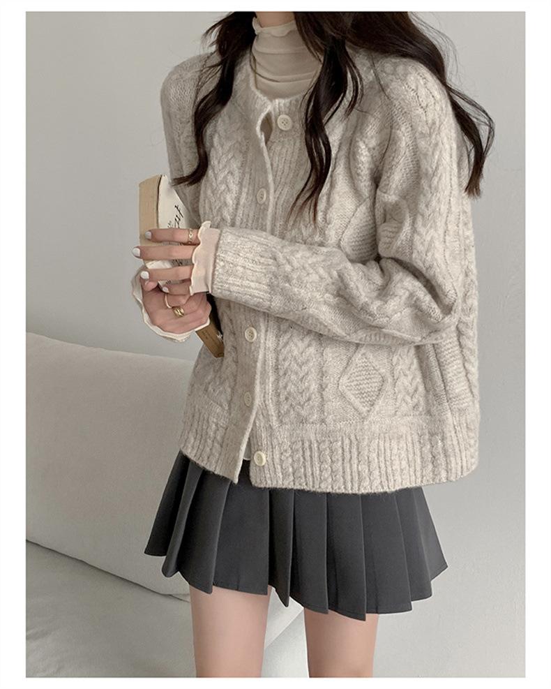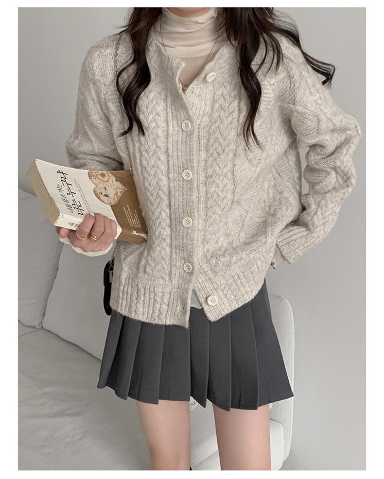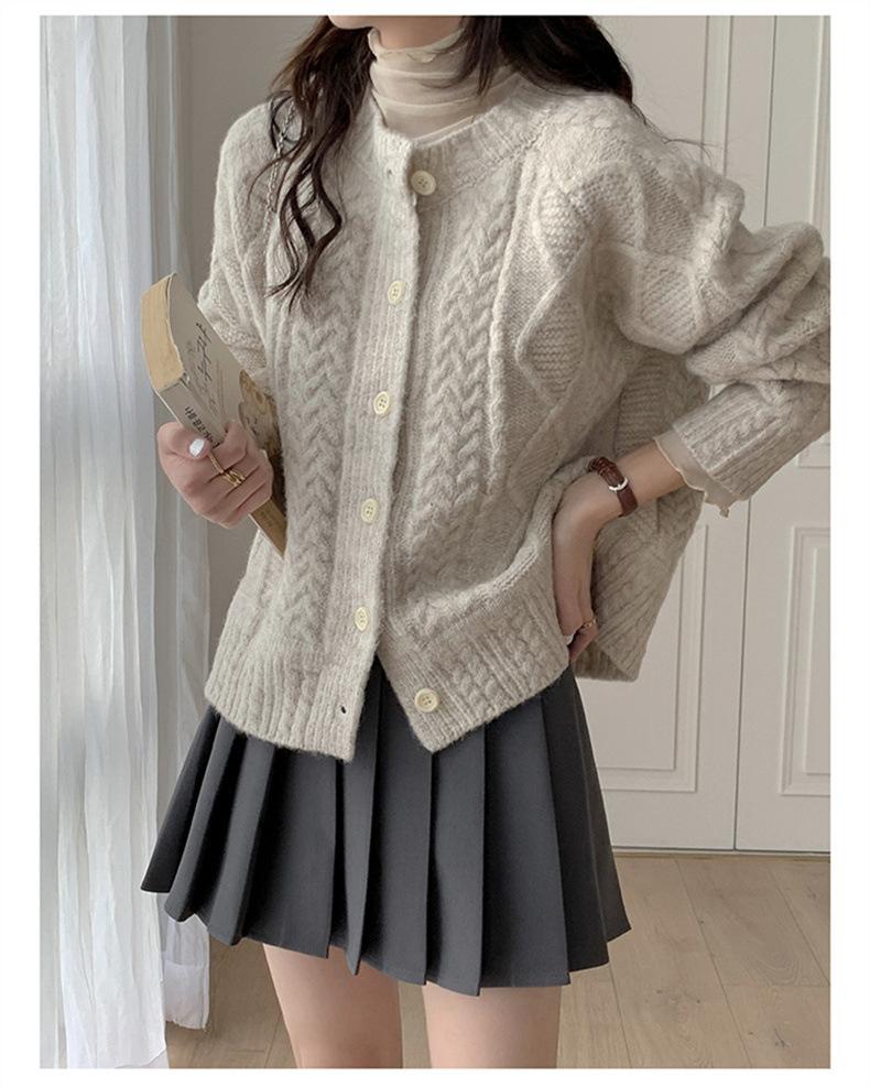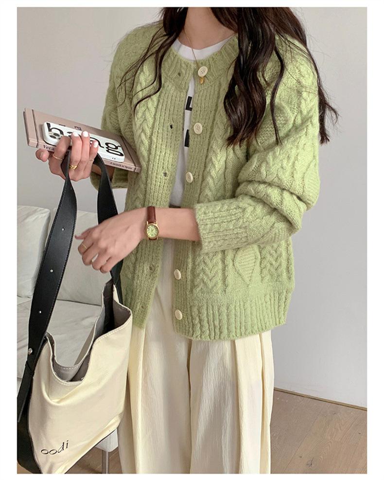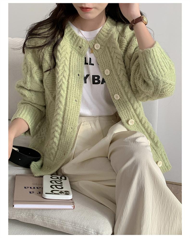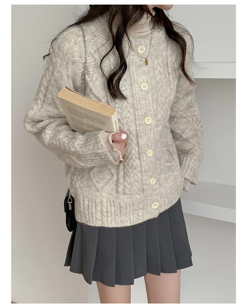 Cárdigan de punto con cuello redondo y manga larga para mujer, estilo coreano, holgado y combinable, para otoño e invierno