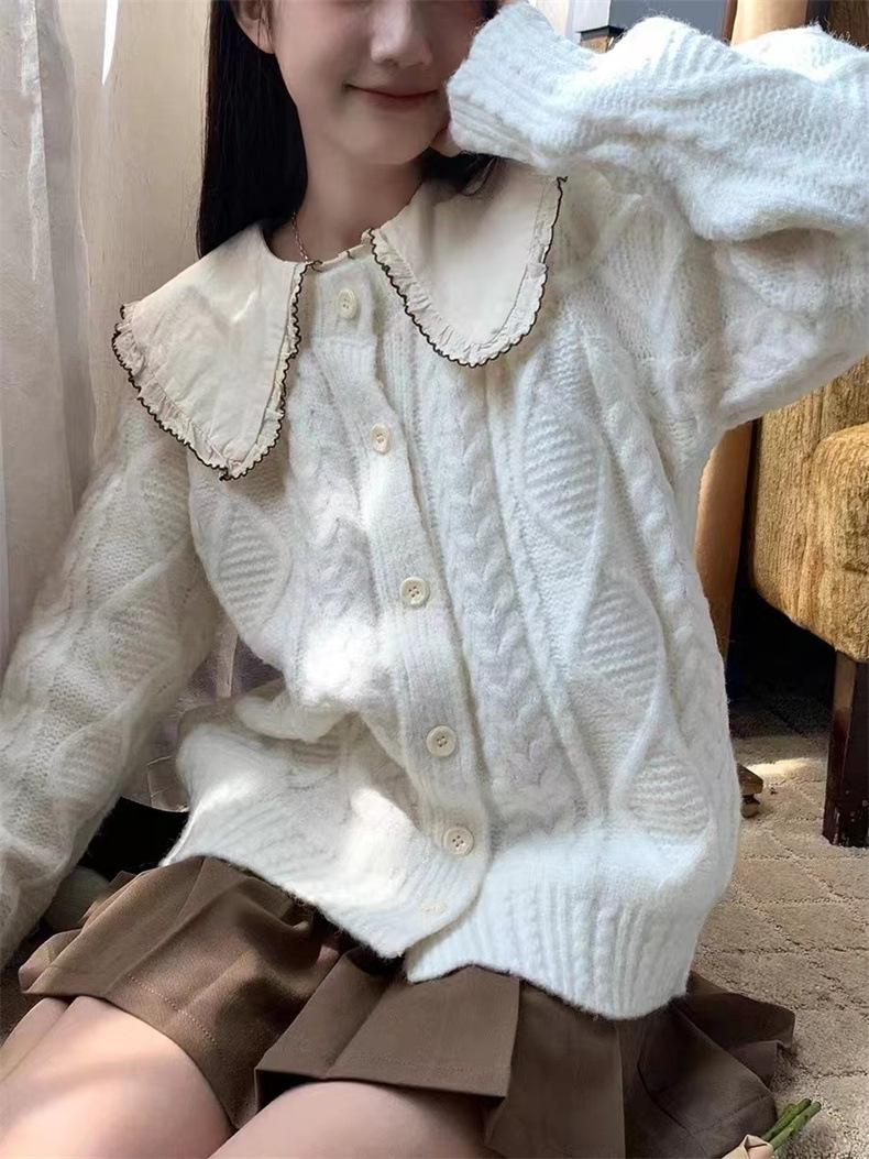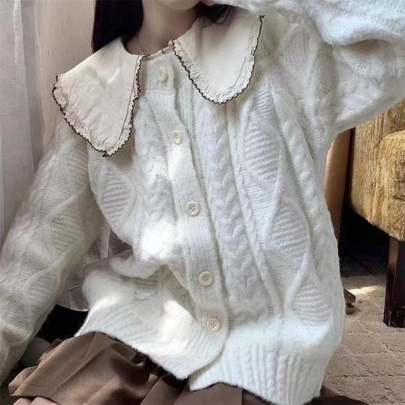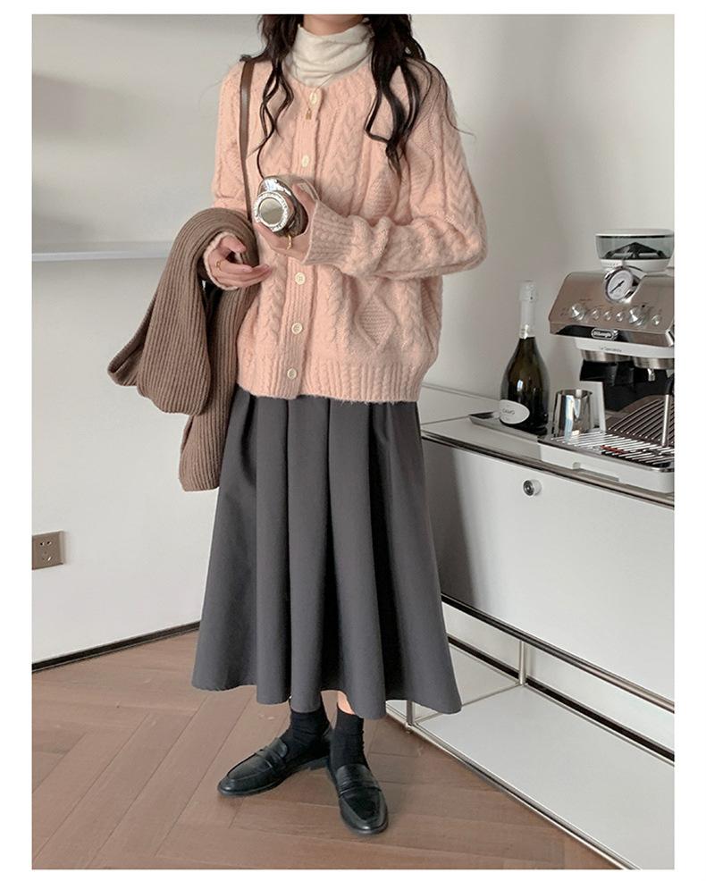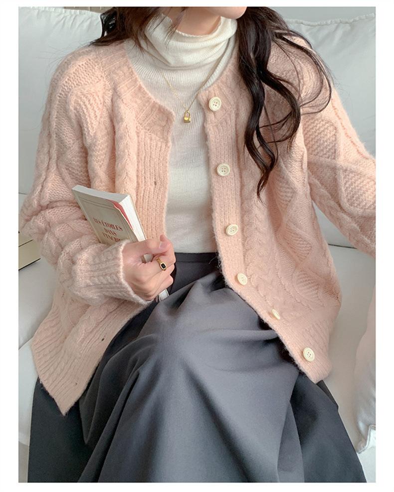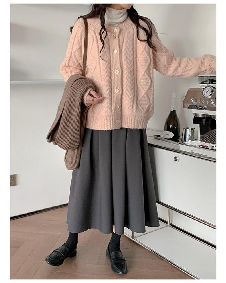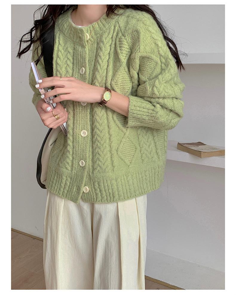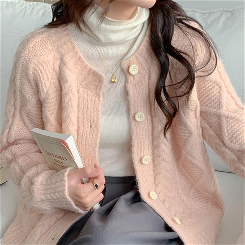Cárdigan de punto con cuello redondo y manga larga para mujer, estilo coreano, holgado y combinable, para otoño e invierno