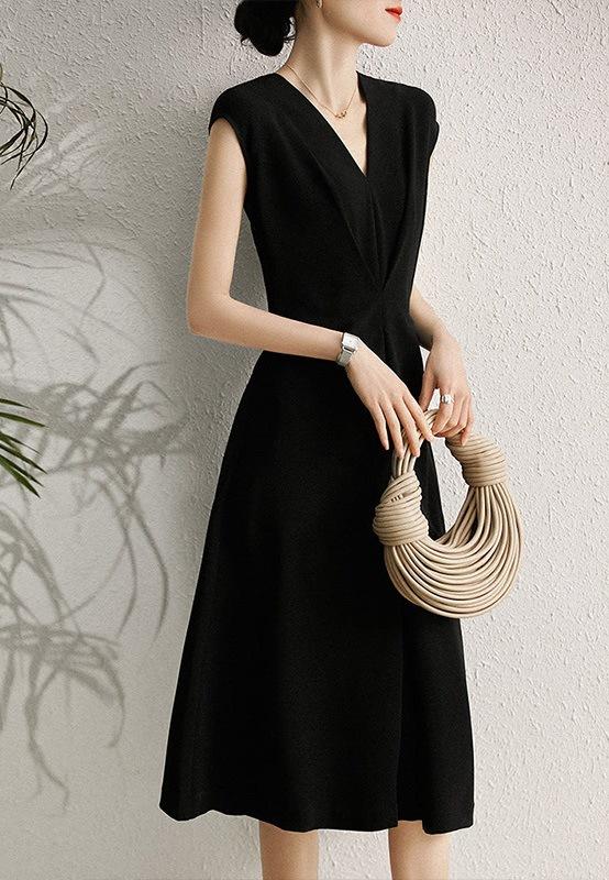 Vestido negro pequeño estilo Hepburn, vestido de moda para mujer, nuevo vestido de verano, adelgazante, elegante, ligero, estilo maduro, vestido sin mangas de alta gama.