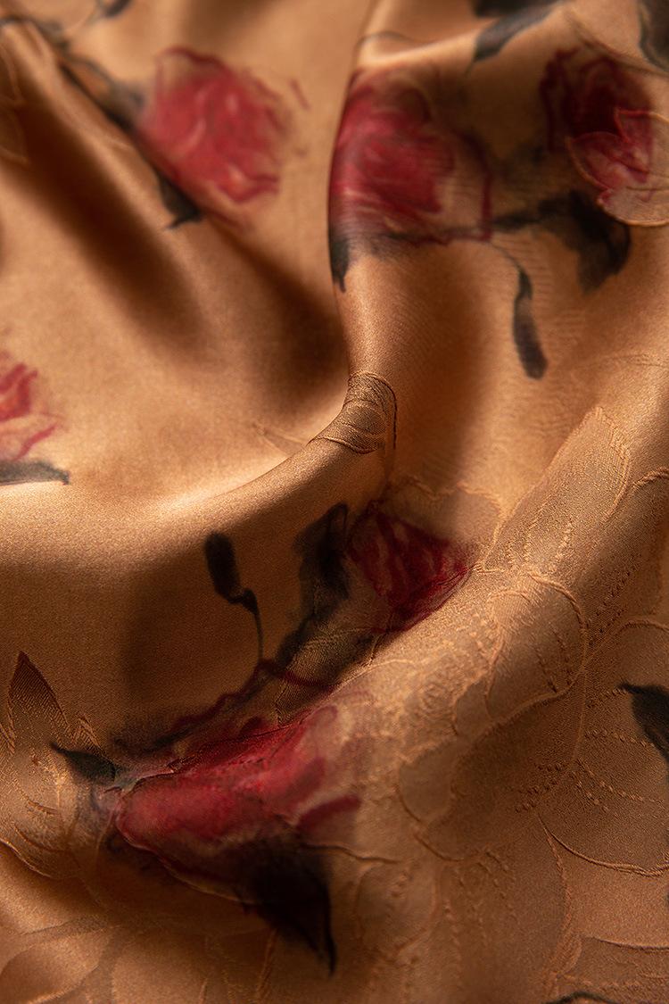 100% seda pura Tela de seda morera Xiangyunsha, extremadamente cómoda al tacto, brillo elegante. La parte superior del cuerpo es agradable para la piel y cómoda, y la seda se conoce como "la segunda capa de la piel humana". La combinación de colores está llena de feminidad romántica, combinación de colores simple y elegante. El desperdicio en la fabricación de una prenda de seda es más del doble que el de una prenda común. Solo para hacer que las capas sean más refrescantes, este color es muy adecuado para el tono de piel.