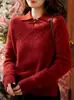 "Suéter con hebilla de estilo nacional" nuevo temperamento retro chino perezoso Año Nuevo rojo punto trenzado suave top de suéter