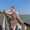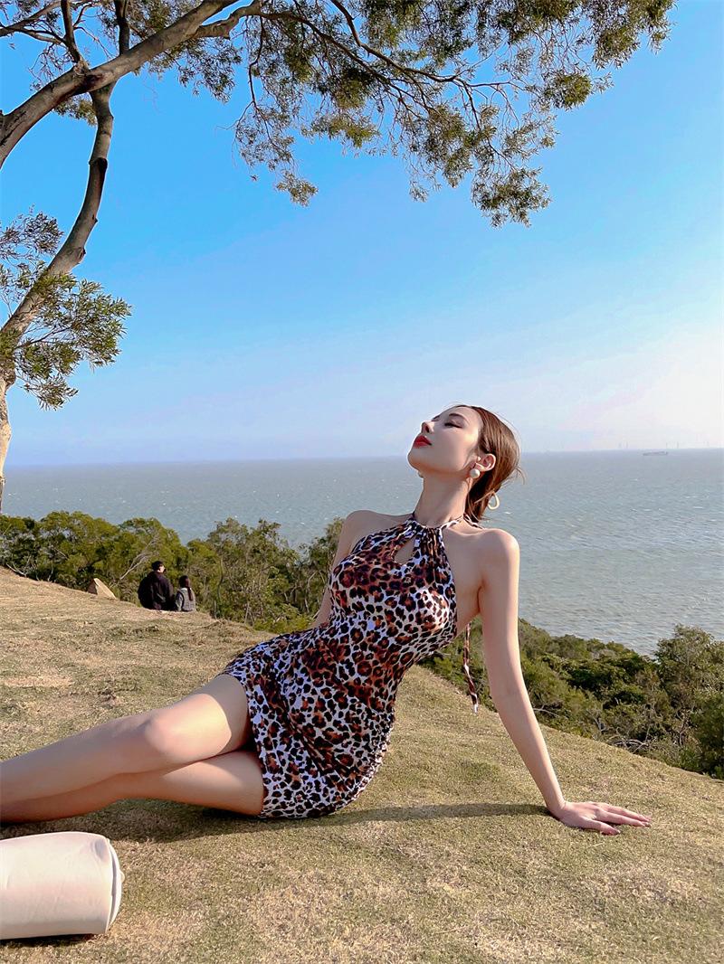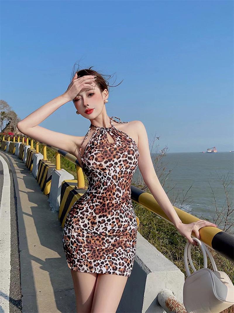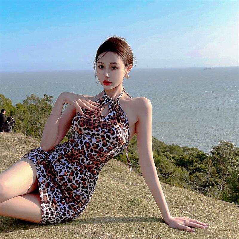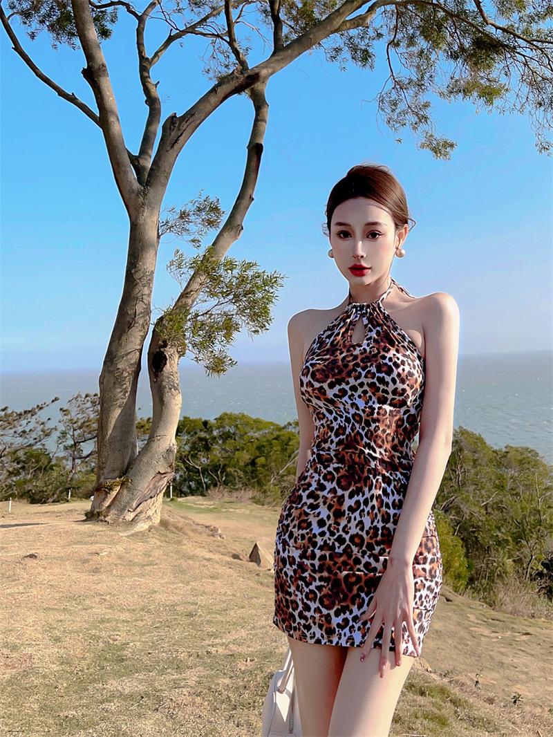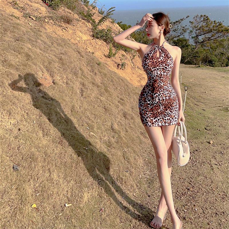 Vestido Corto Ajustado sin Espalda con Estampado de Leopardo al por Mayor para Comercio Exterior Transfronterizo Europeo y Americano 2025 para Mujer