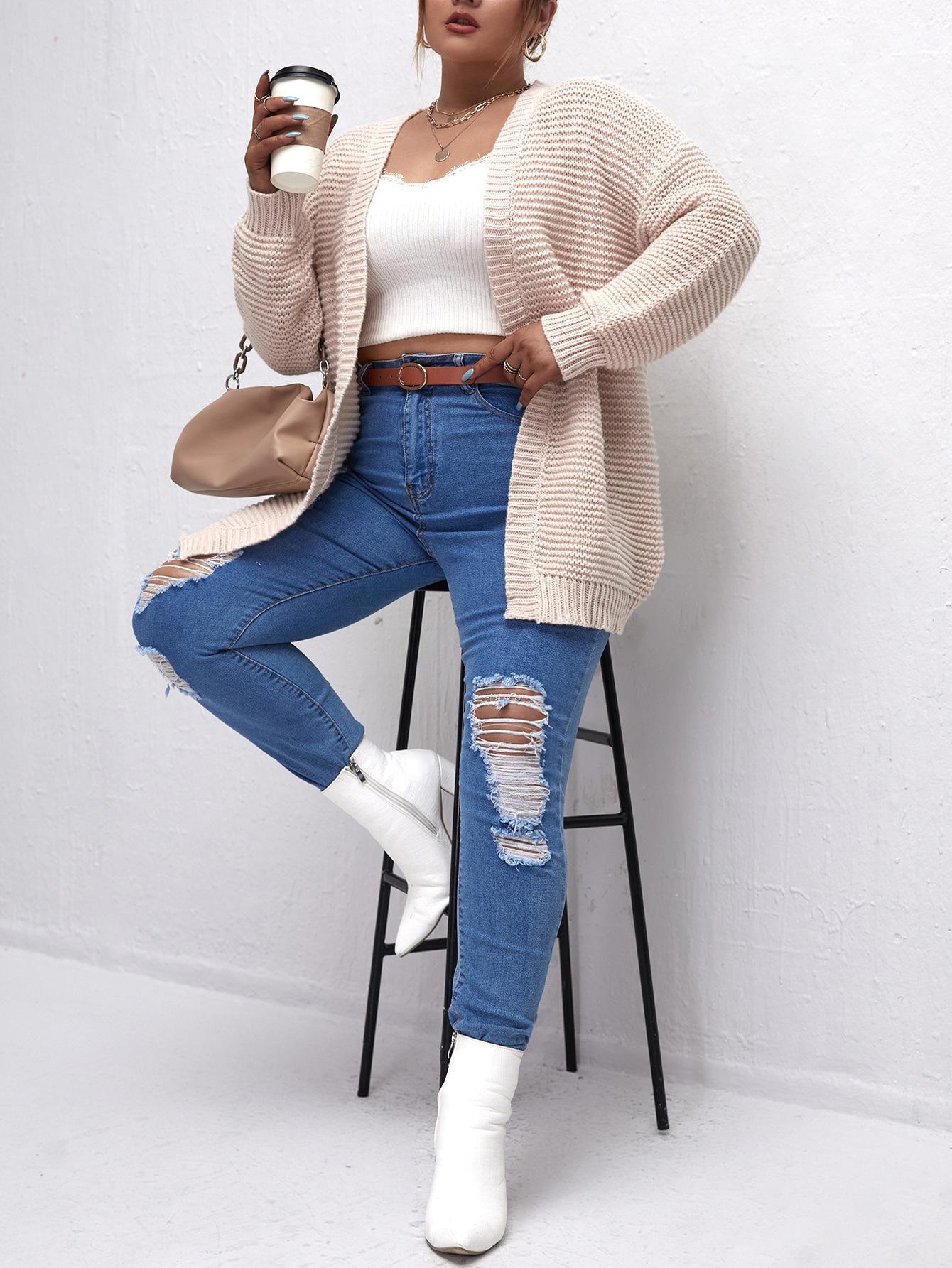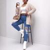 Suéter Largo para Otoño e Invierno, Abrigo Cárdigan Tejido de Amazon, Estilo Elegante Personalizado Rayado para Mujer de Comercio Exterior Transfronterizo