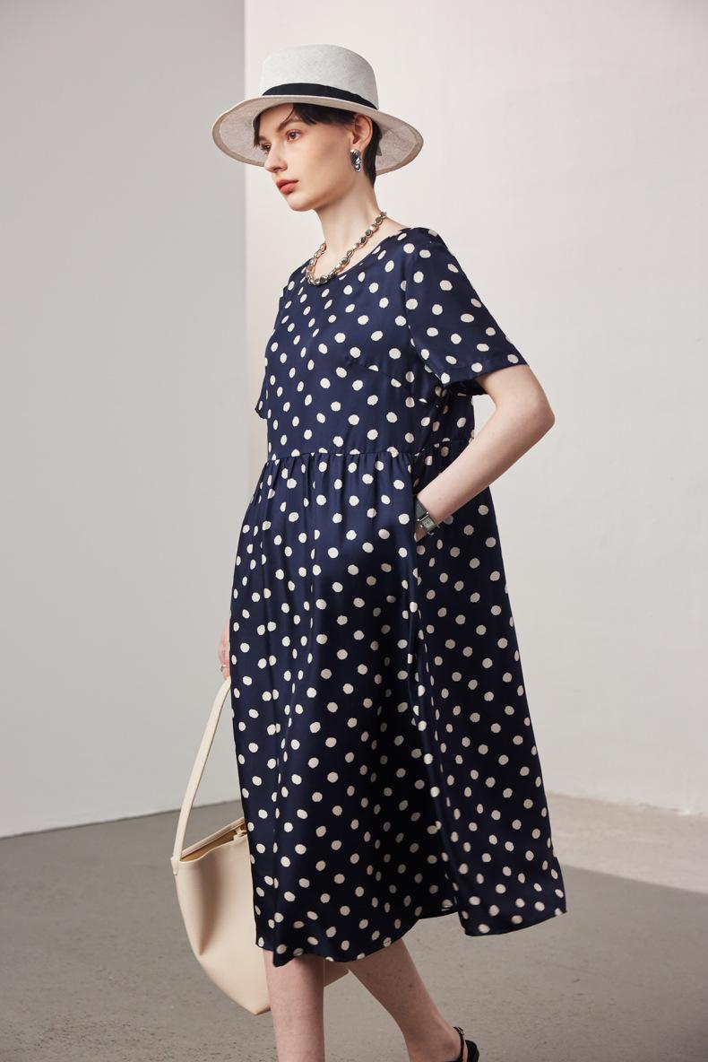 Vestido de seda de manga corta para mujer, primavera y verano 2025, nueva camisa de muñeca, suelta, talla grande, sarga de seda, falda de seda morera 100%