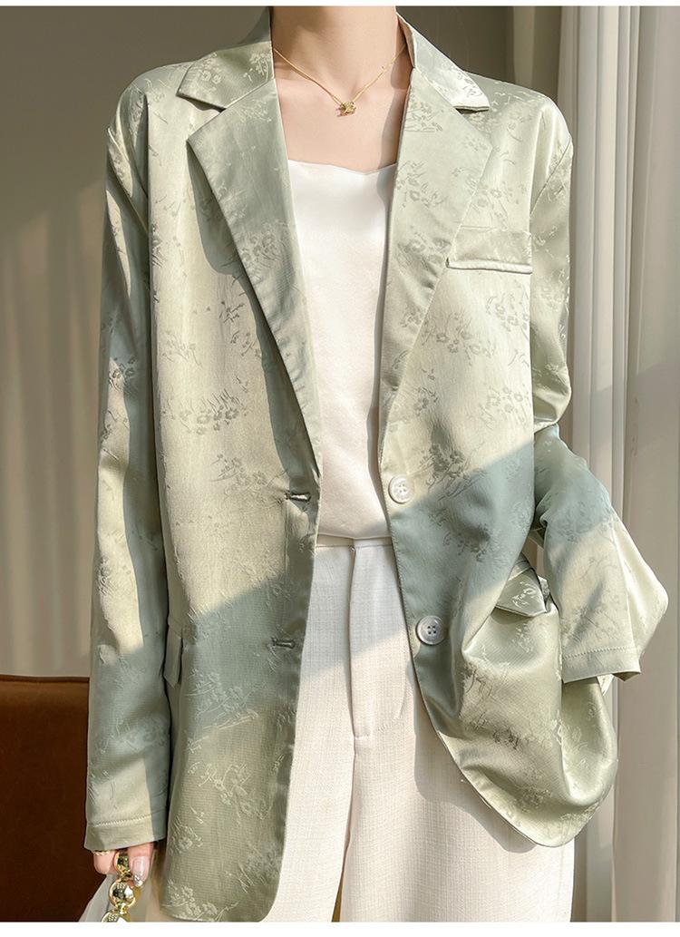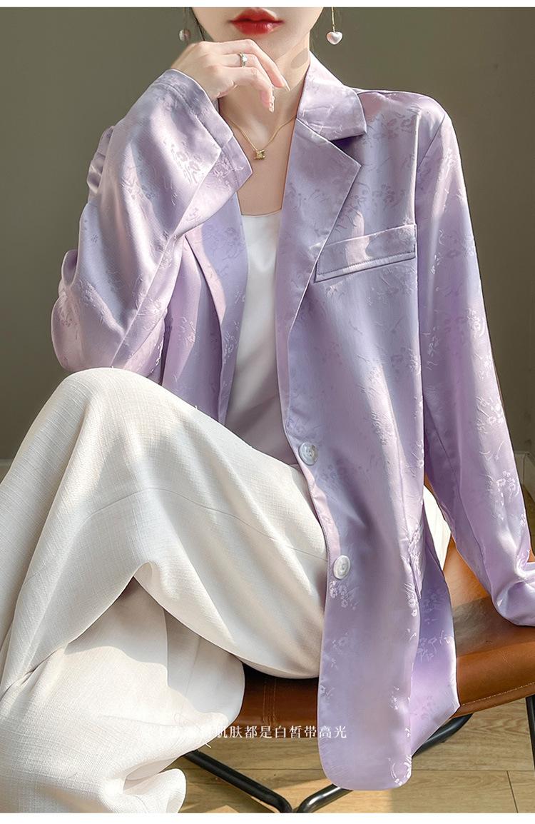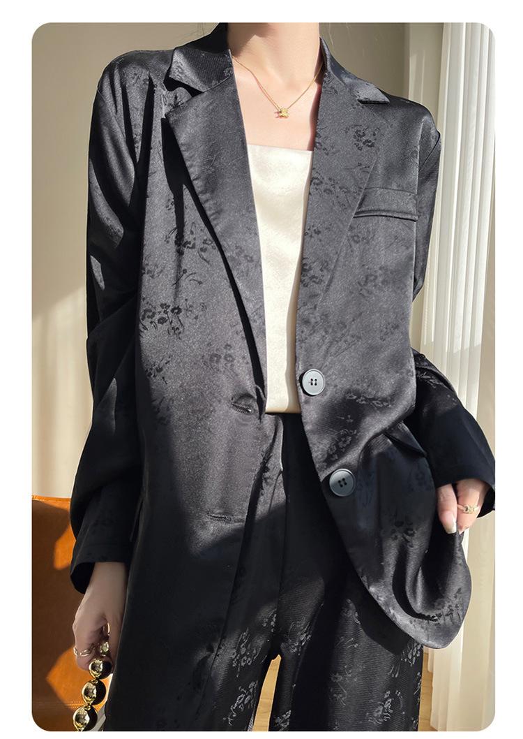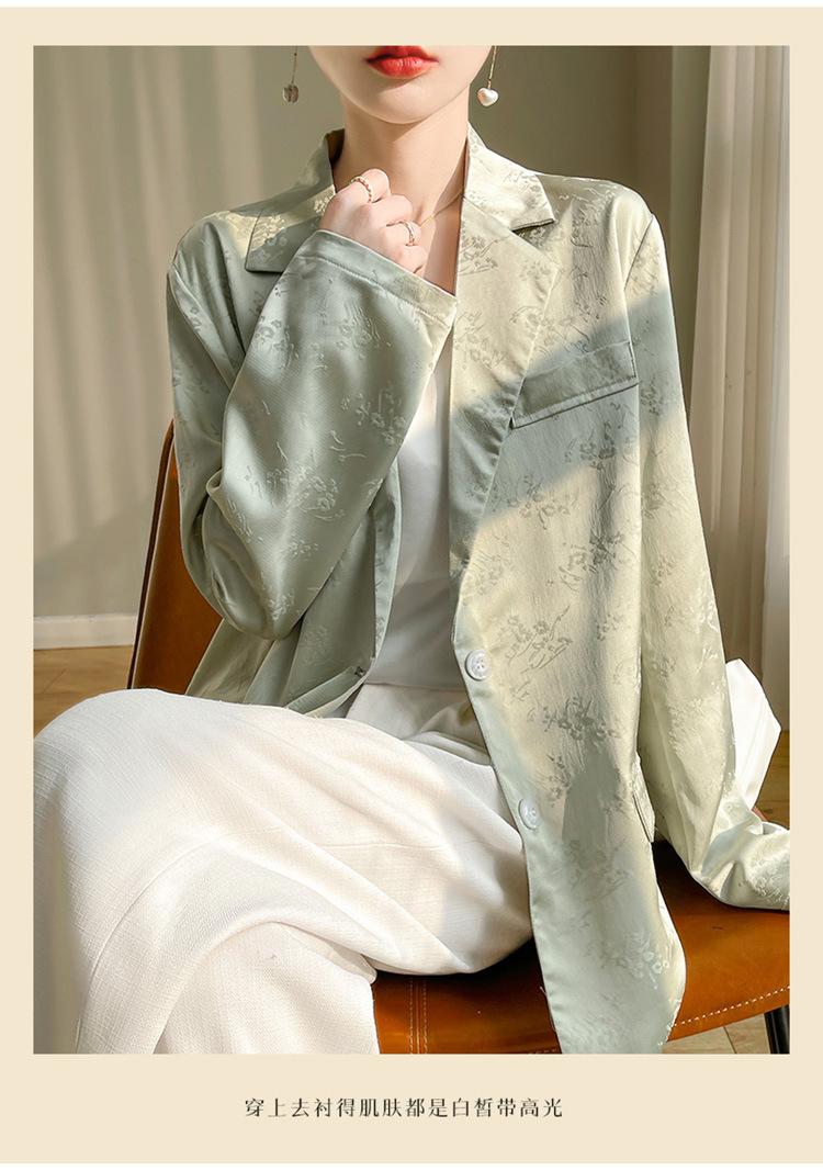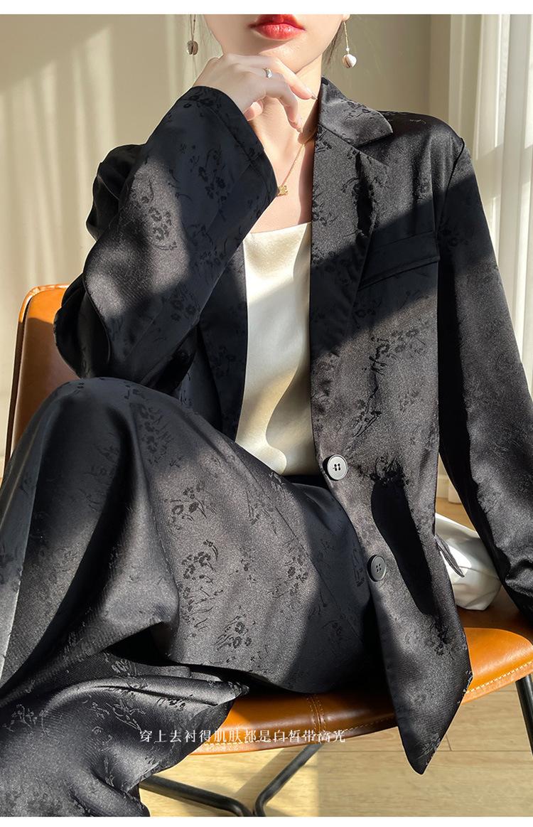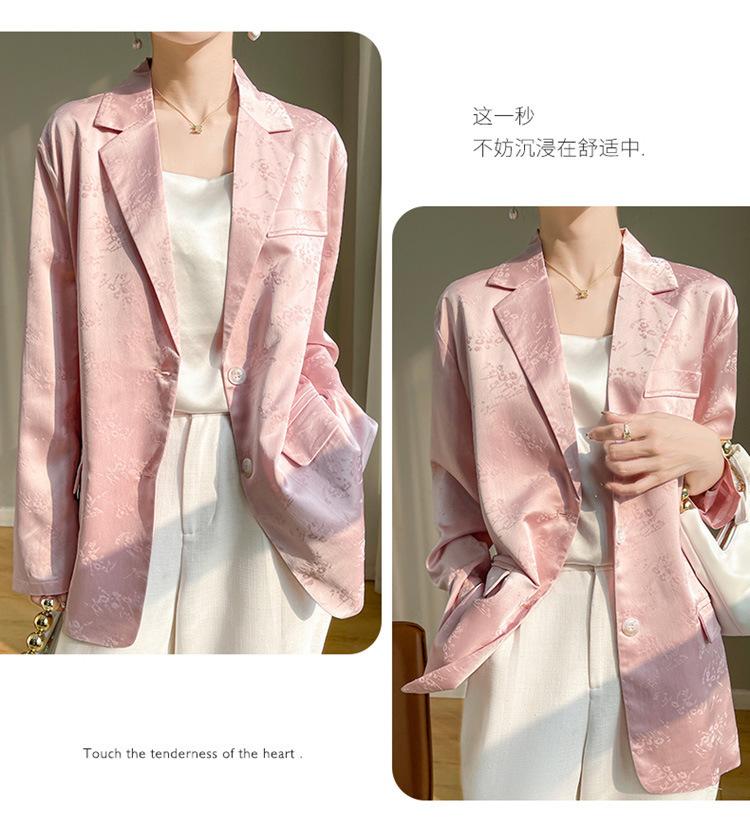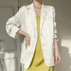 Chaqueta de traje de jacquard de dos botones con cuello de traje de longitud media para mujer de primavera y otoño de 2024