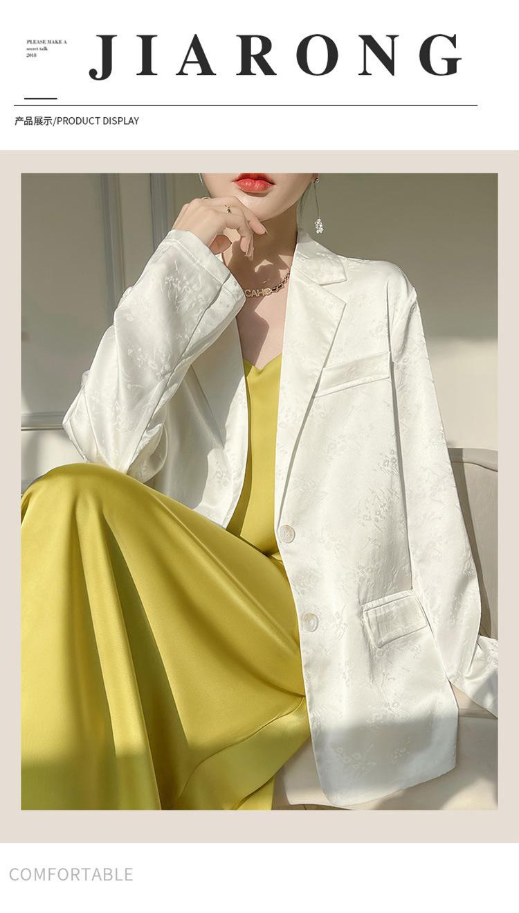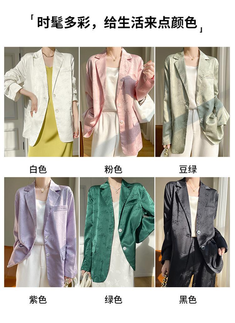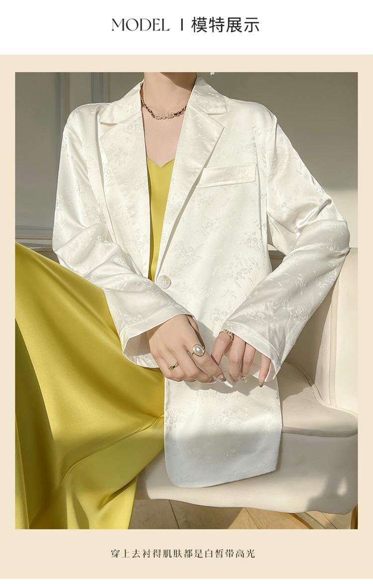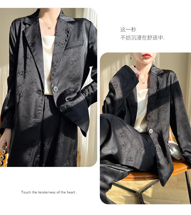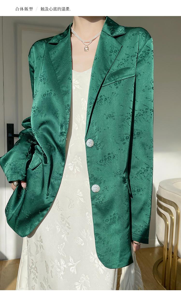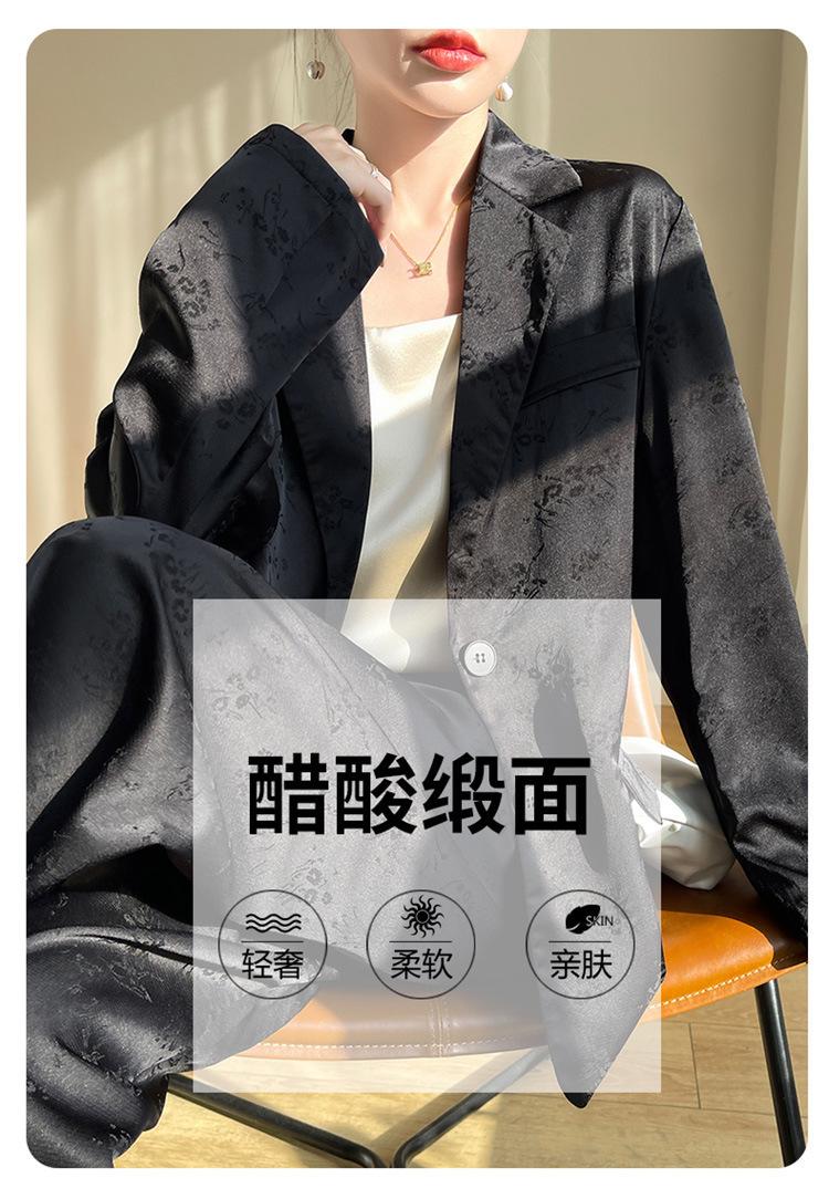 Chaqueta de traje de jacquard de dos botones con cuello de traje de longitud media para mujer de primavera y otoño de 2024