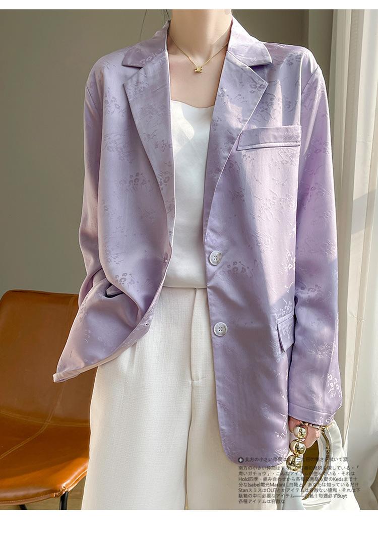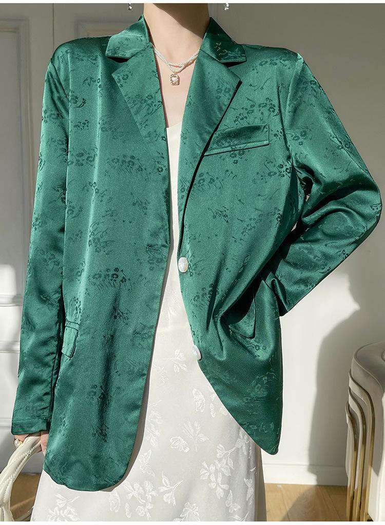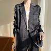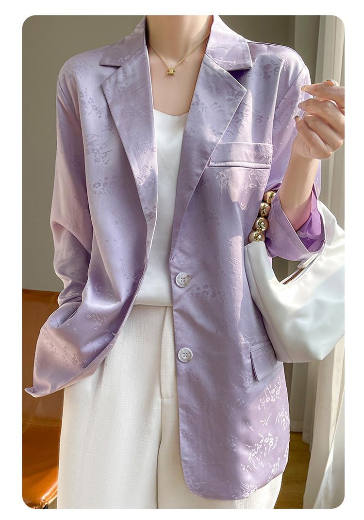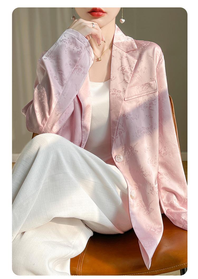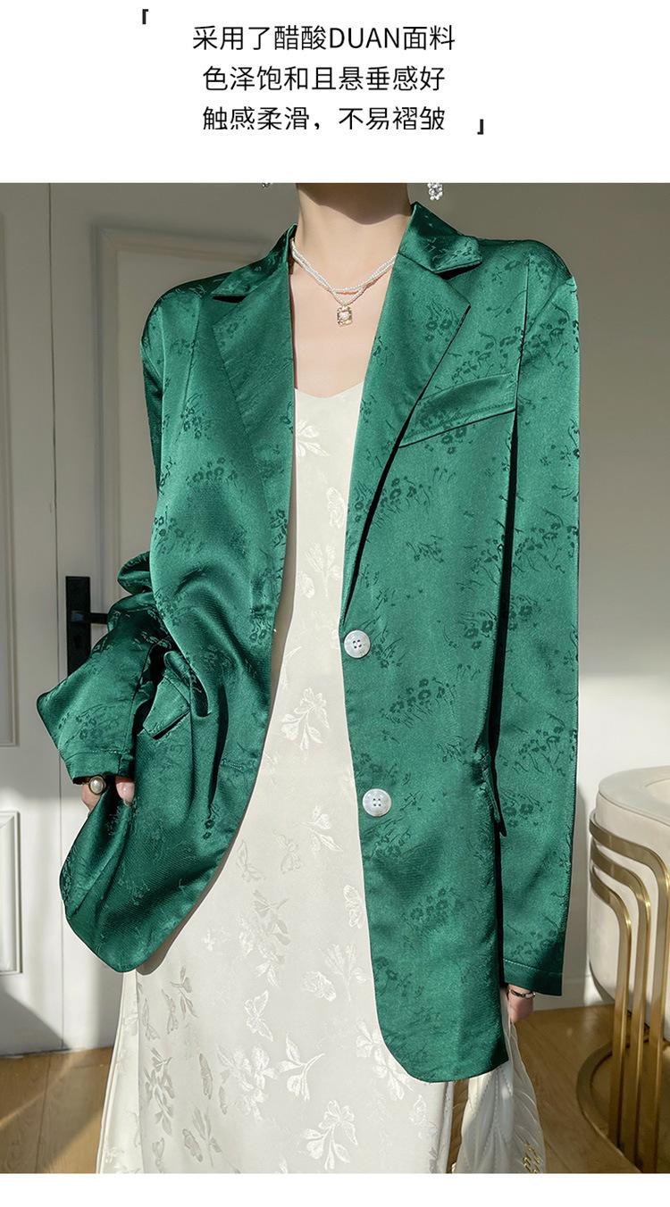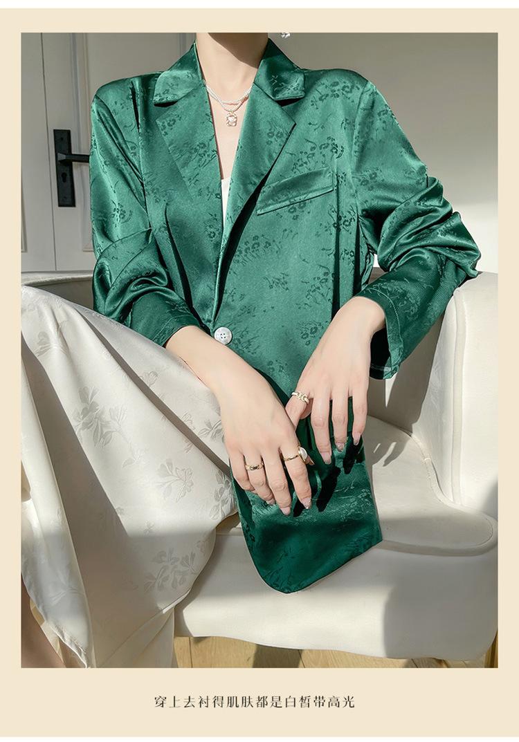 Chaqueta de traje de jacquard de dos botones con cuello de traje de longitud media para mujer de primavera y otoño de 2024