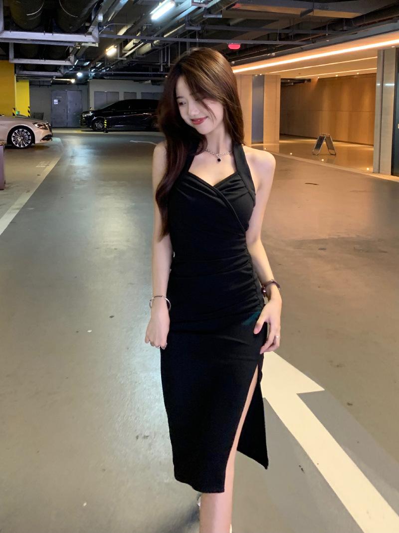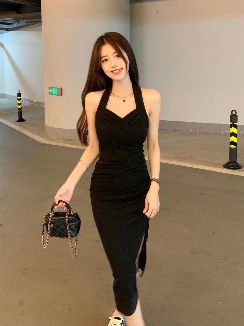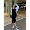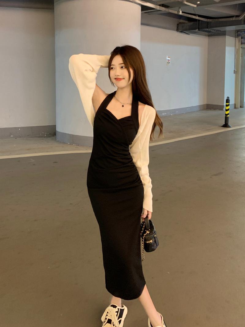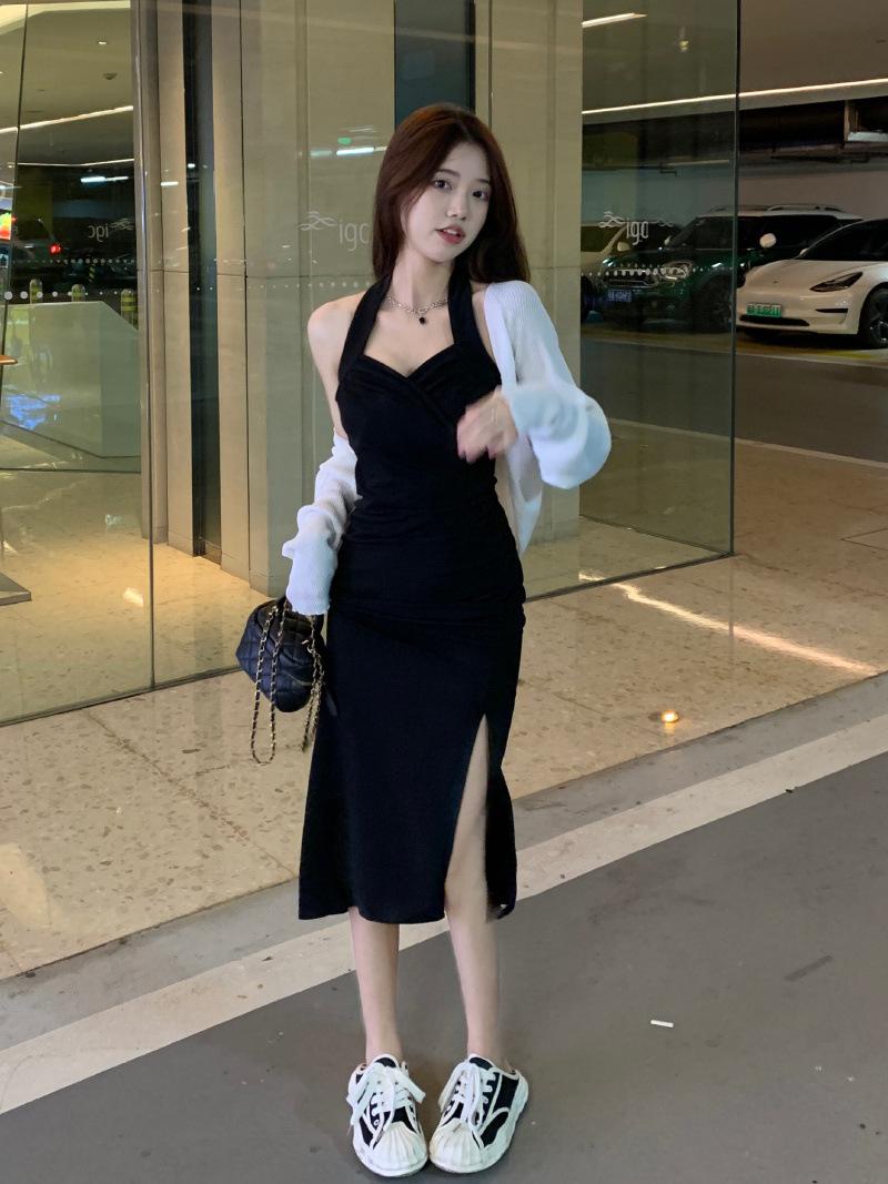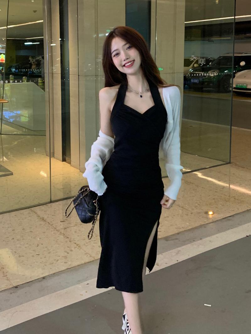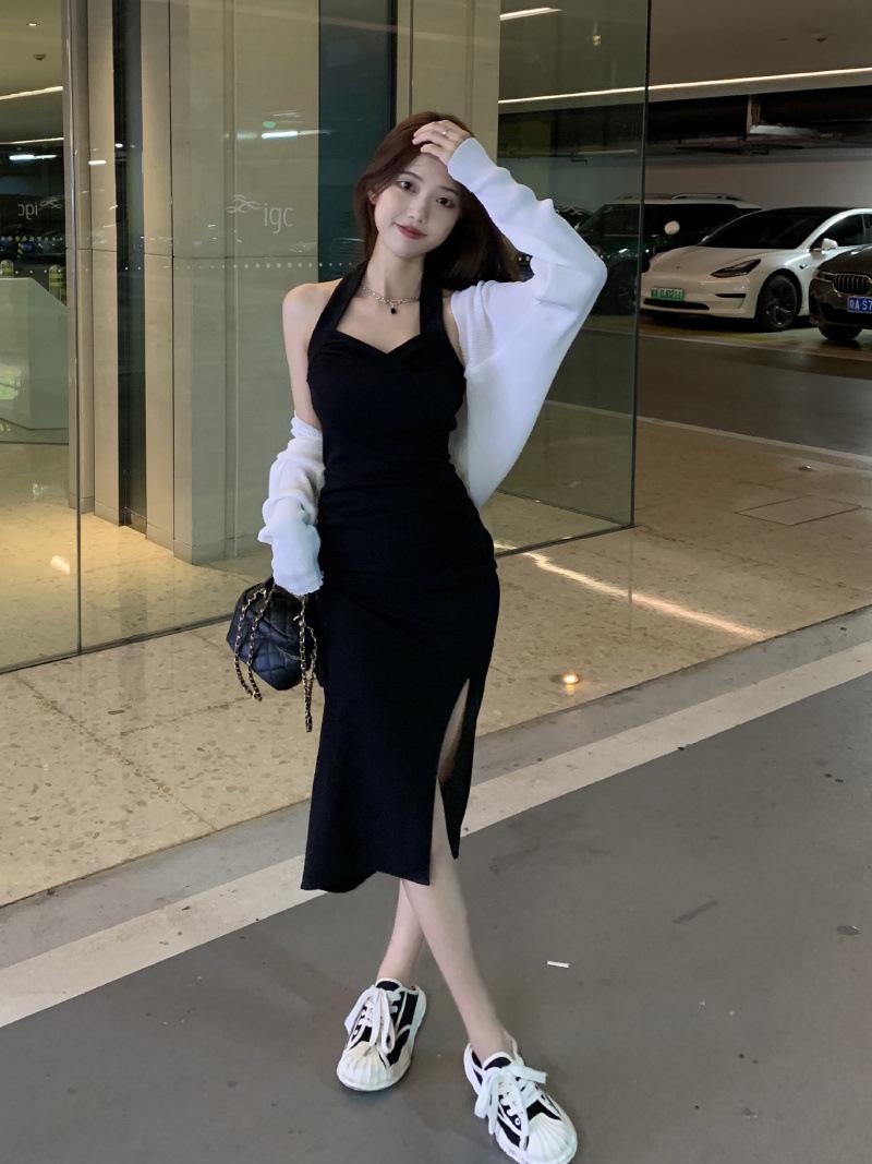 Cardigan black hanging neck skirt (two-piece set is more beautiful), Cardigan, Black Neck Skirt