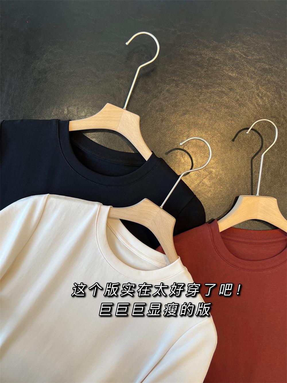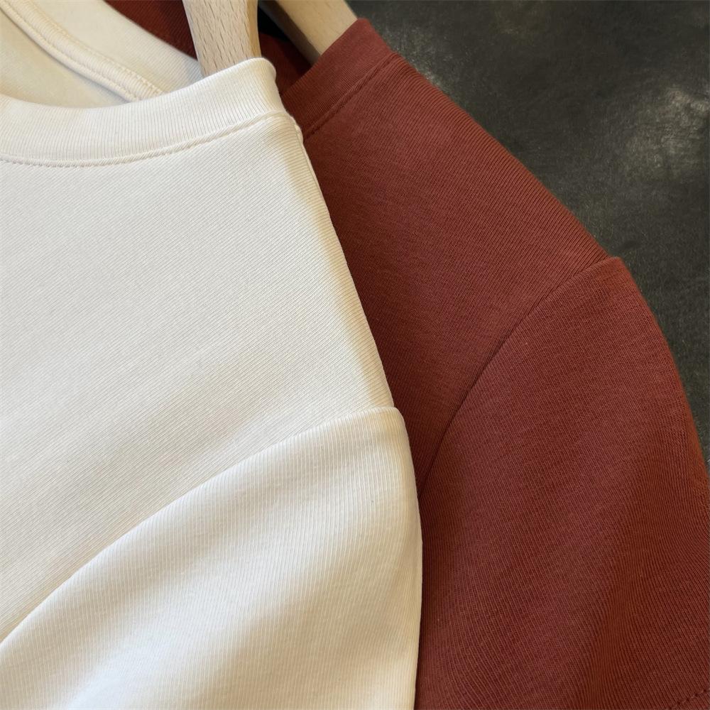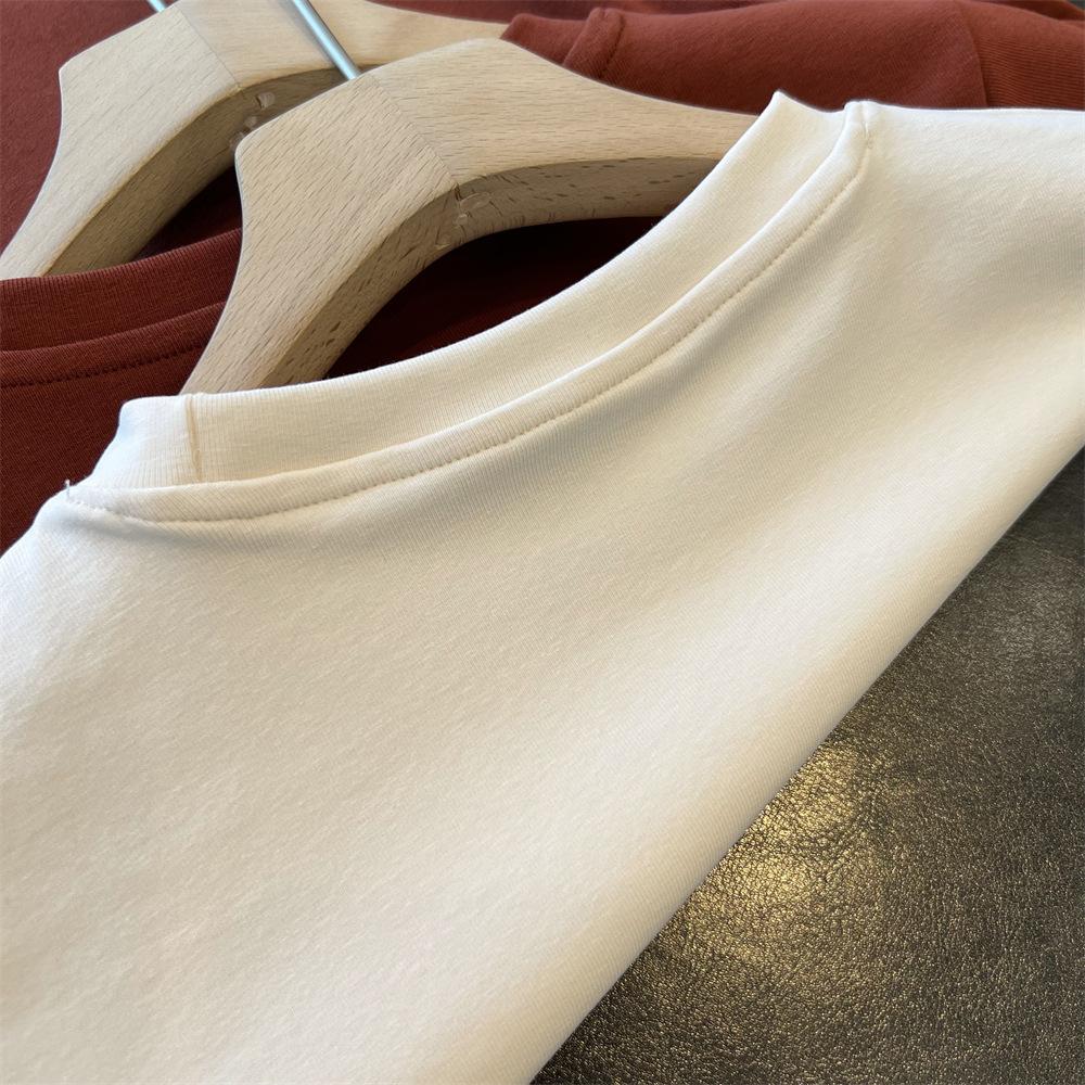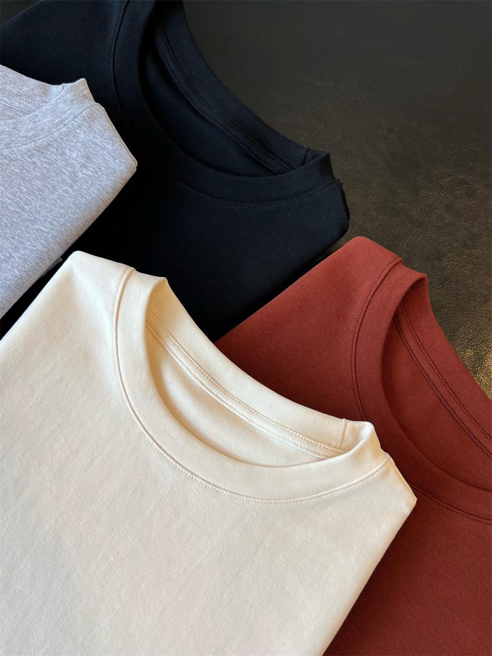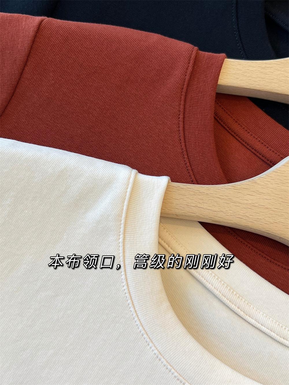 O pescoço redondo é limpo e arrumado, o decote é plano e se ajusta bem, e não é fácil deformar após uso por muito tempo