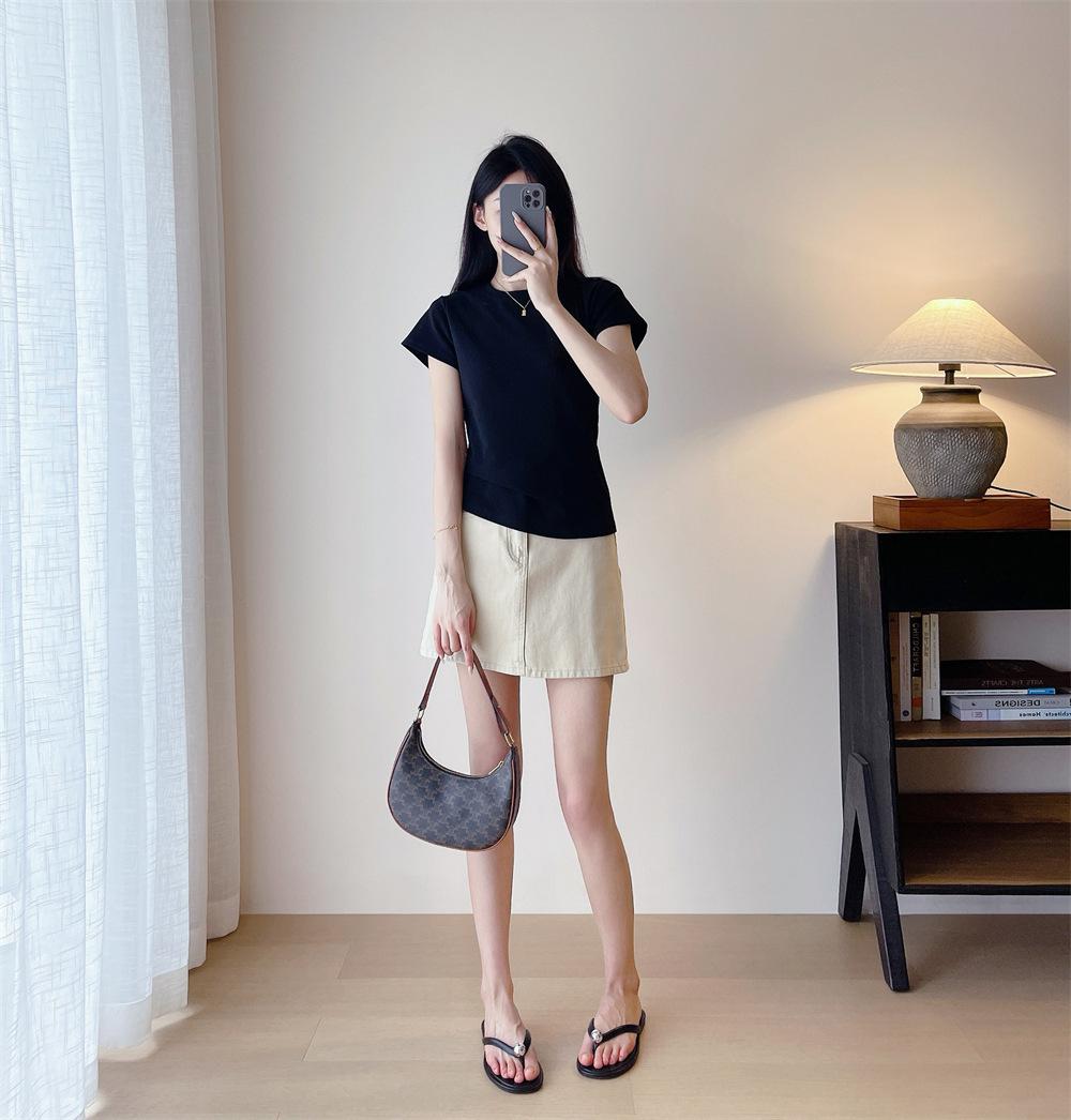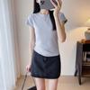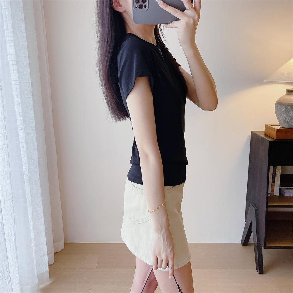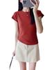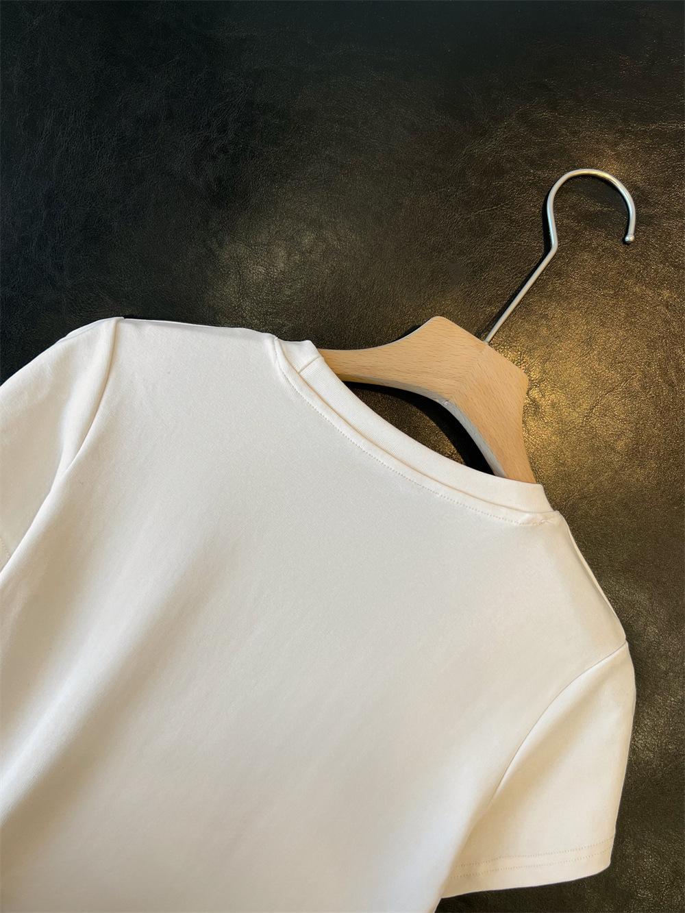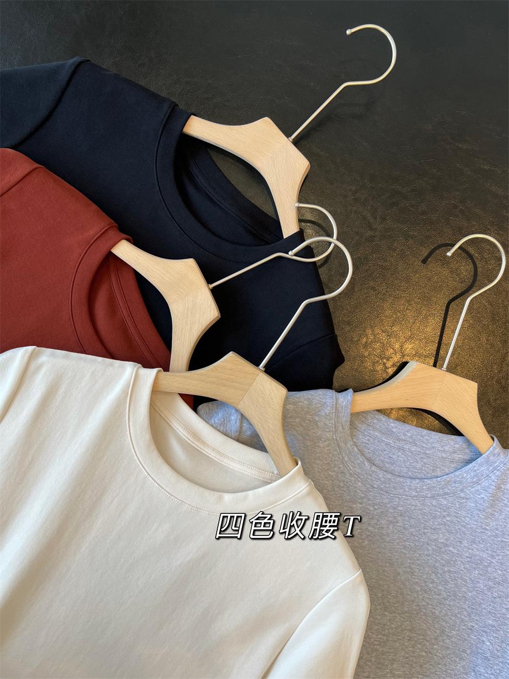 O pescoço redondo é limpo e arrumado, o decote é plano e se ajusta bem, e não é fácil deformar após uso por muito tempo