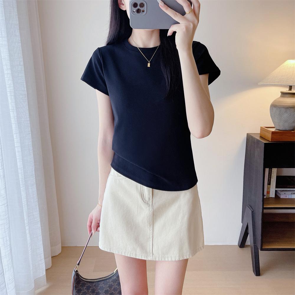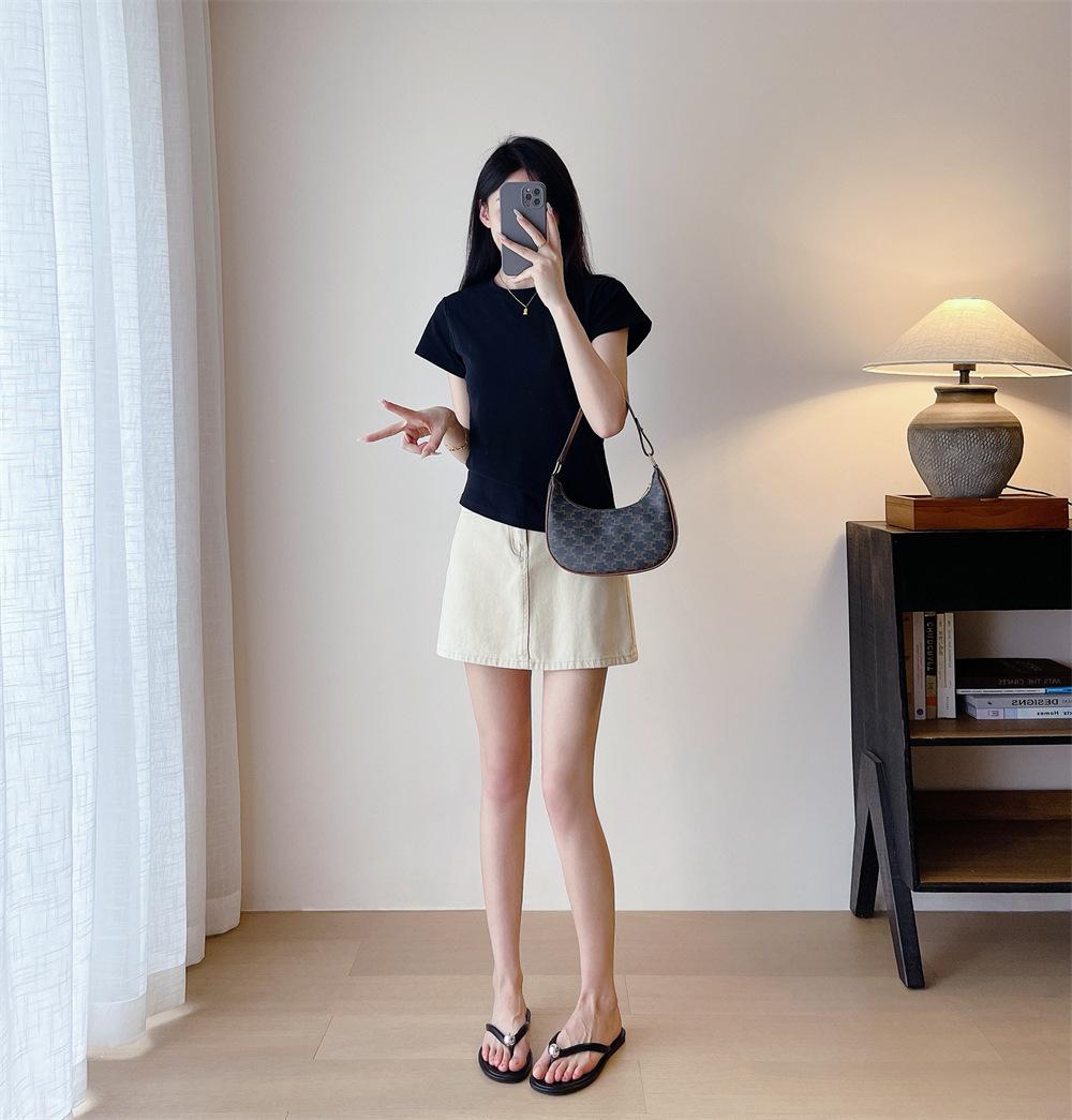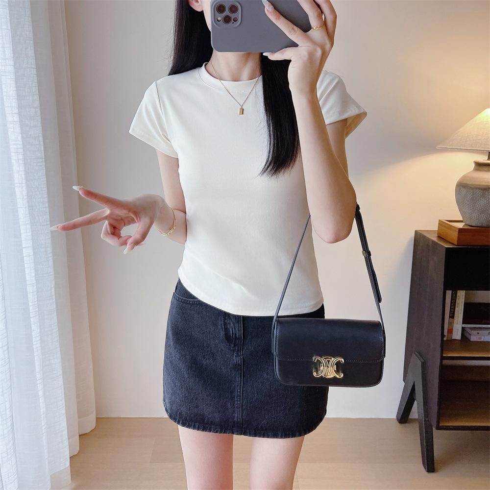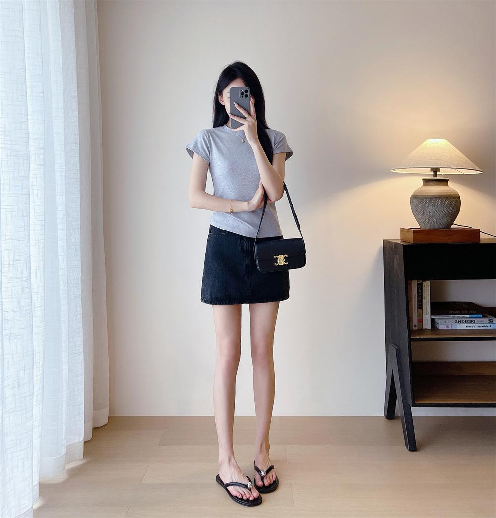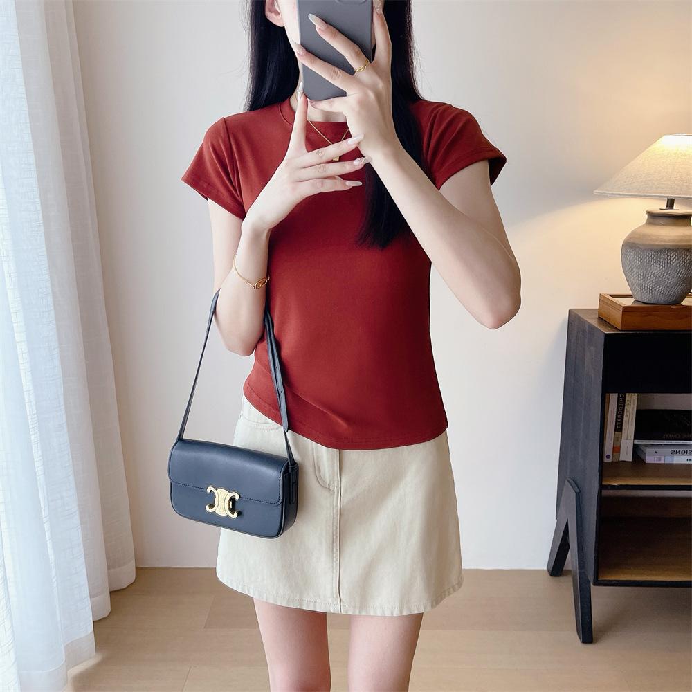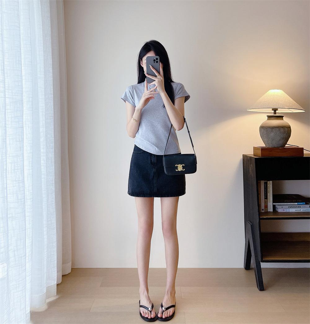 O pescoço redondo é limpo e arrumado, o decote é plano e se ajusta bem, e não é fácil deformar após uso por muito tempo