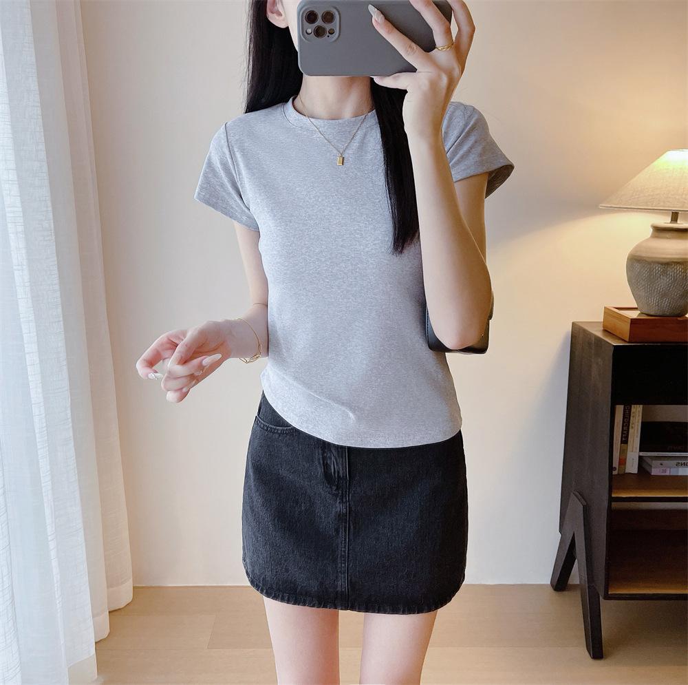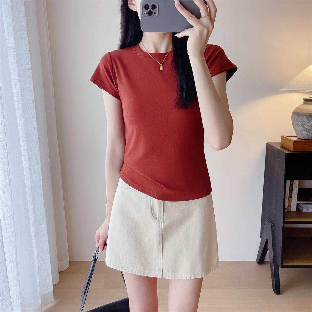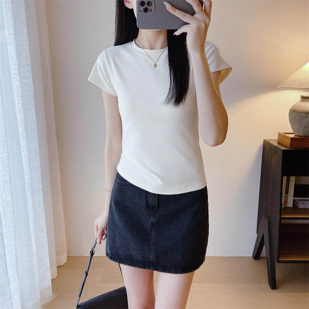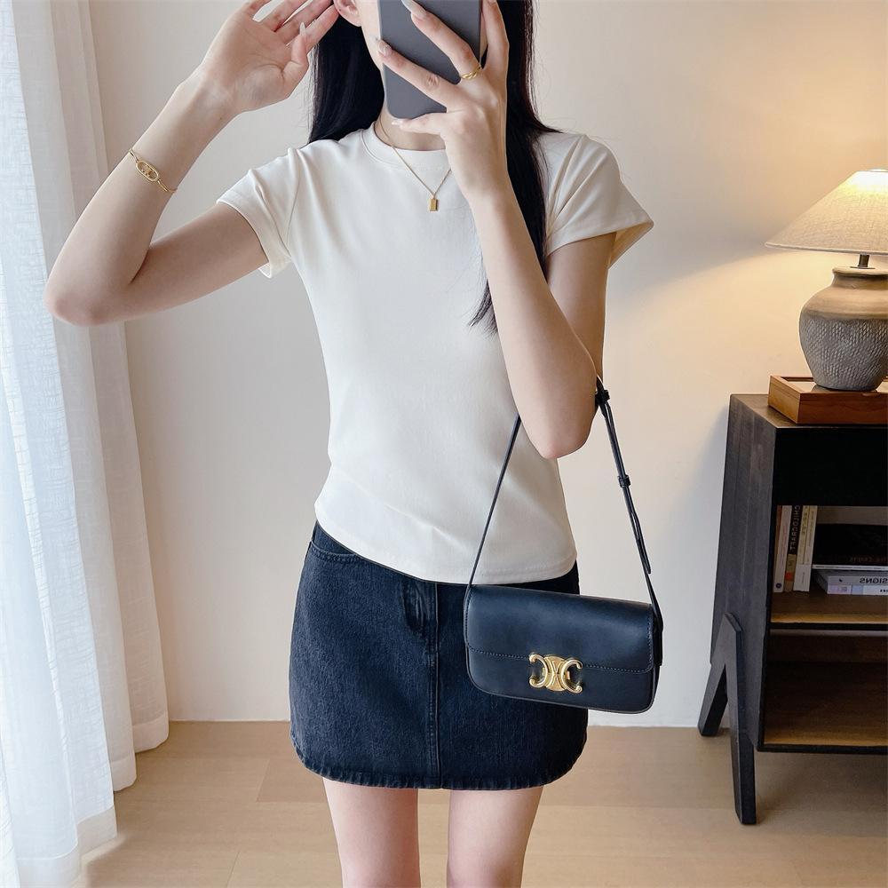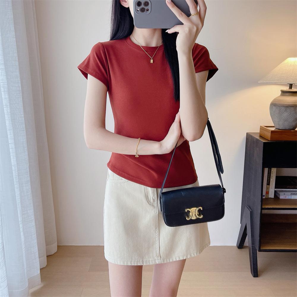 O pescoço redondo é limpo e arrumado, o decote é plano e se ajusta bem, e não é fácil deformar após uso por muito tempo