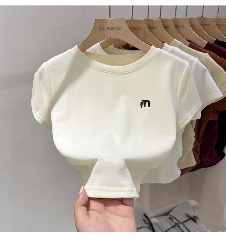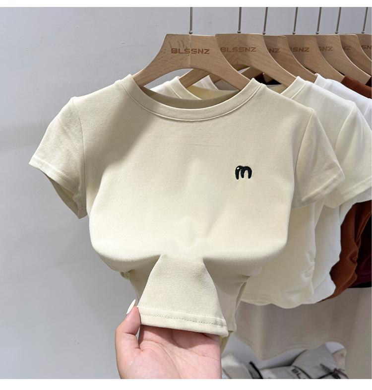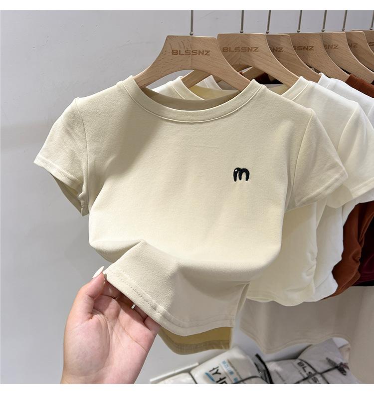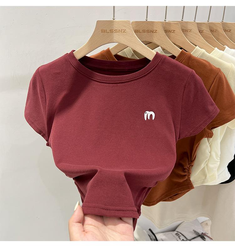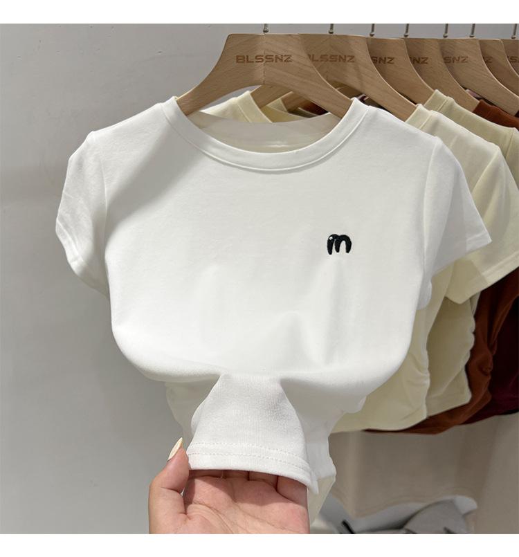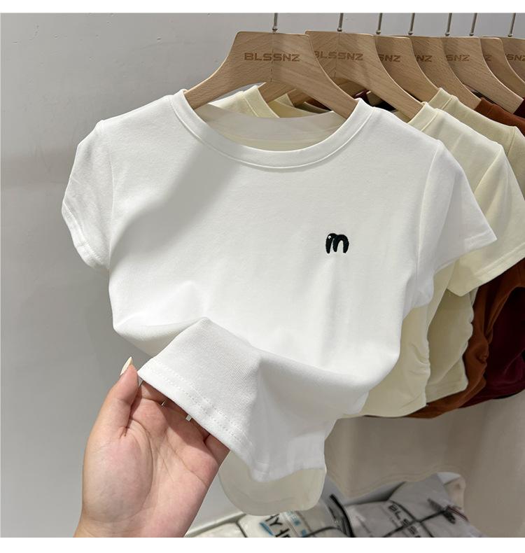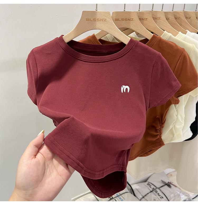 Camiseta americana de manga corta para mujer, novedad de verano 2024, exclusiva, bordada, de cintura corta, estilo Spice Girl.
