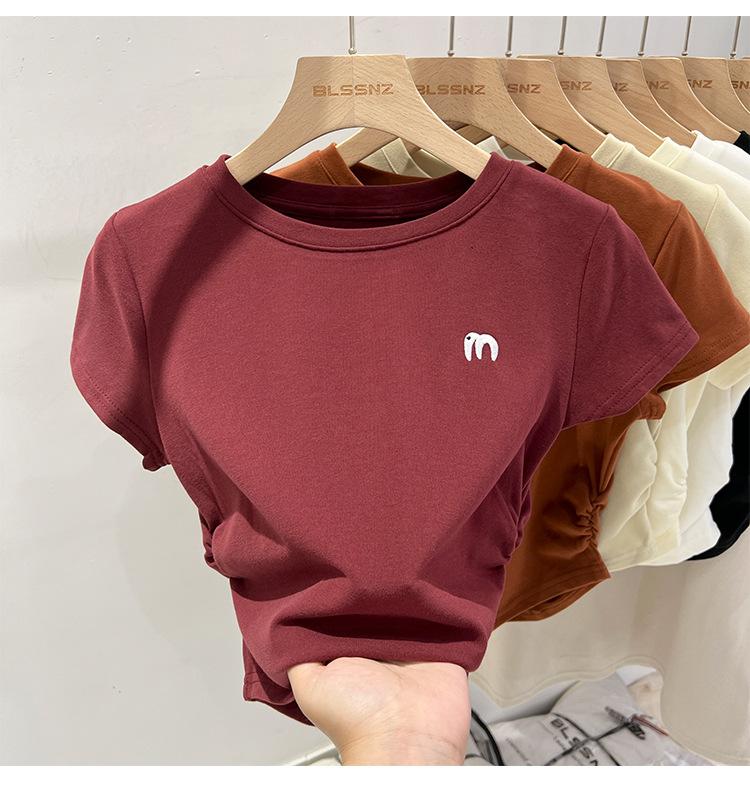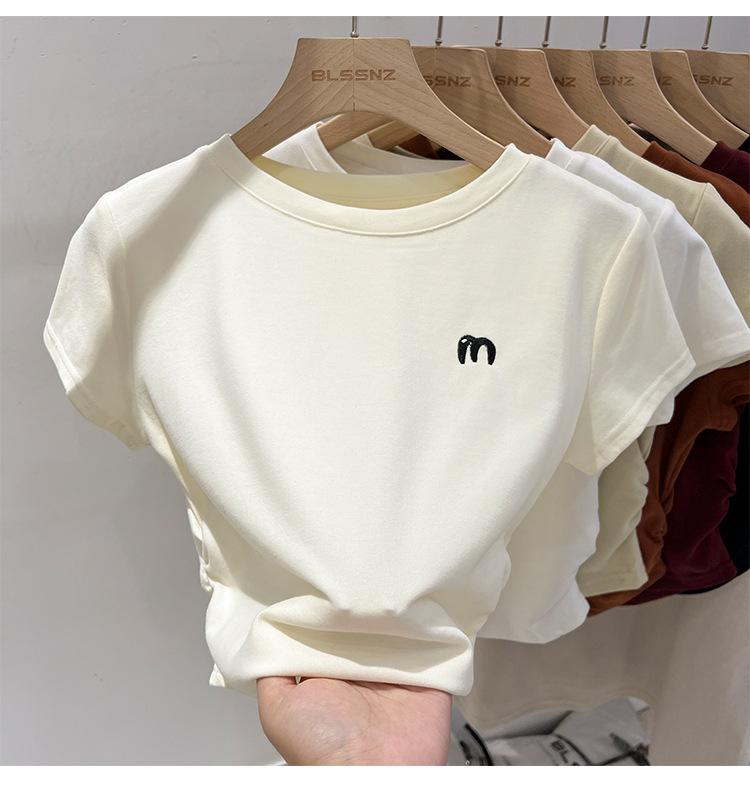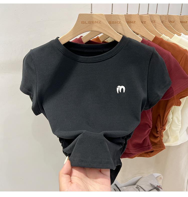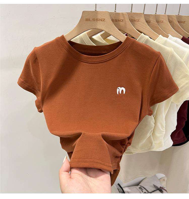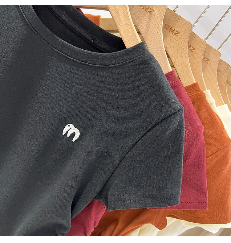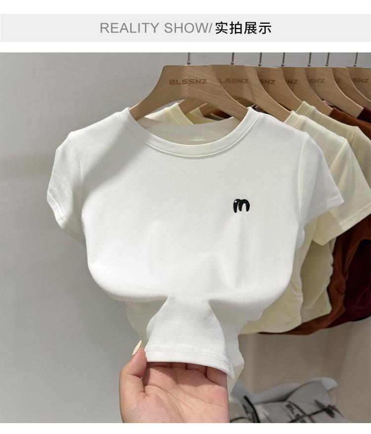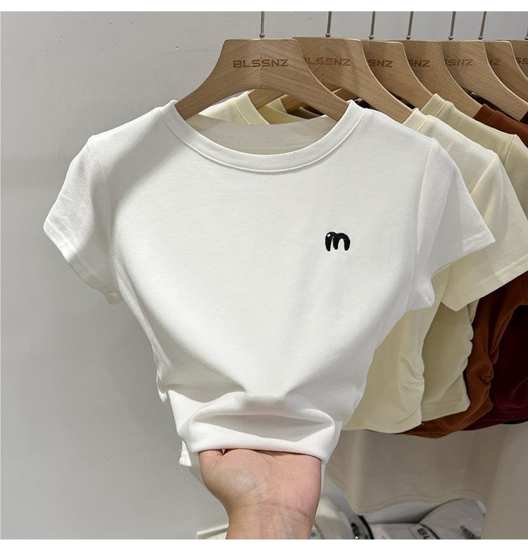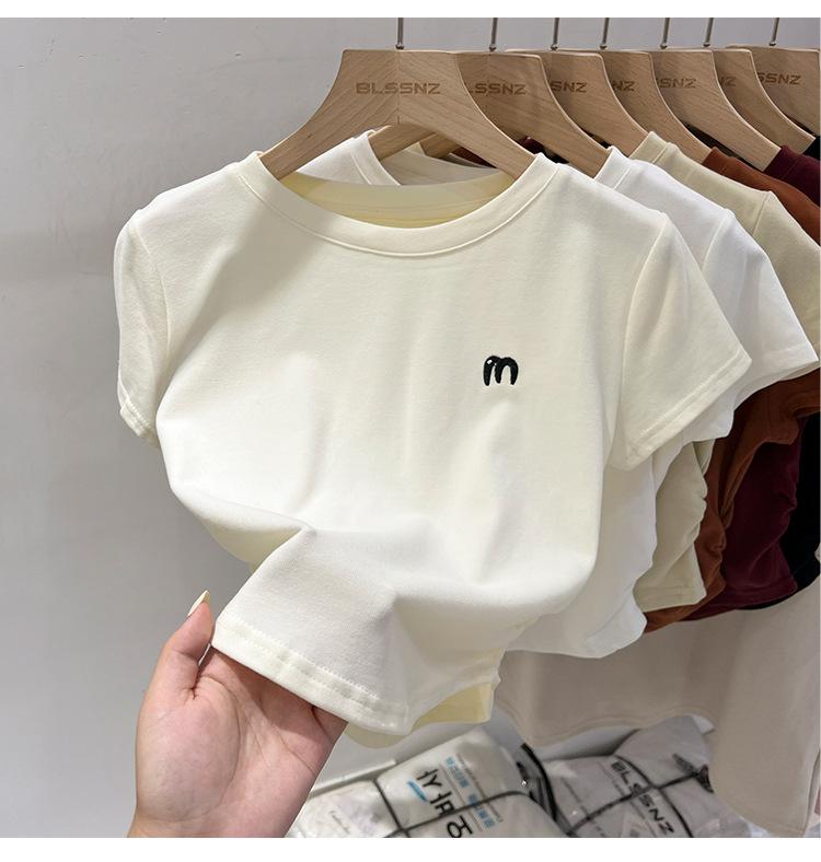 Camiseta americana de manga corta para mujer, novedad de verano 2024, exclusiva, bordada, de cintura corta, estilo Spice Girl.
