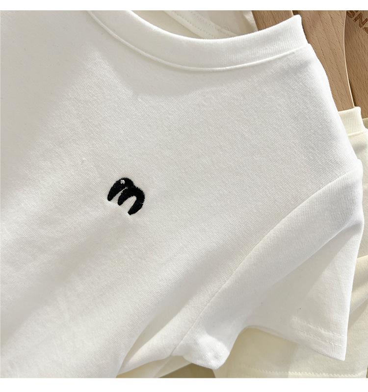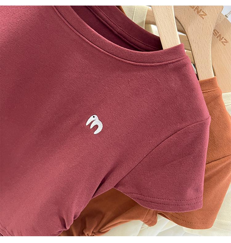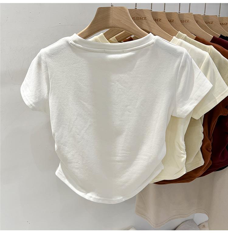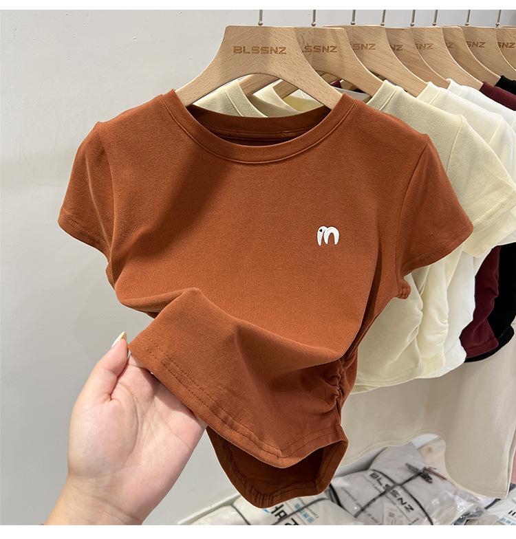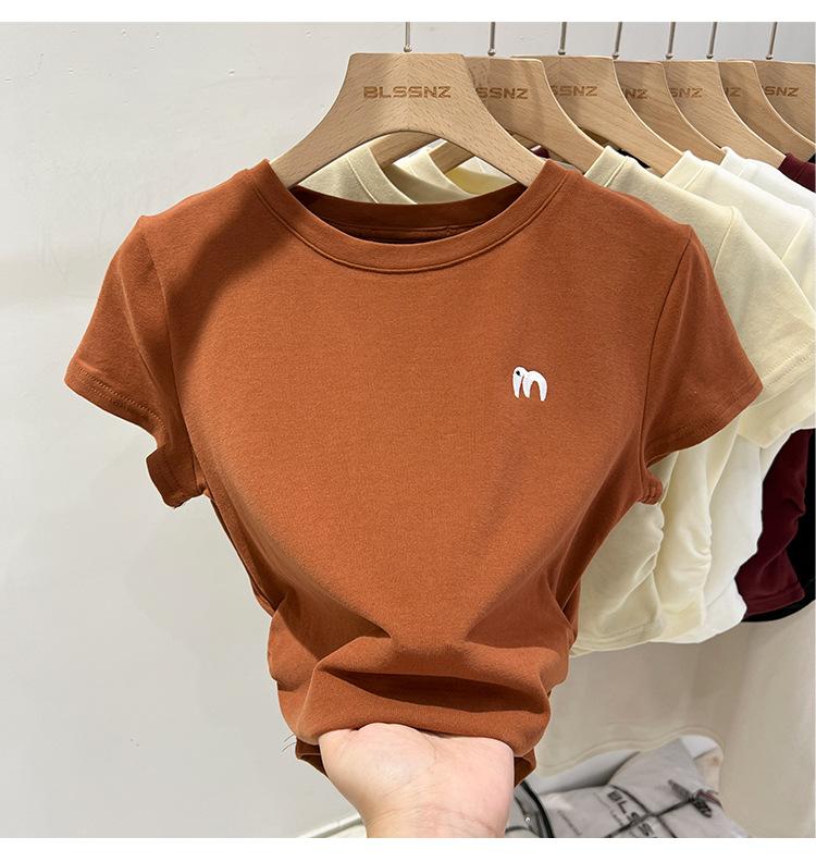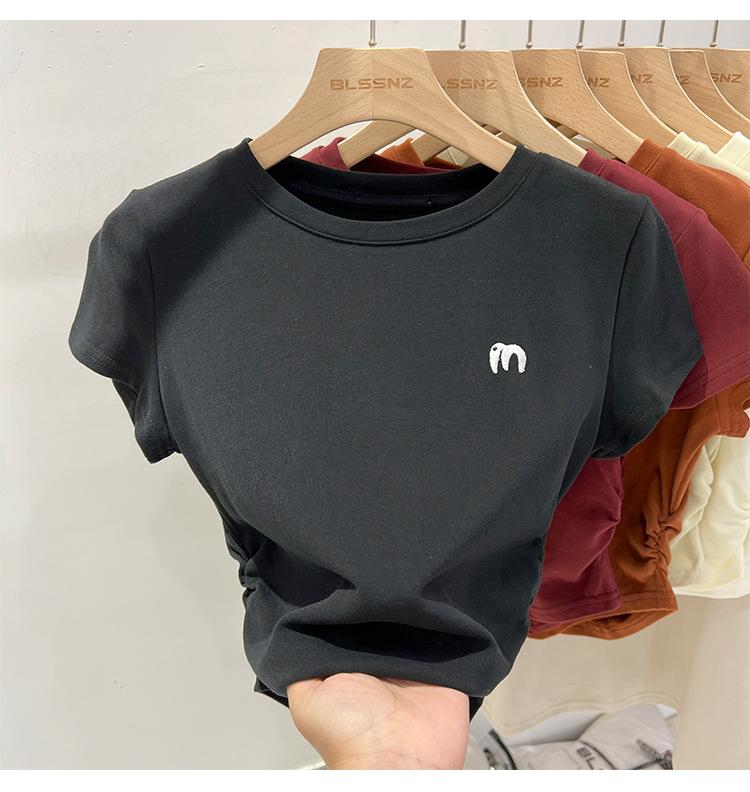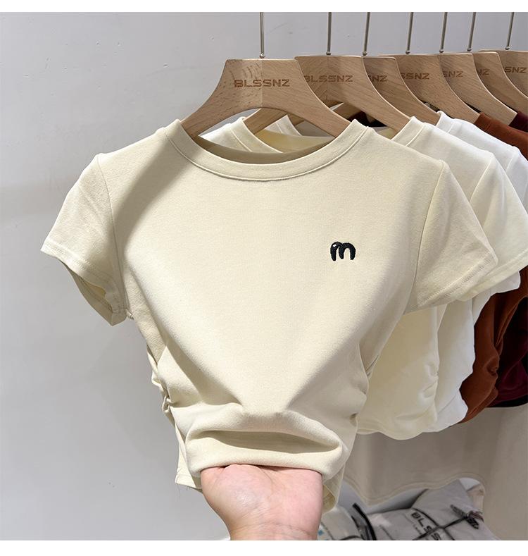 Camiseta americana de manga corta para mujer, novedad de verano 2024, exclusiva, bordada, de cintura corta, estilo Spice Girl.
