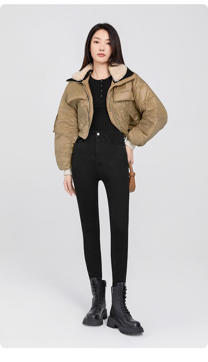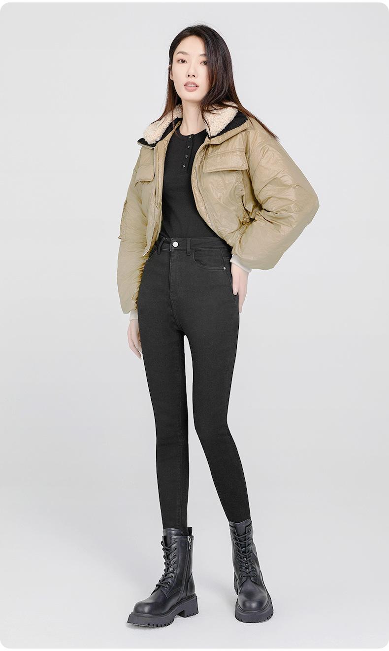 SP68 otoño nuevo un botón jeans negros forrados de vellón K-NZ406