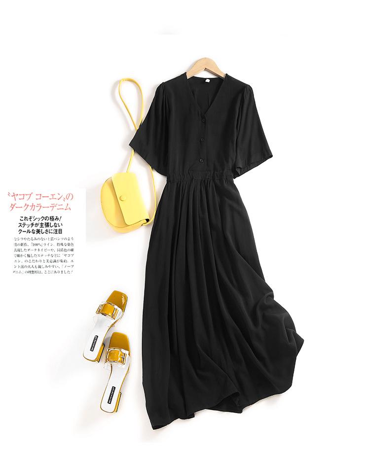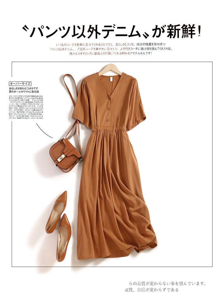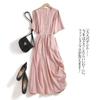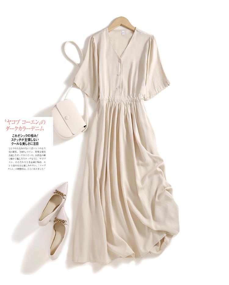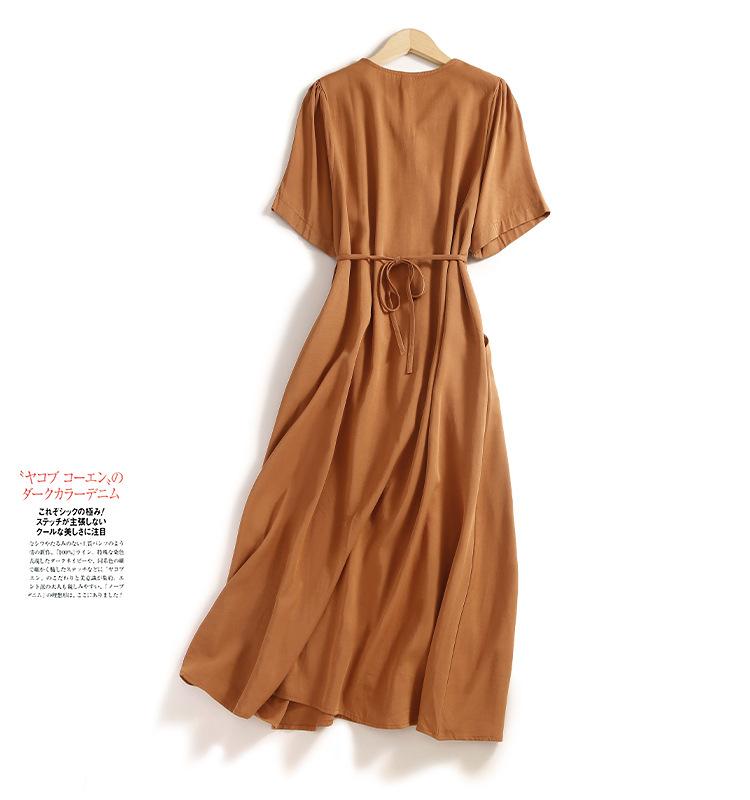 Vestido de verano de alta gama con cordones y manga corta, estilo japonés, con escote en V, falda larga para mujer, 2024