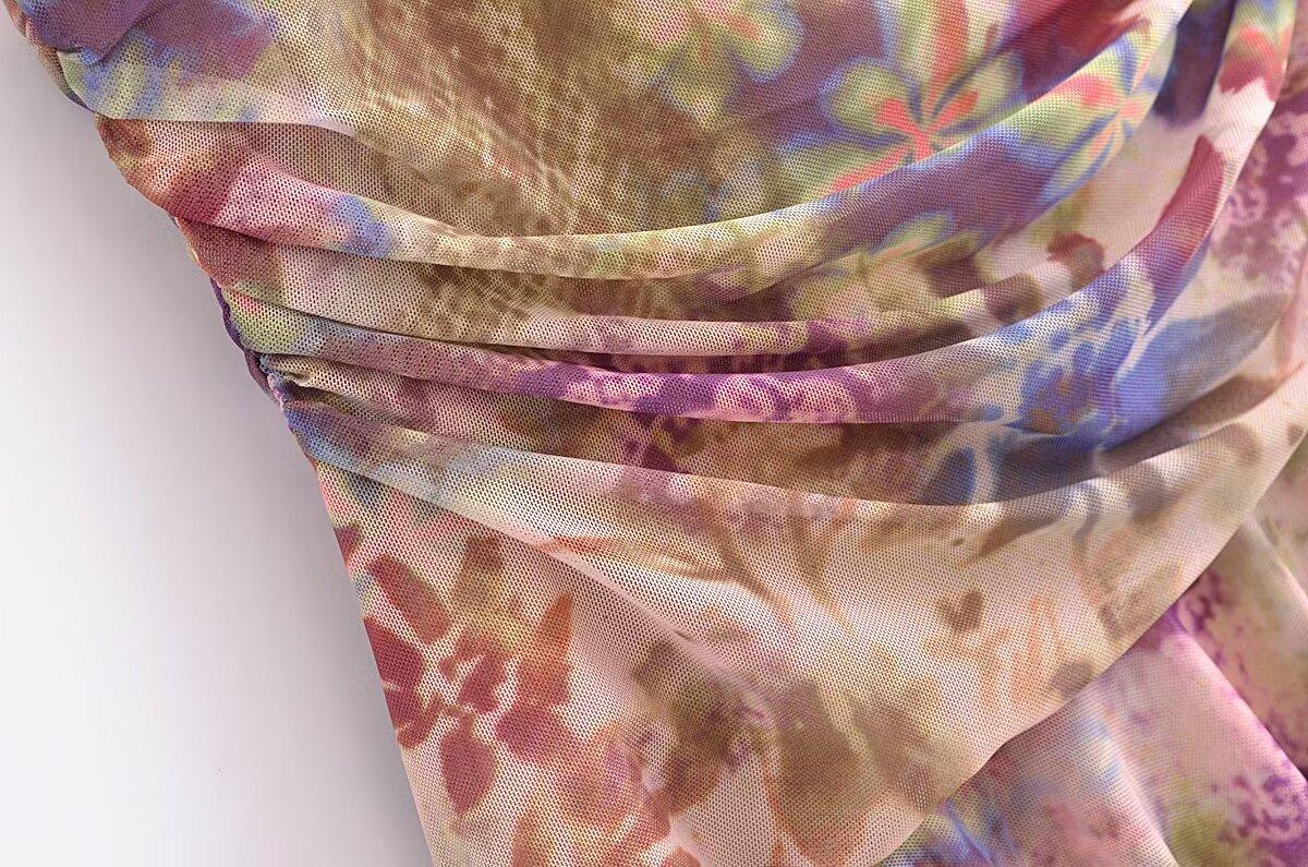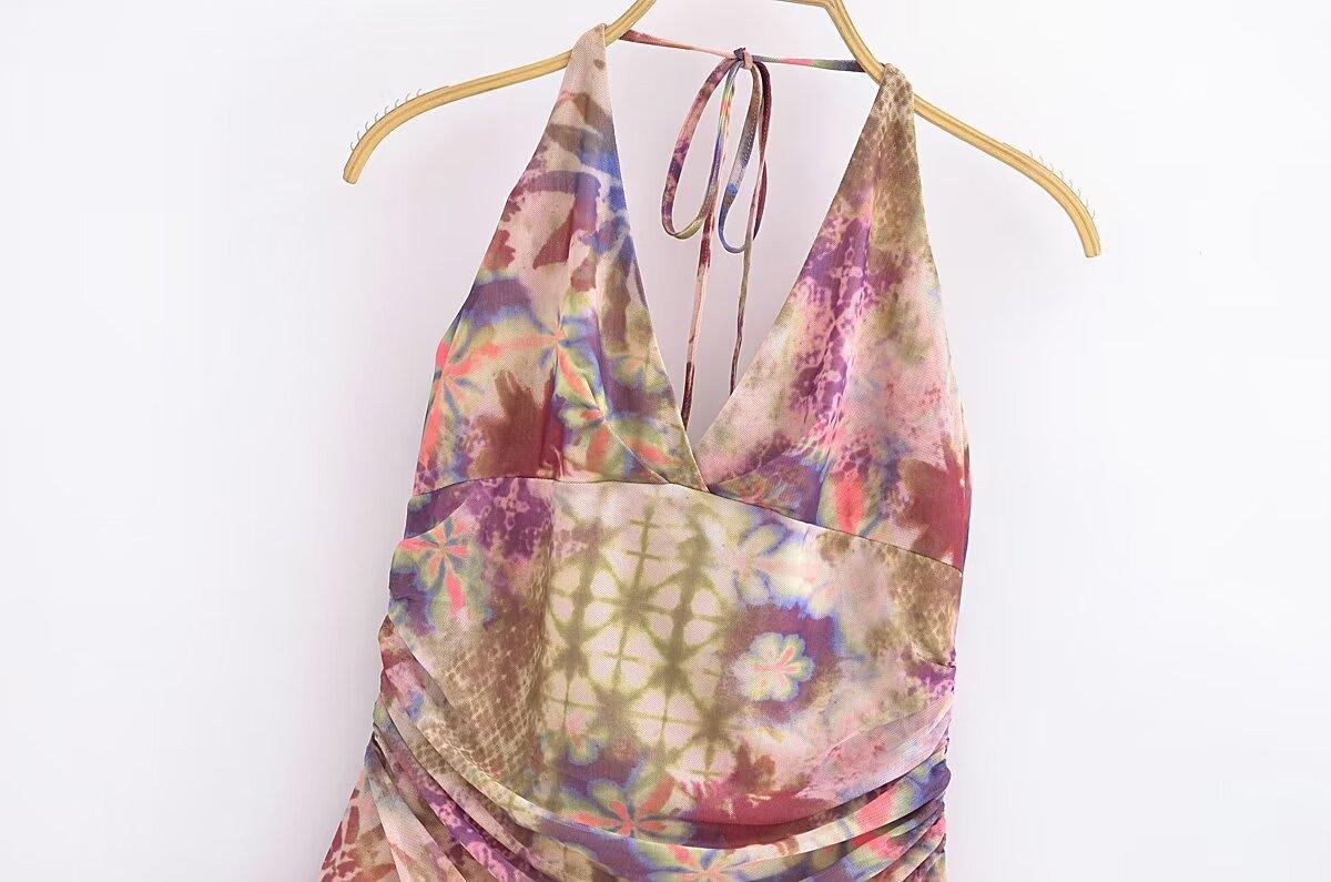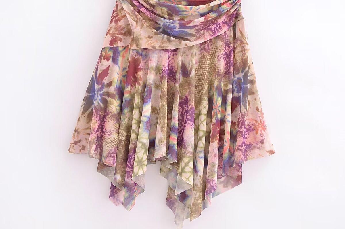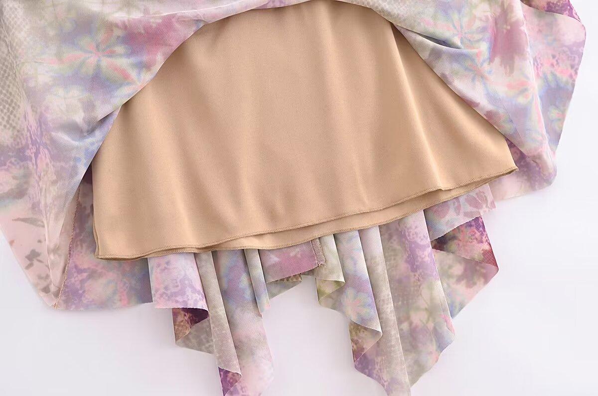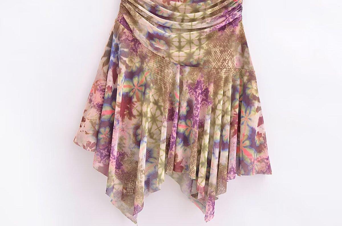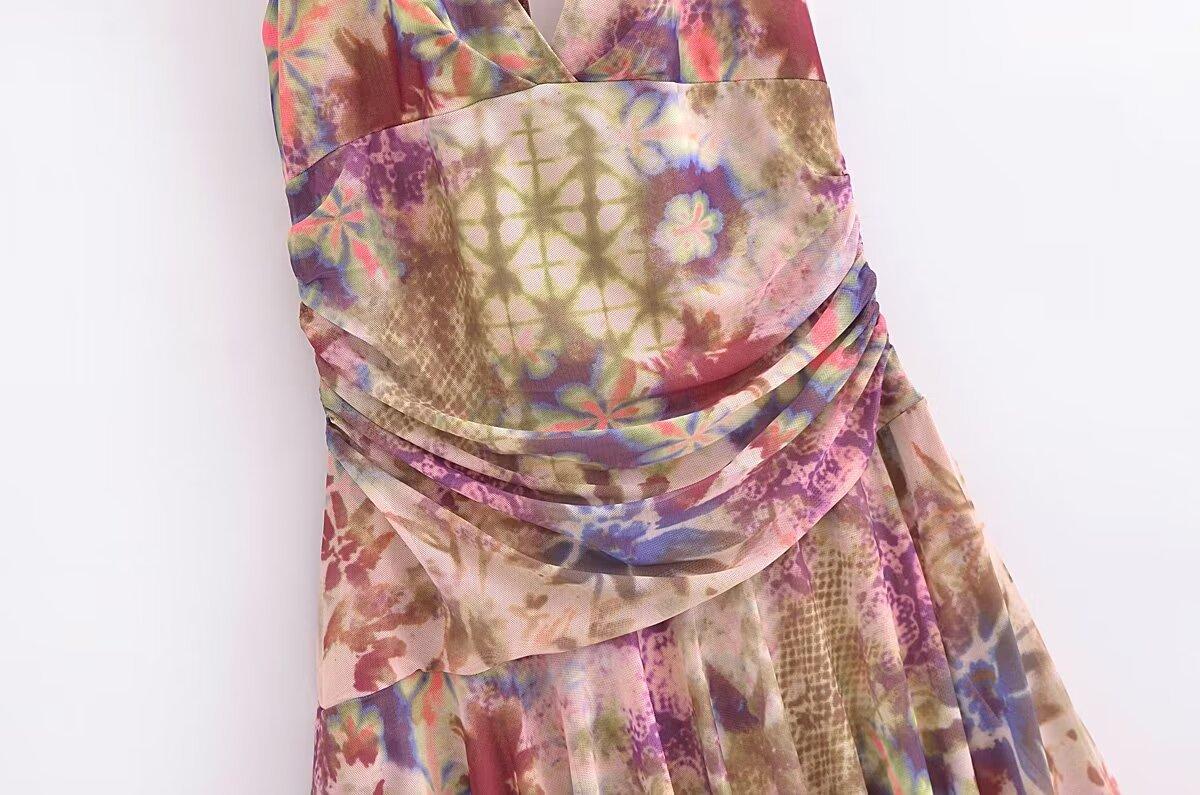 Vestido de primavera 6588-24, estilo francés, retro, informal, estampado, con escote en V y tirantes irregulares.