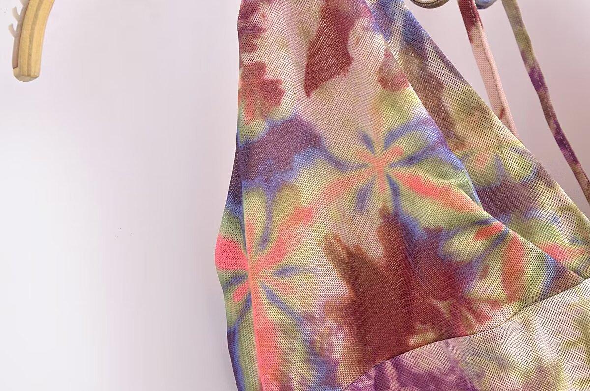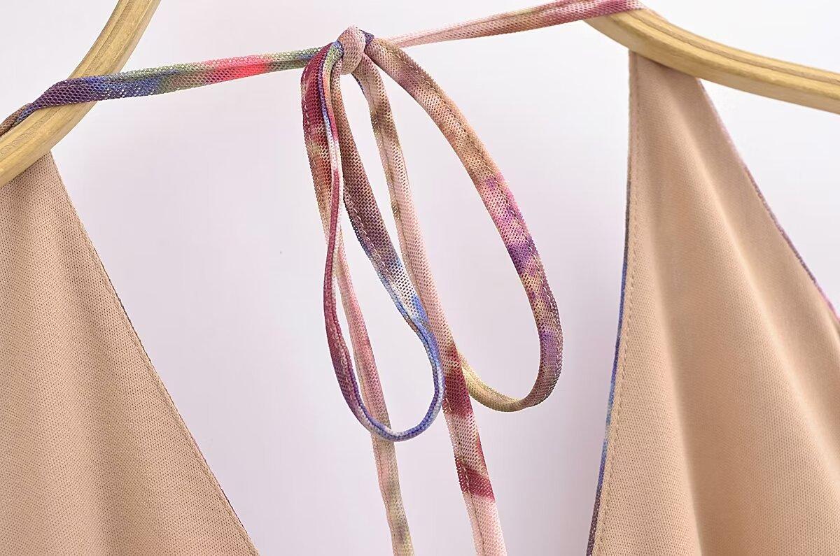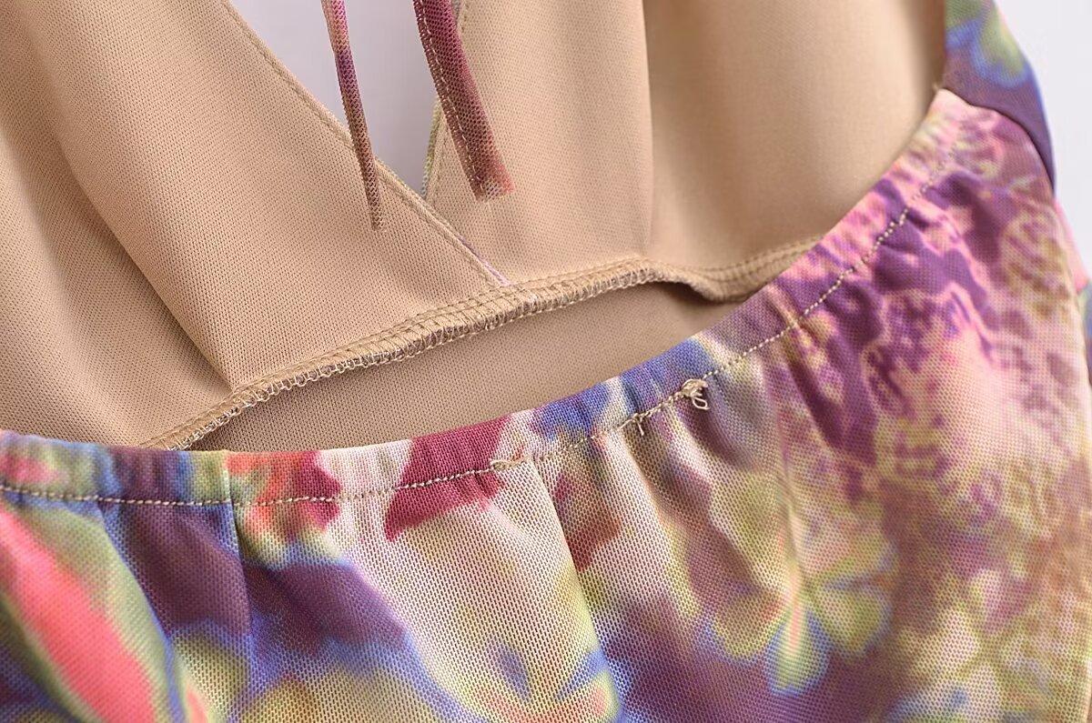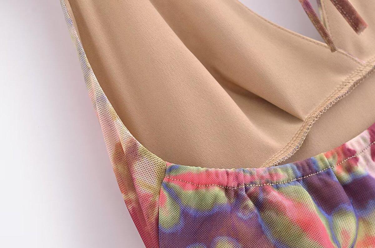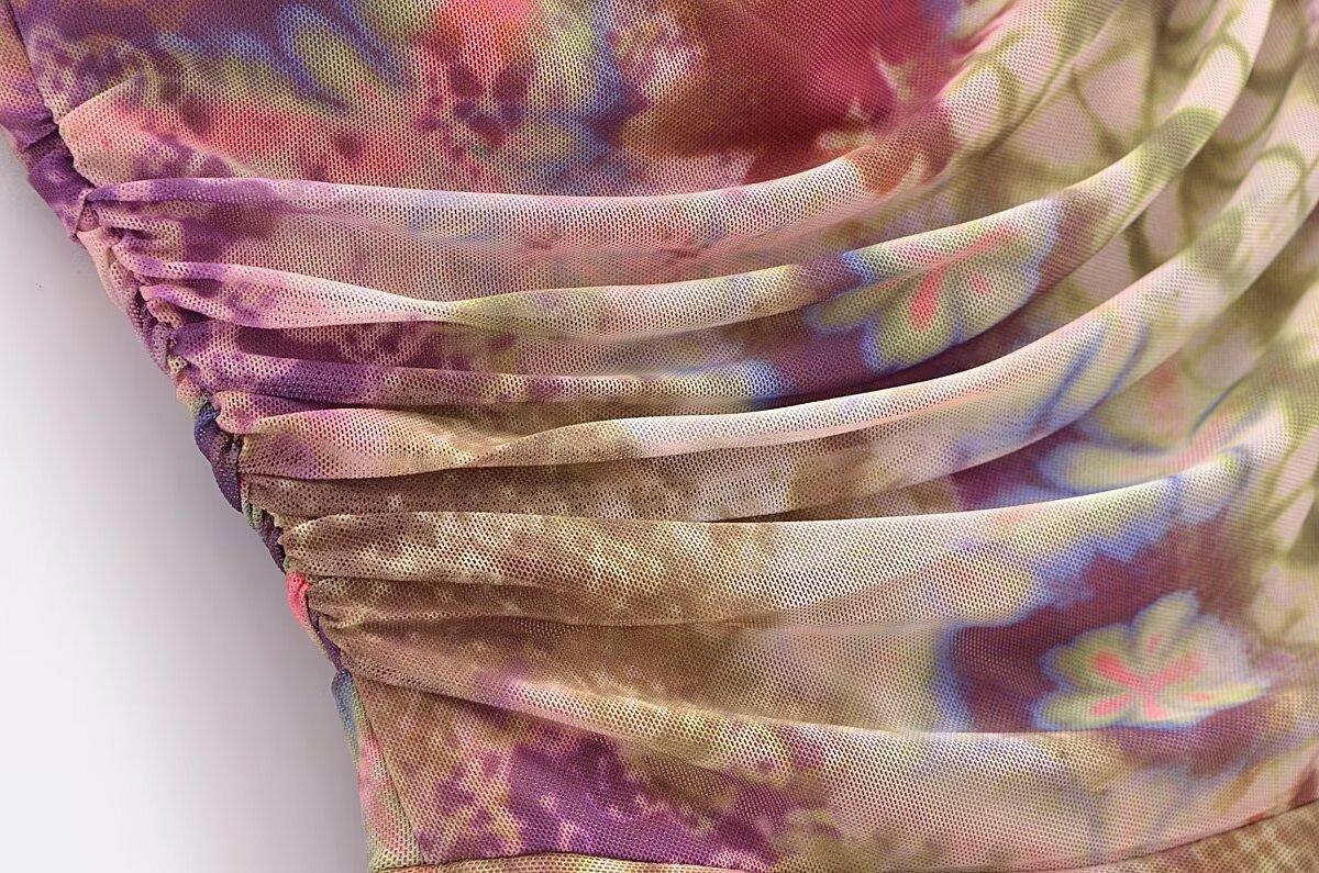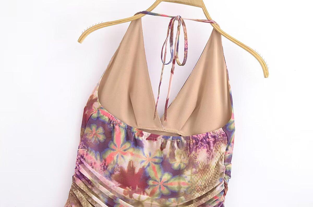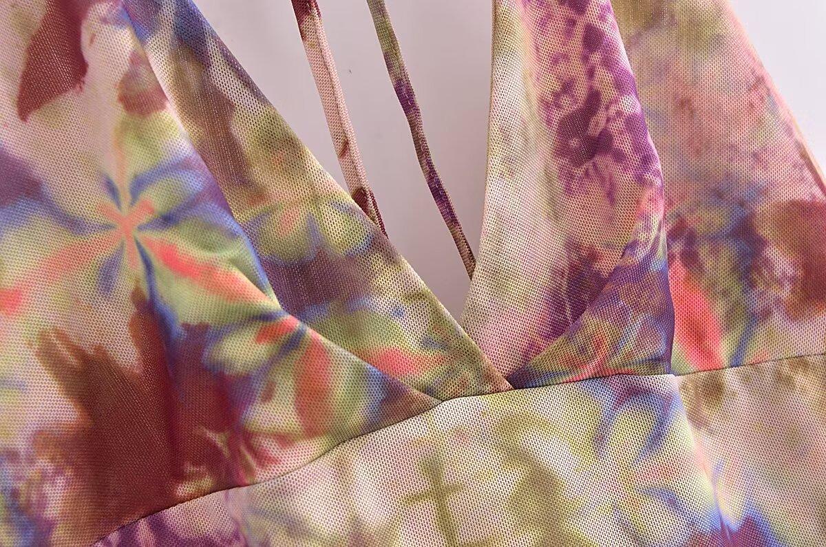 Vestido de primavera 6588-24, estilo francés, retro, informal, estampado, con escote en V y tirantes irregulares.
