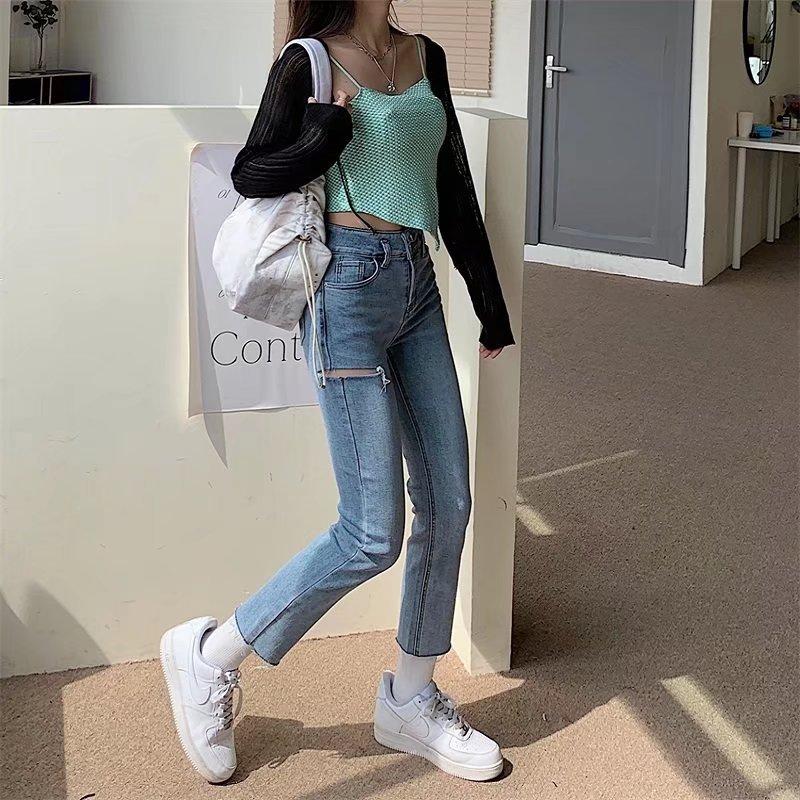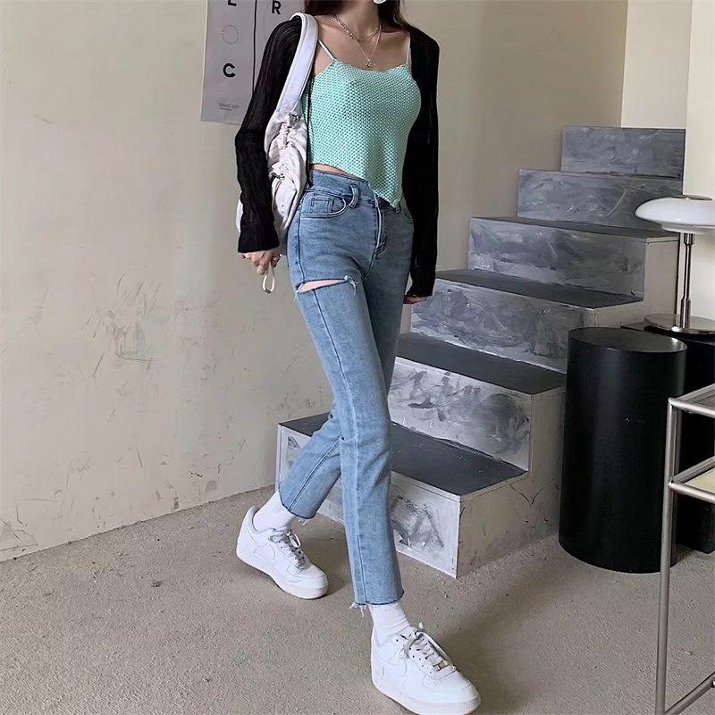 Pantalones vaqueros de cintura alta para mujer, primavera y verano 2024, nuevos pantalones ajustados tipo lápiz, leggings ajustados, moda Ins
