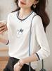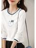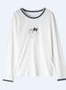 Top Simple de Dibujos Animados Bordado de Manga Larga 2023 Otoño e Invierno Nuevo Rayado de Color en Contraste Moda Casual Versátil Camiseta de Cuello Redondo para Mujer