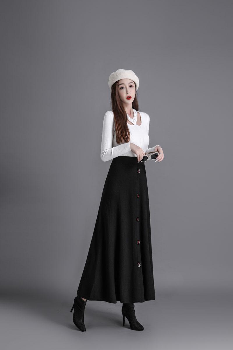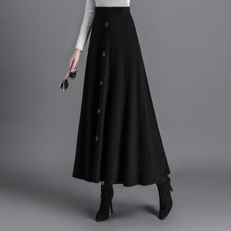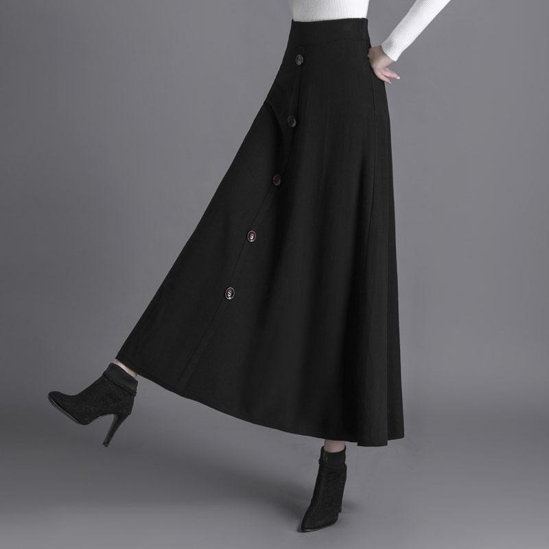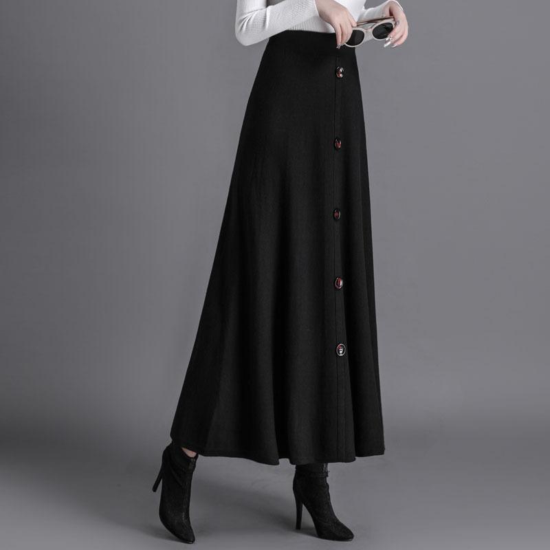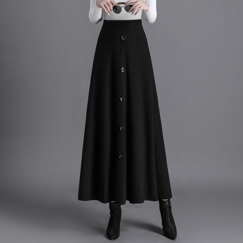 Falda de Lana Tejida para Mujer Otoño e Invierno 2025 Nueva Falda Paraguas de Vuelo Amplio A-Line de Cintura Alta para Dama Falda Midi Plisada