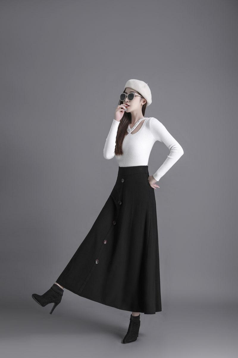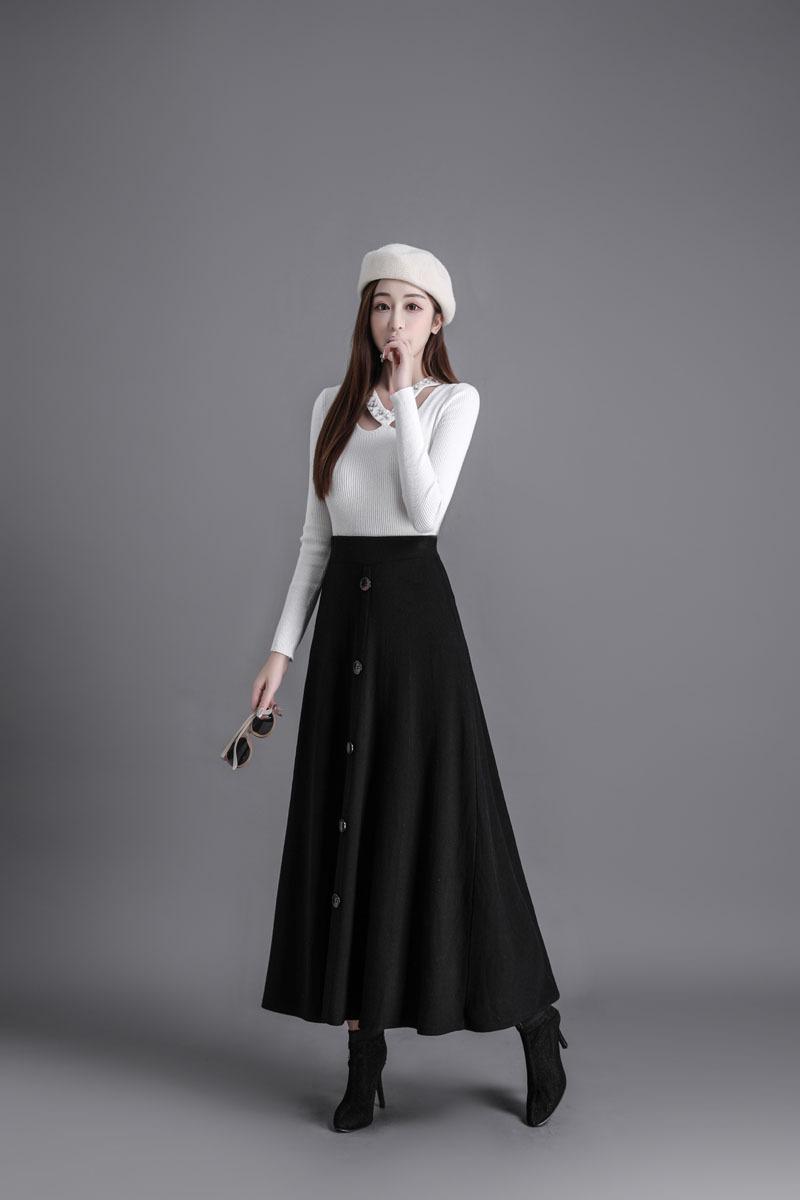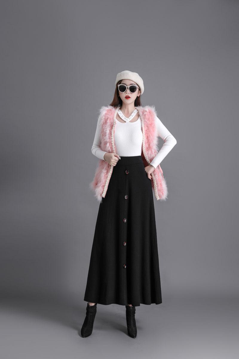Falda de Lana Tejida para Mujer Otoño e Invierno 2025 Nueva Falda Paraguas de Vuelo Amplio A-Line de Cintura Alta para Dama Falda Midi Plisada