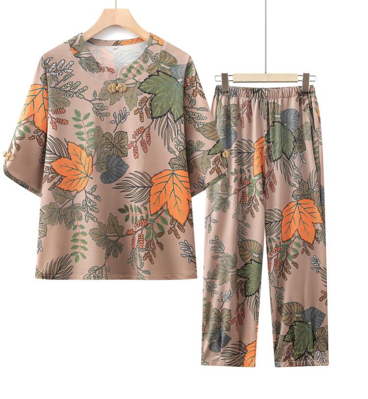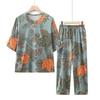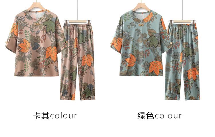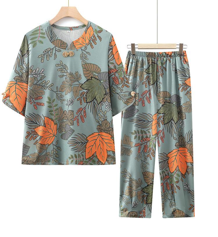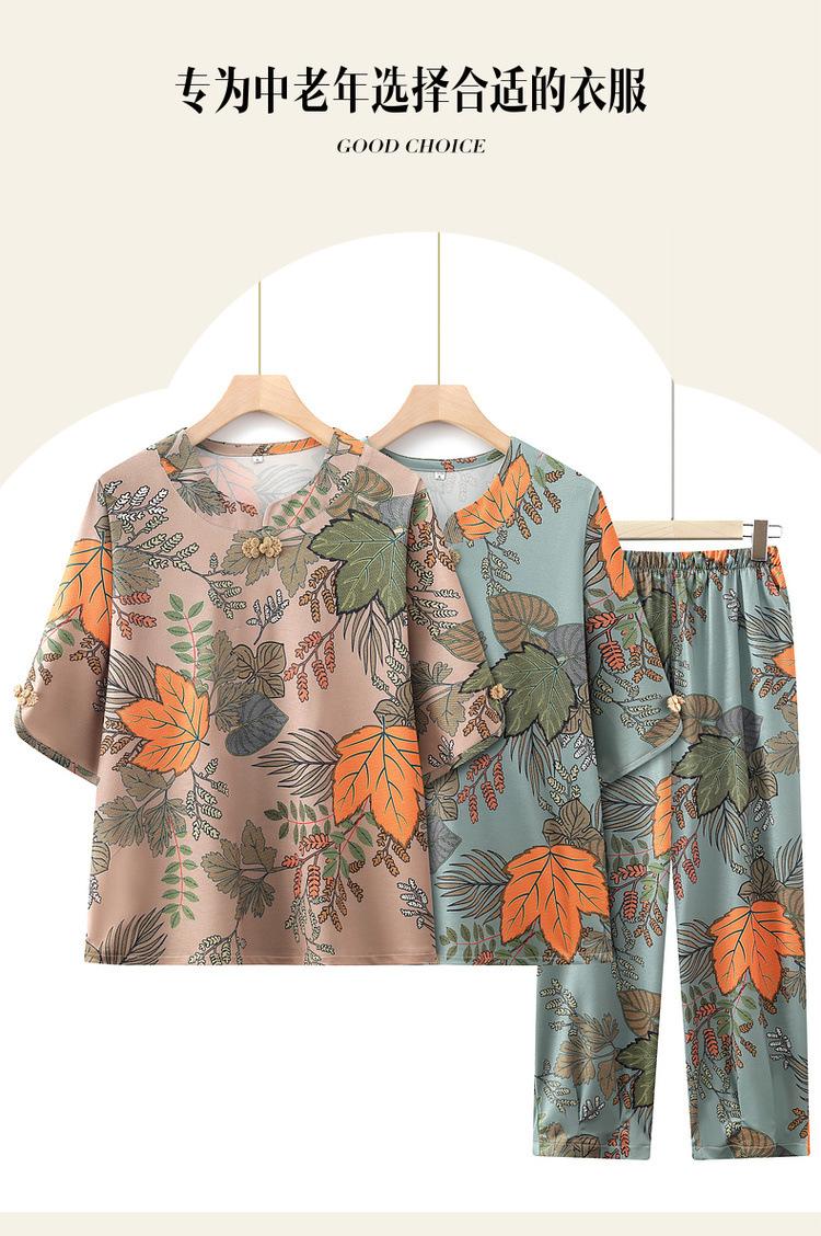 Traje informal de verano de abuela para mujer de mediana edad y anciana, ropa de casa fina de media manga, pijama de verano, conjunto de dos piezas
