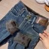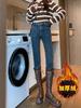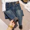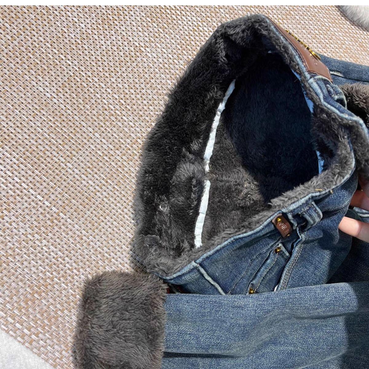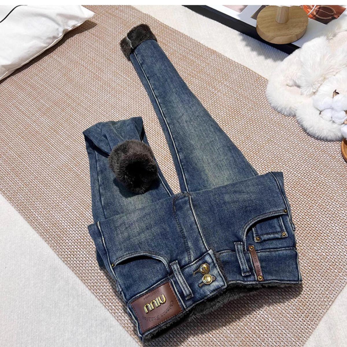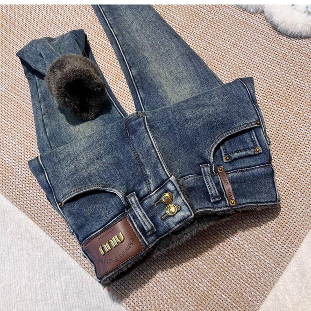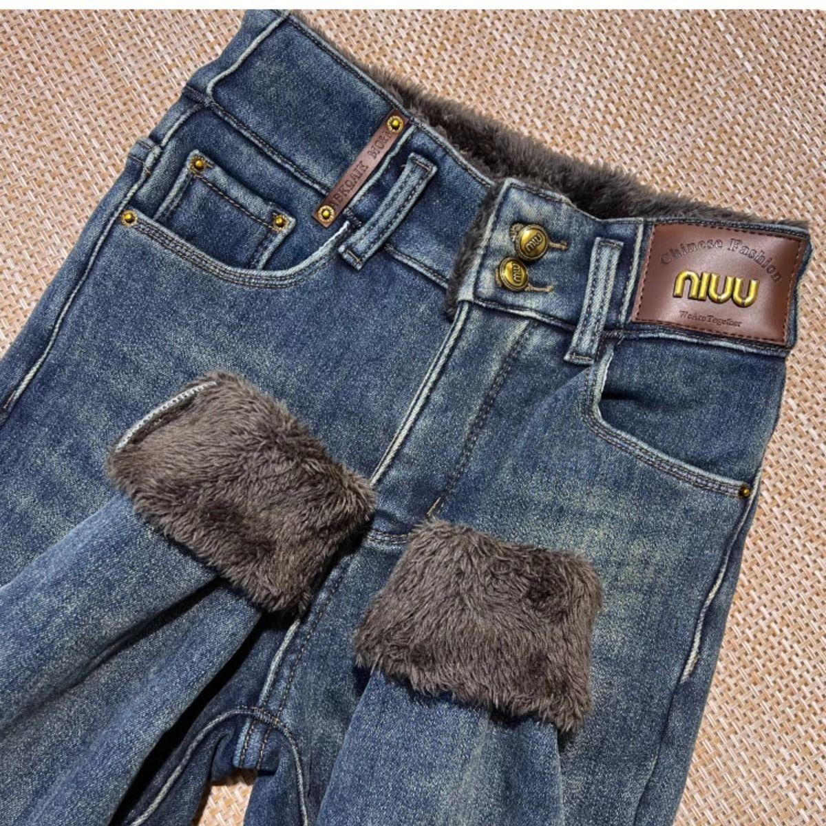 Pantalones vaqueros gruesos de color azul grisáceo con forro polar para mujer, de Chubby Girl, de invierno, nuevos, de cintura alta, ajustados, con diseño adelgazante, ajustados, pantalones de tubo