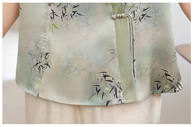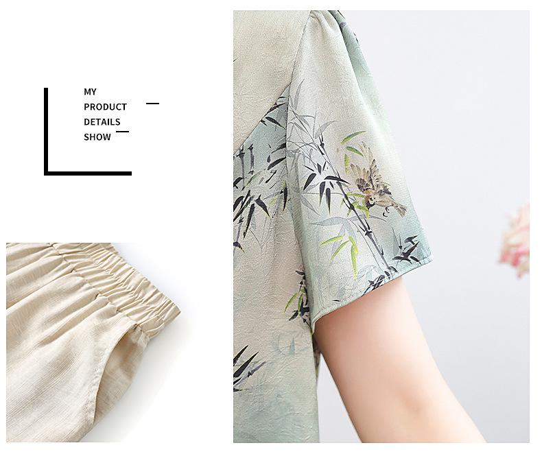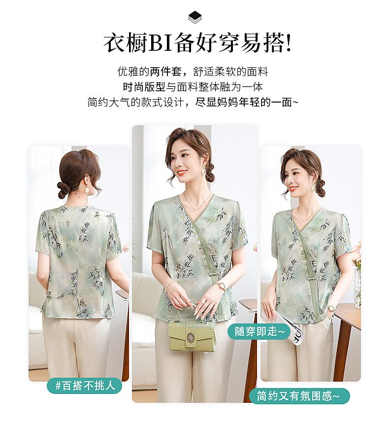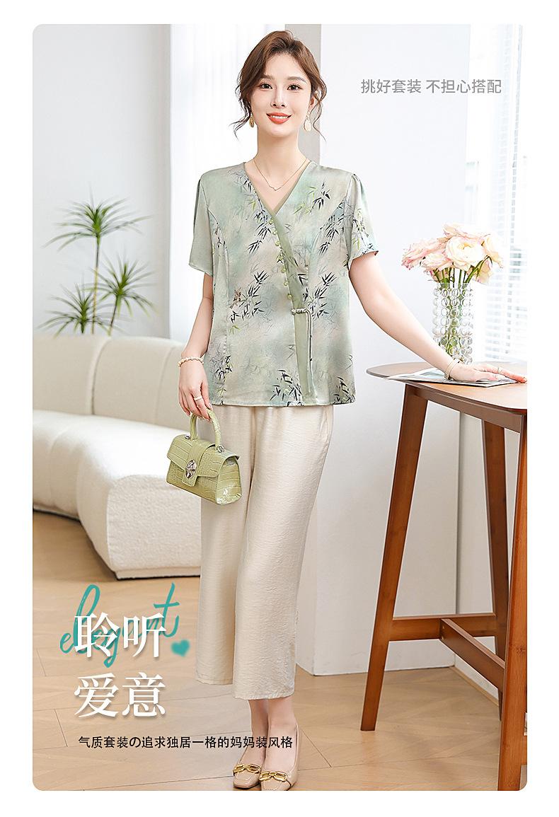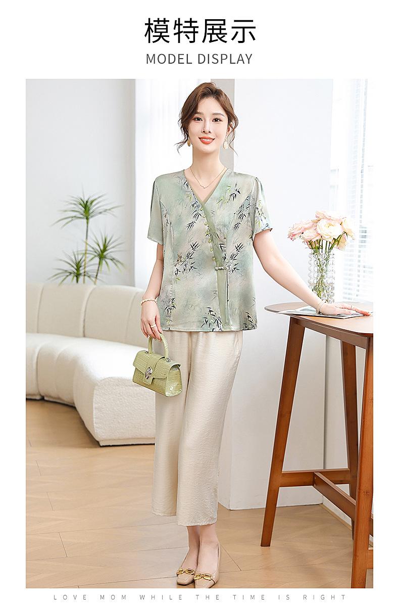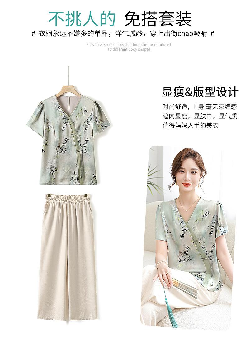 Traje de Vestido de Verano para Madres Nuevas 2024 Top de Estilo Occidental para Mujeres de Mediana Edad Camiseta de Manga Corta para Mujeres de Mediana Edad Conjunto de Dos Piezas Guofeng