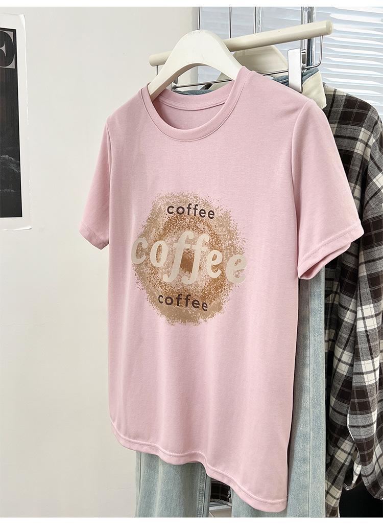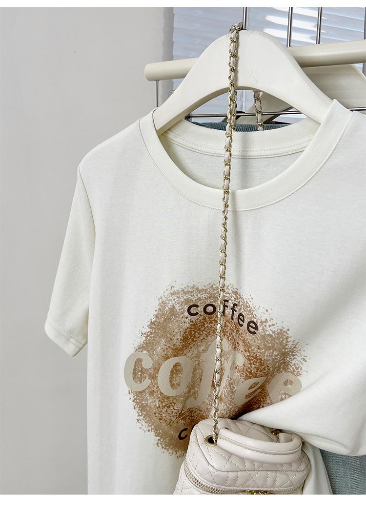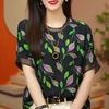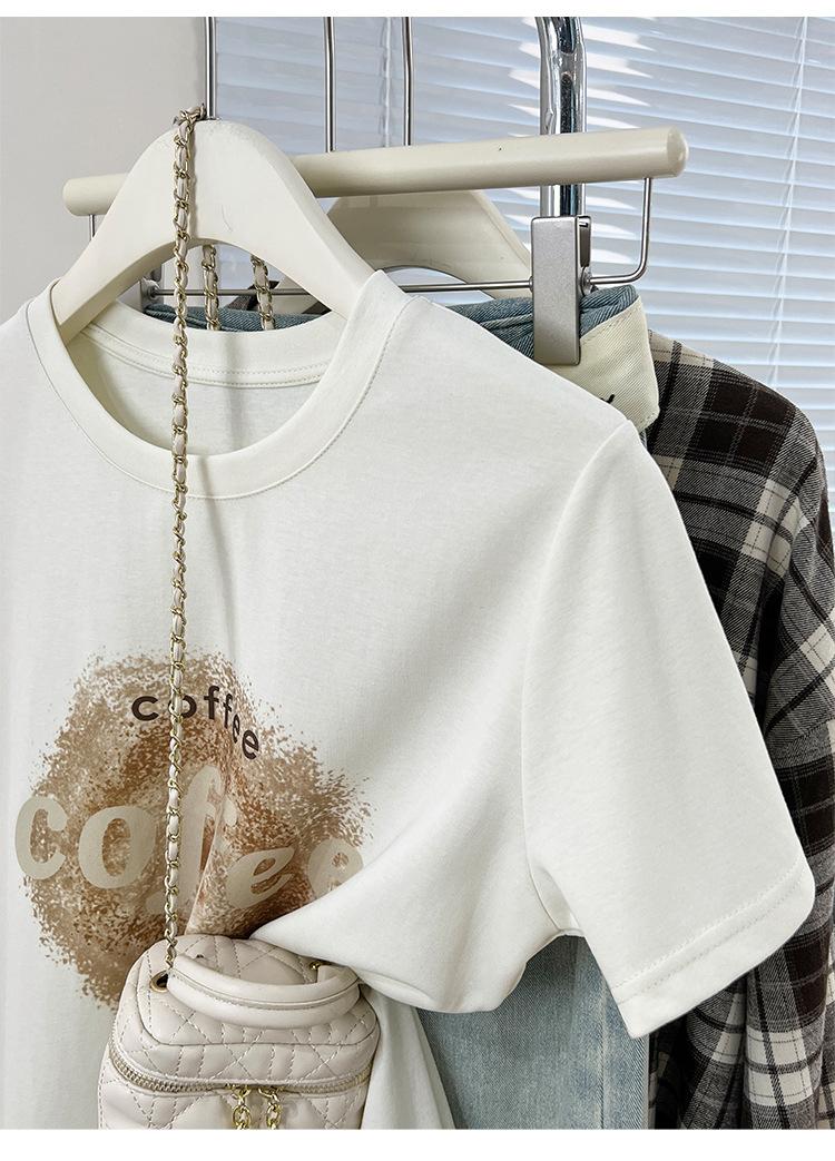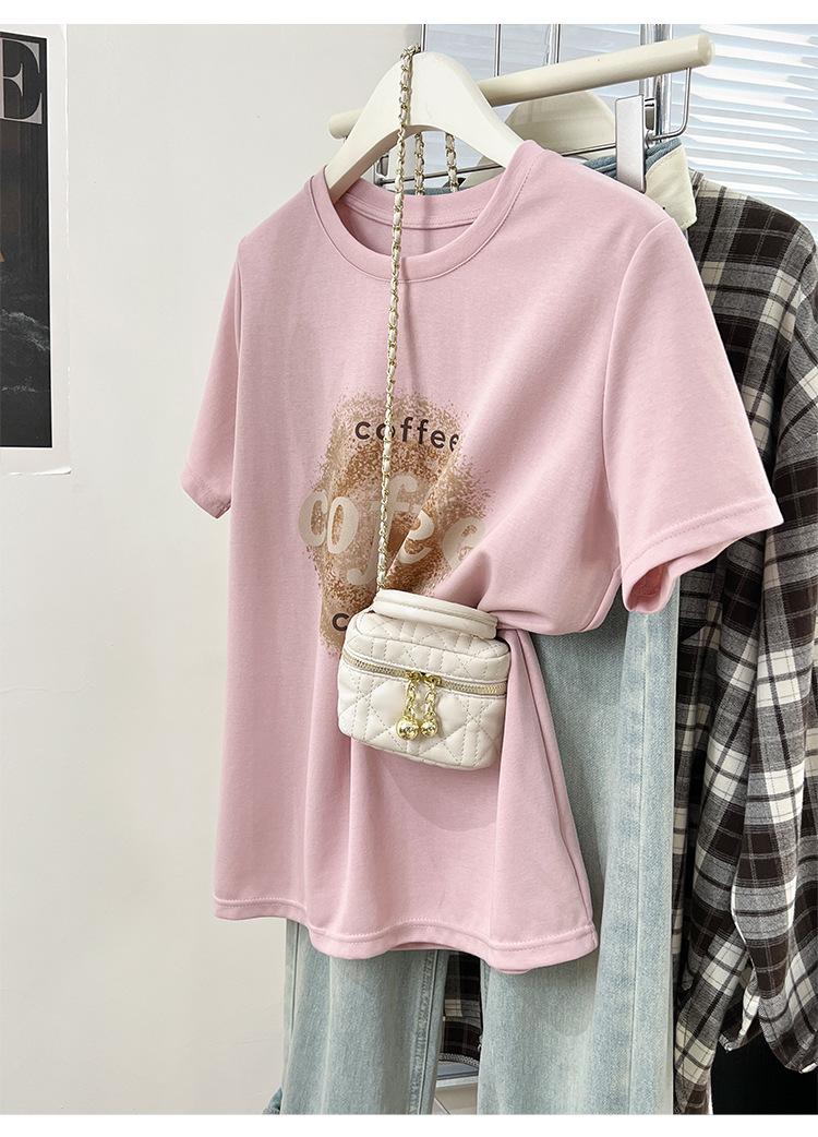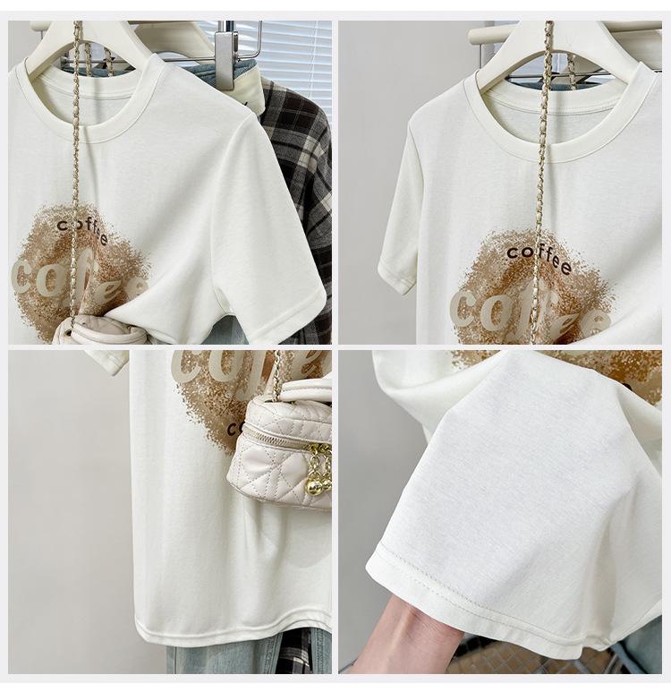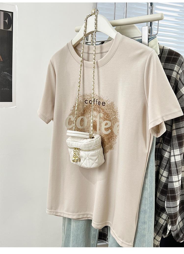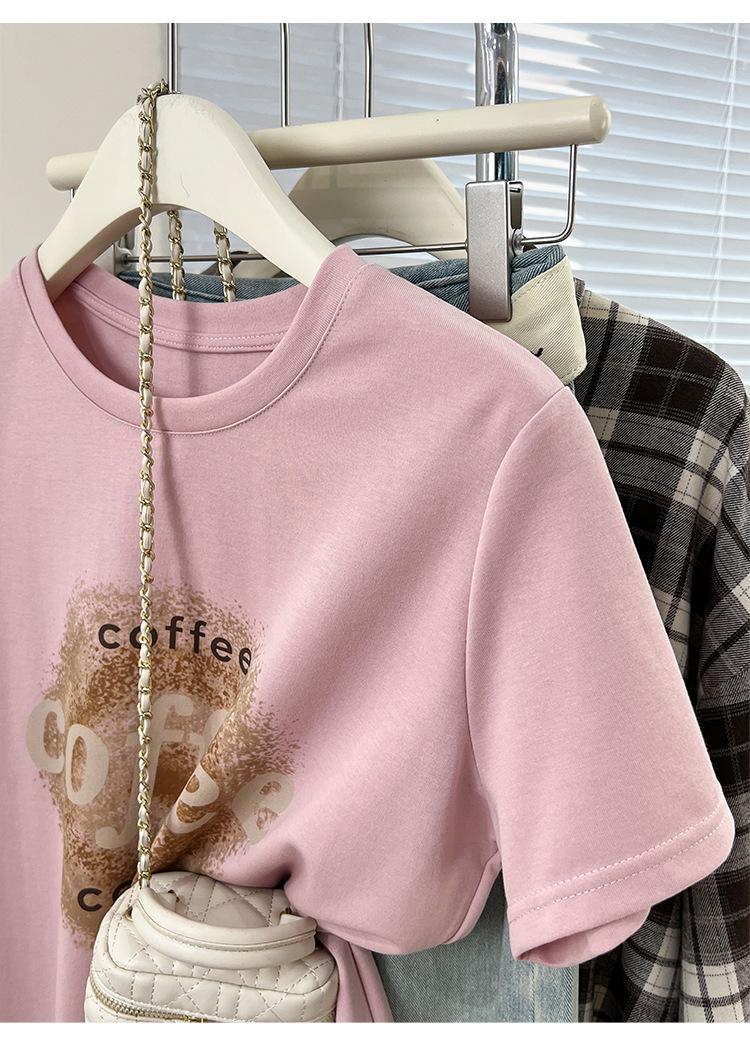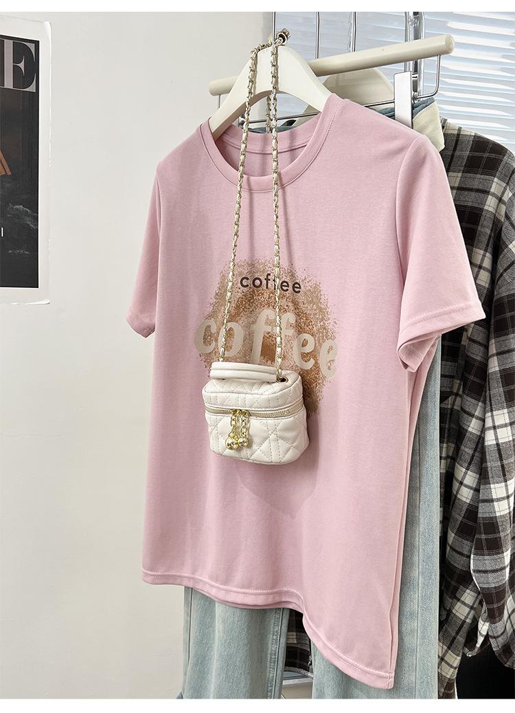 Camiseta de manga corta con cuello redondo y estampado de Design Sense para mujer, estilo nuevo de verano 2024, estilo camisa pequeña, estilo holgado, top de moda
