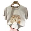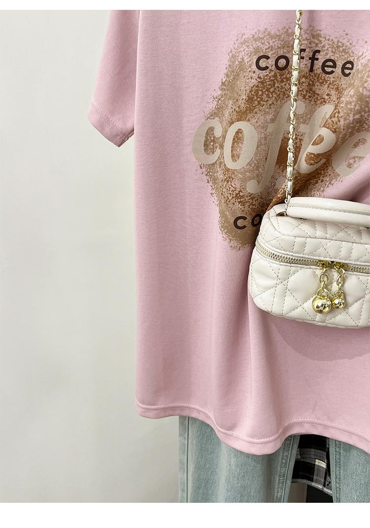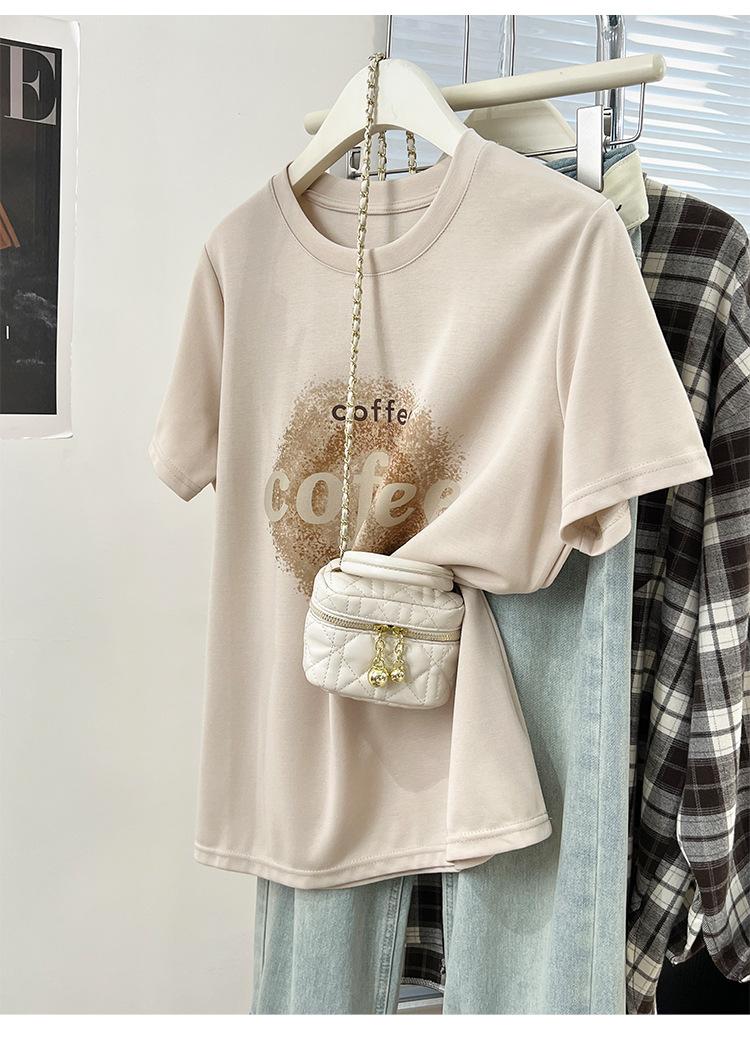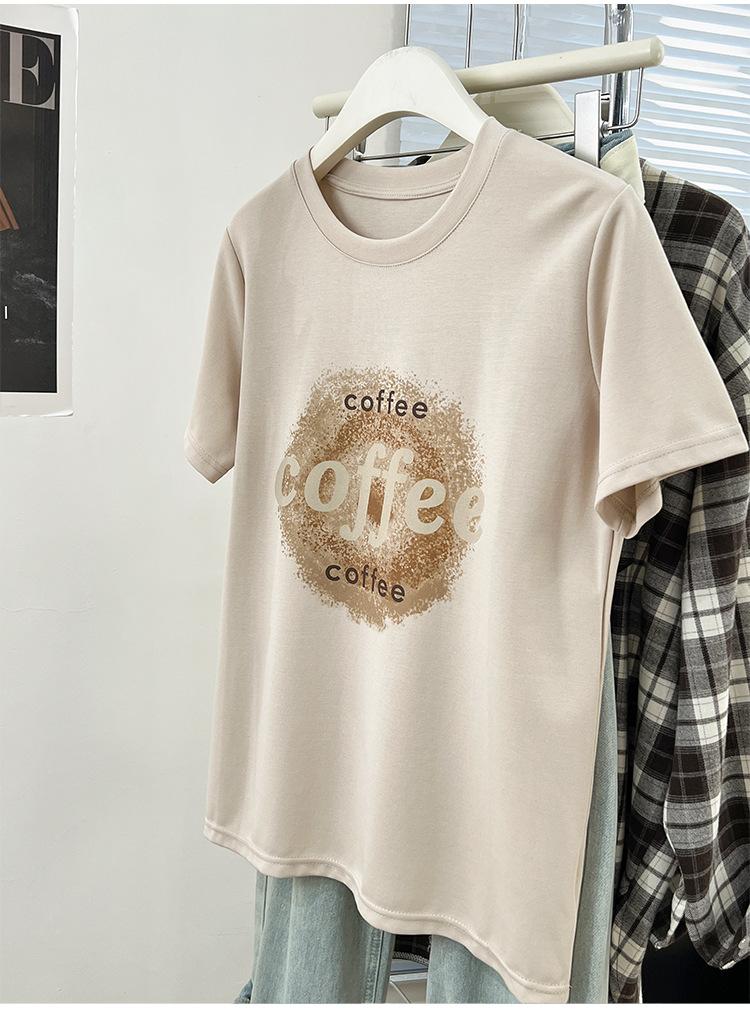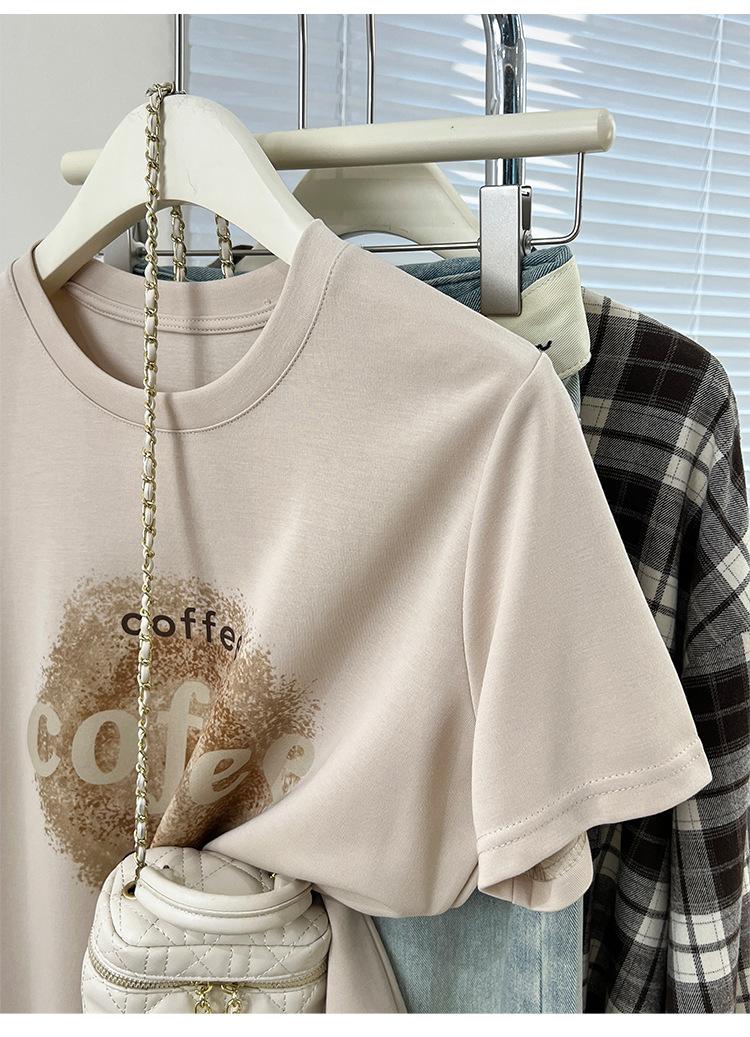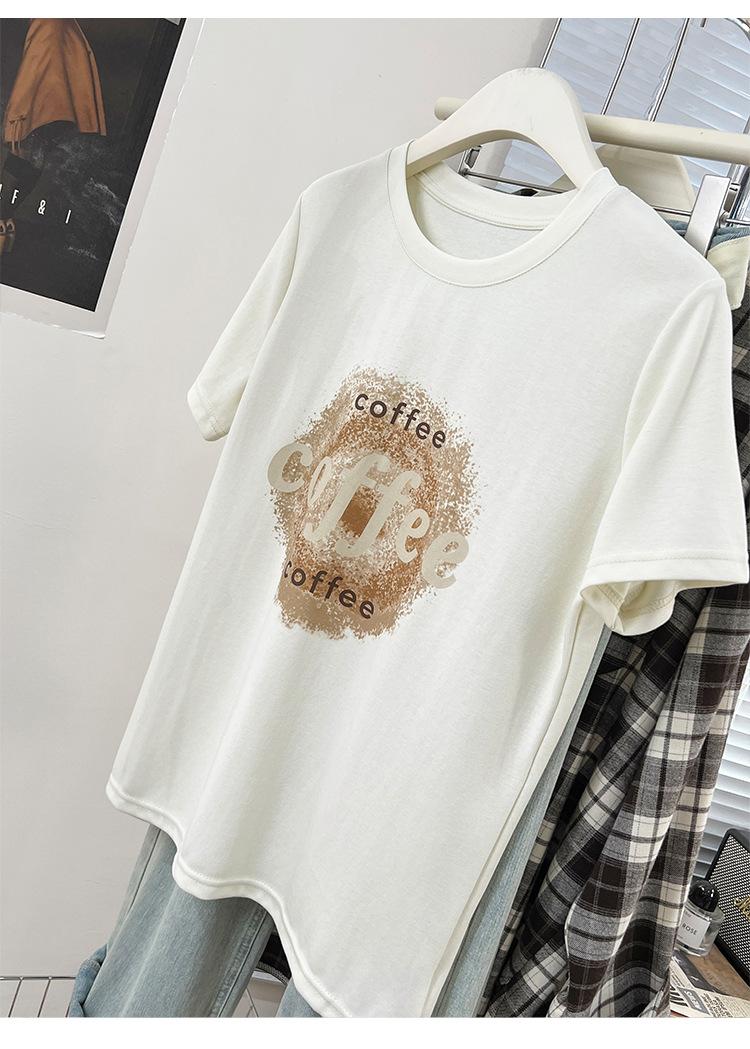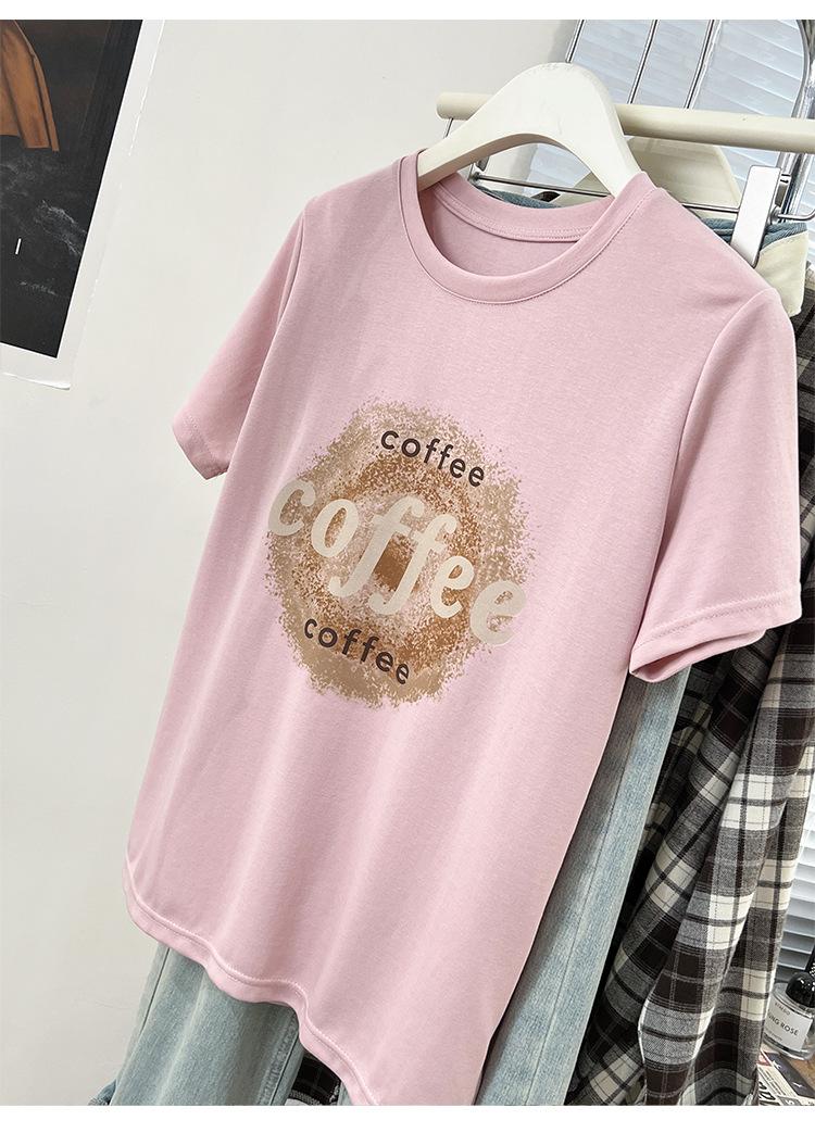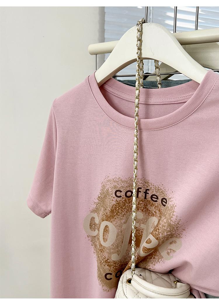 Camiseta de manga corta con cuello redondo y estampado de Design Sense para mujer, estilo nuevo de verano 2024, estilo camisa pequeña, estilo holgado, top de moda
