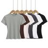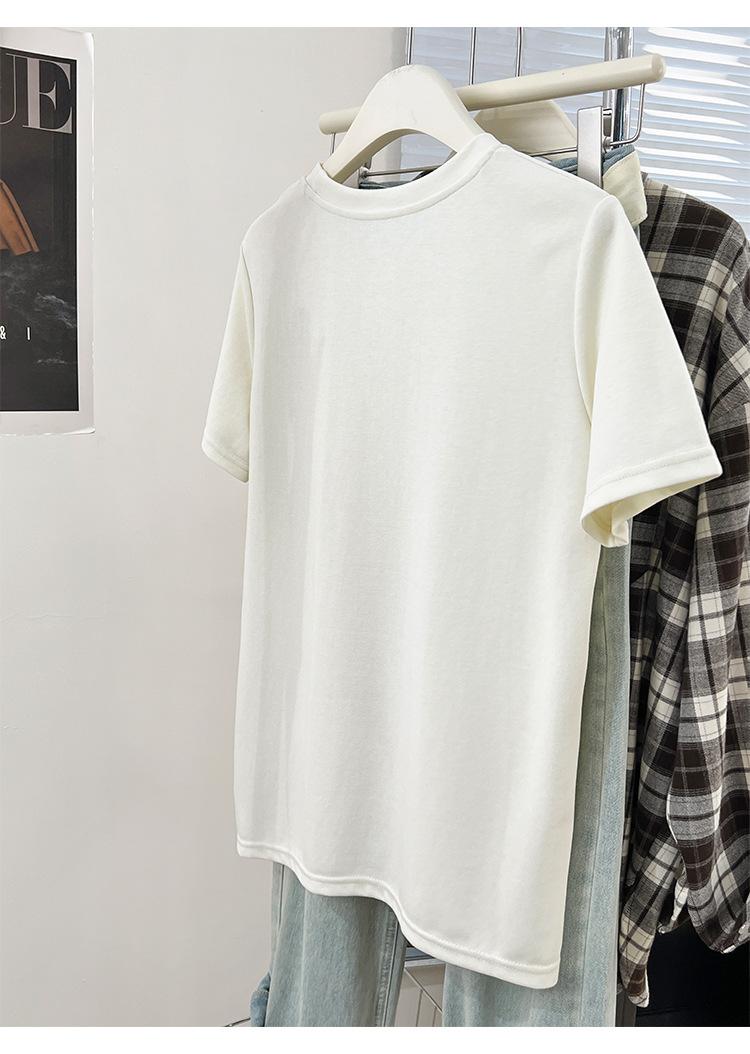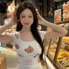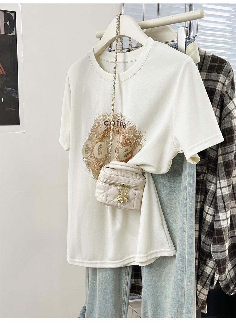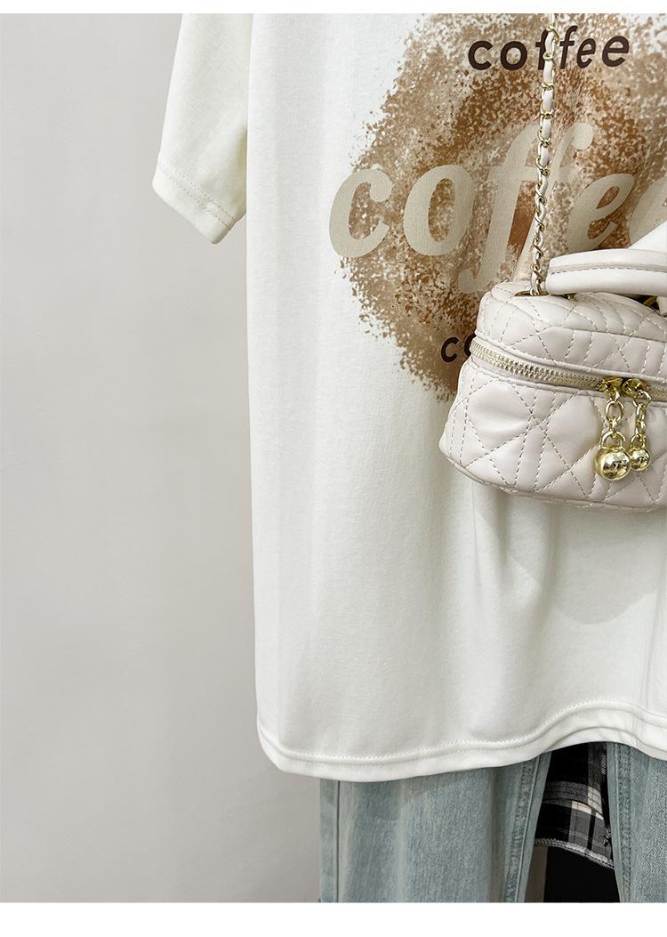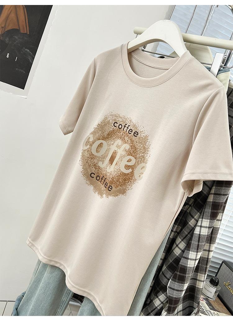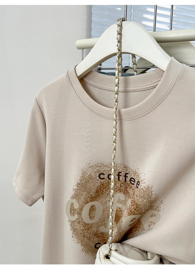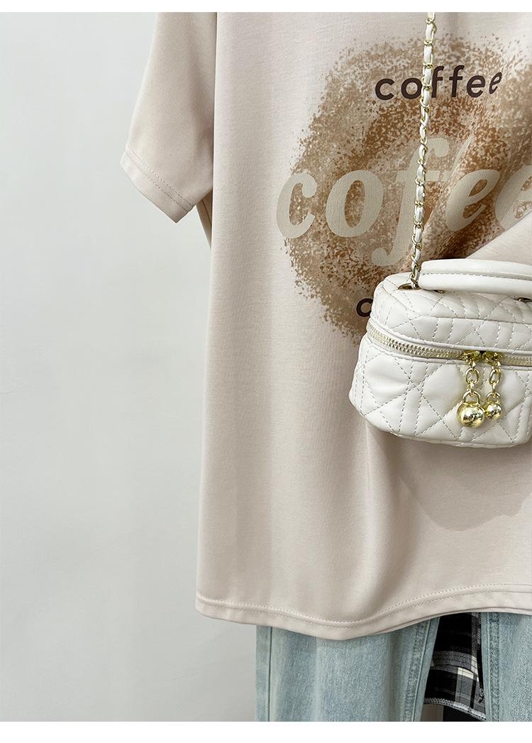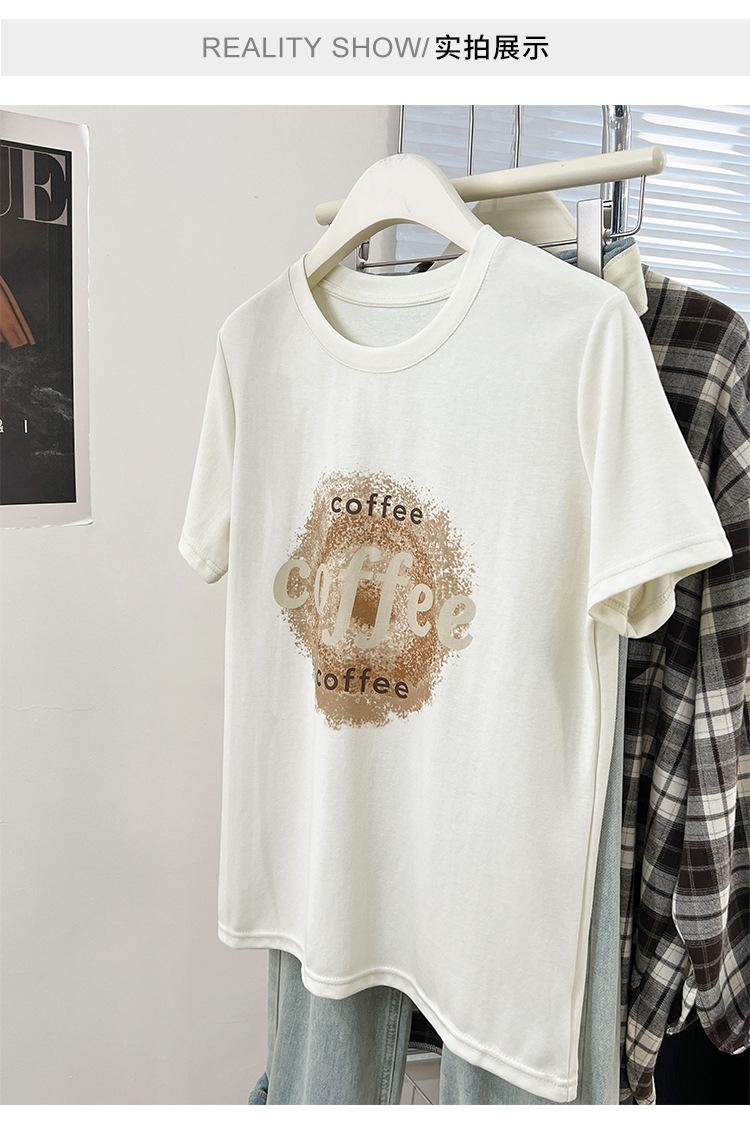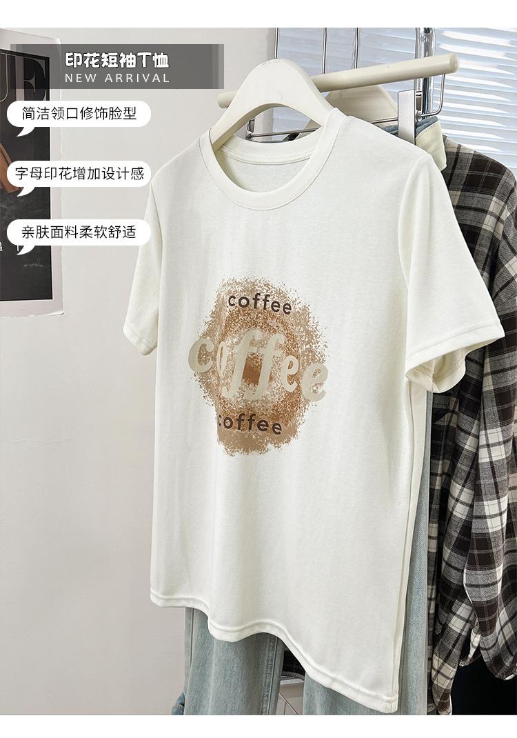 Camiseta de manga corta con cuello redondo y estampado de Design Sense para mujer, estilo nuevo de verano 2024, estilo camisa pequeña, estilo holgado, top de moda