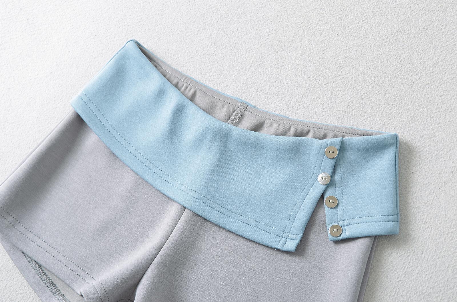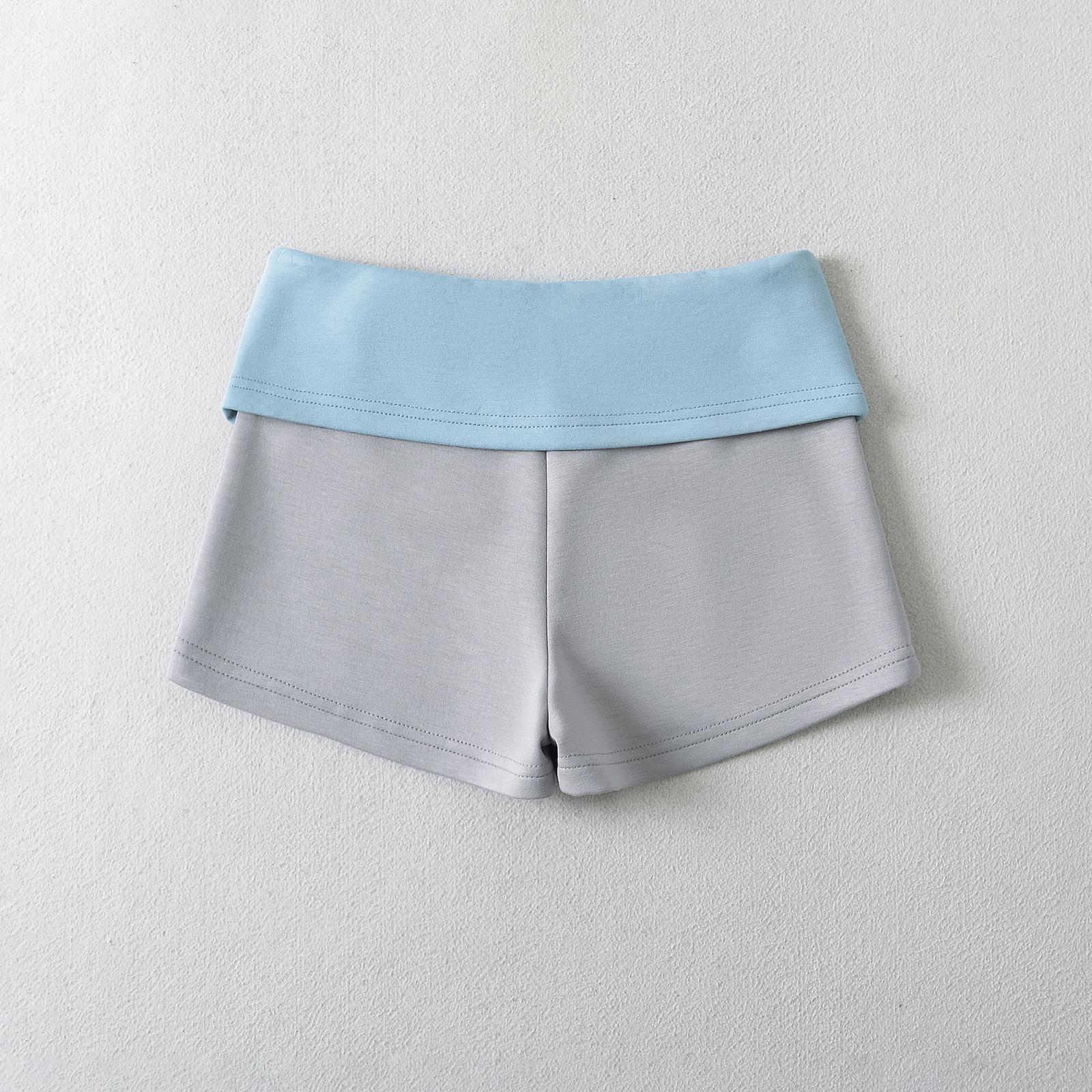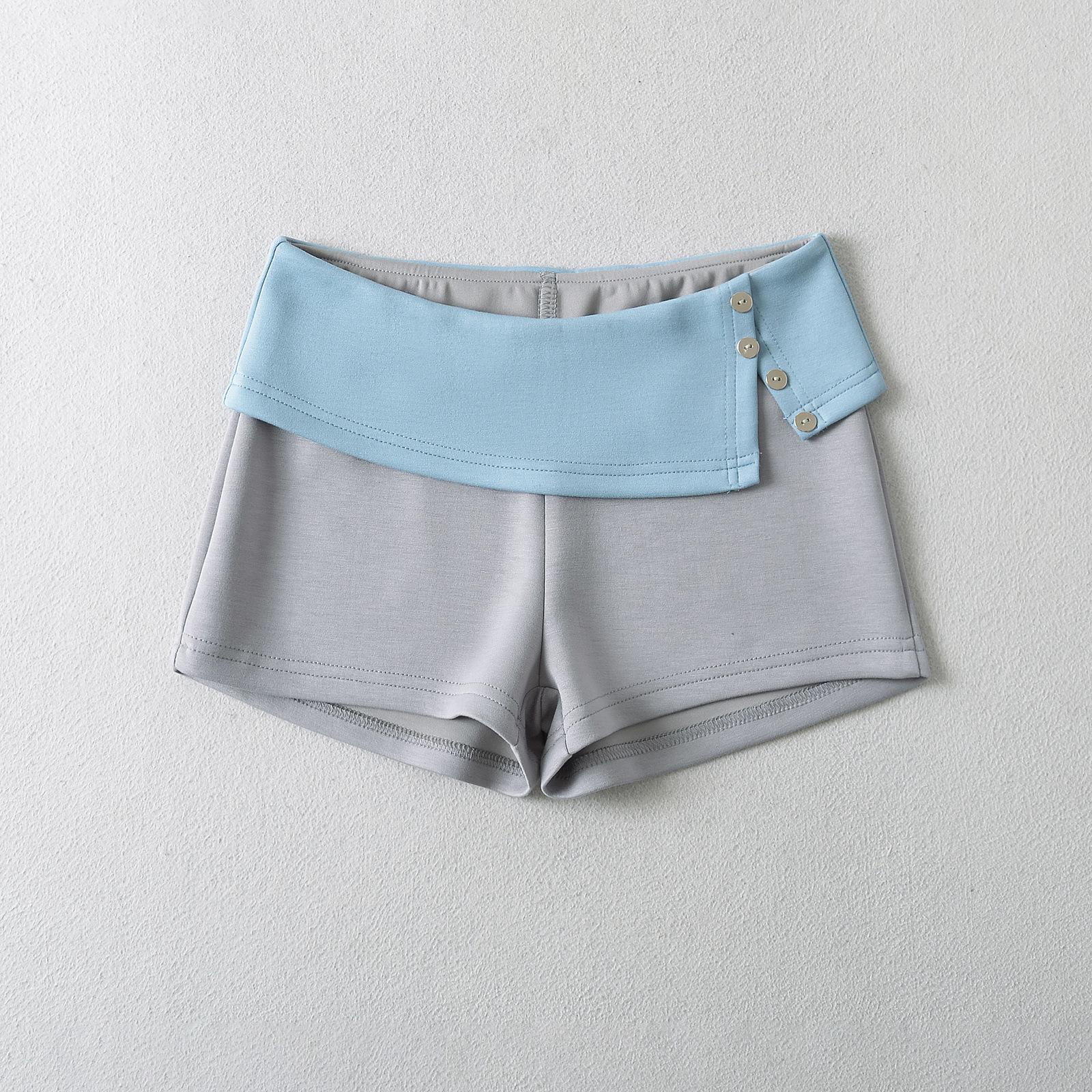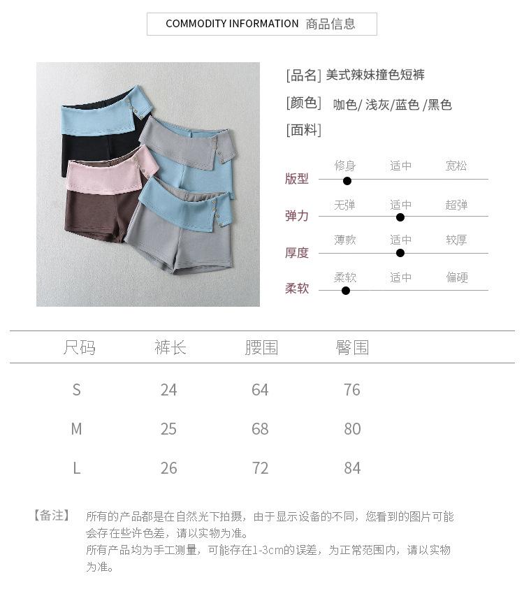 Y1870-24 Verano Nuevo Estilo Americano Chica Caliente Sexy Cintura Baja Contraste de Color Dobladillo Deslizante Botón Casual Pantalones Cortos