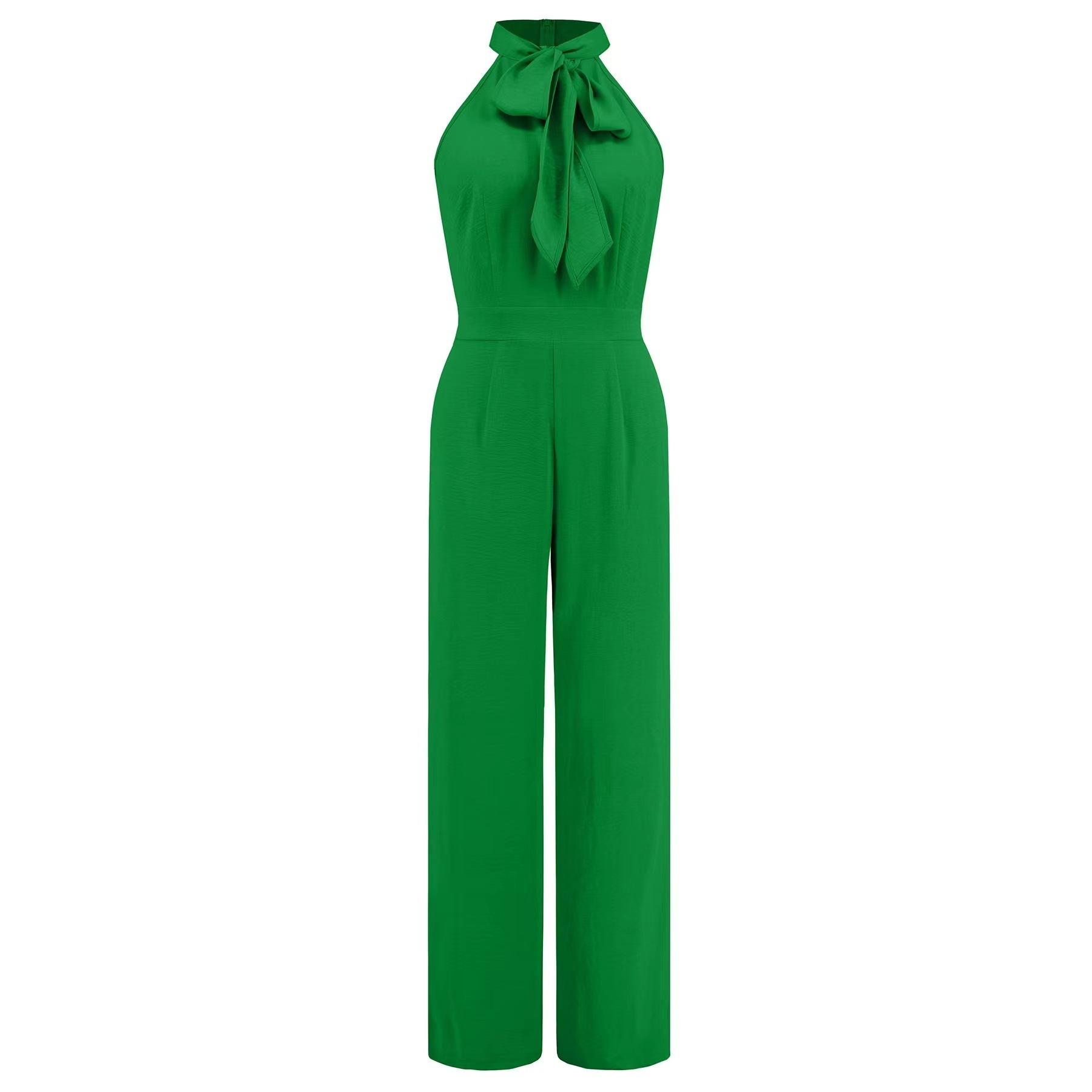 Mono elegante, ajustado y sexy, sin mangas, con cuello y lazo, pantalones largos rectos, novedad de verano de 2024, Amazon