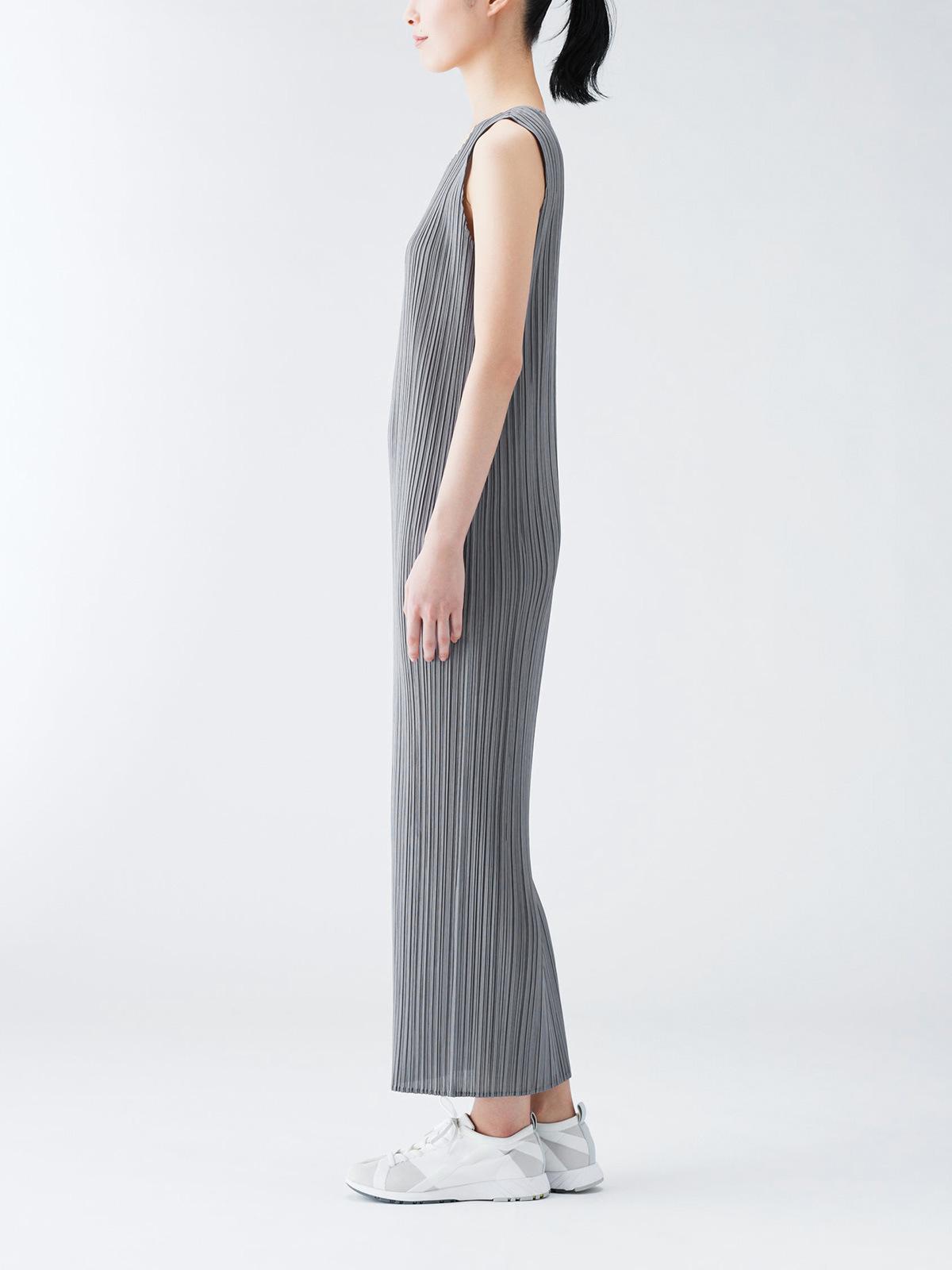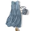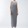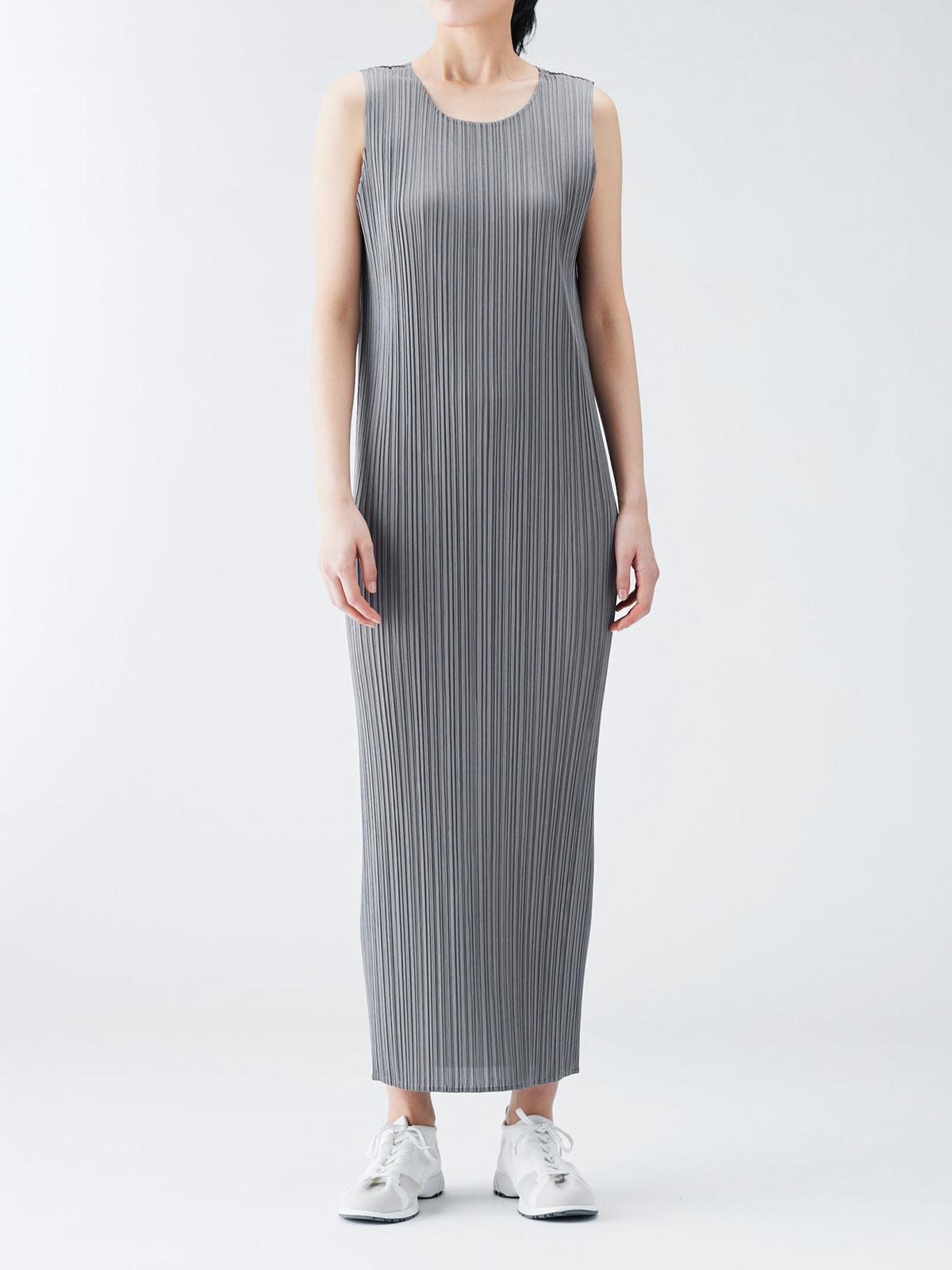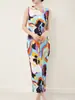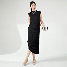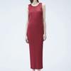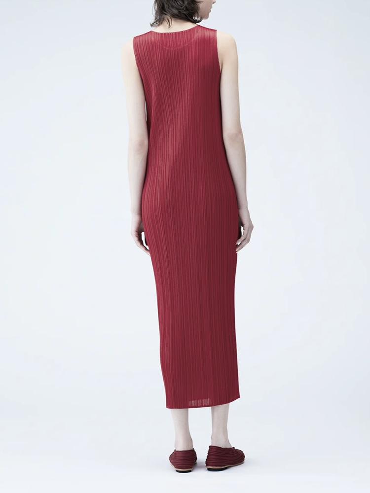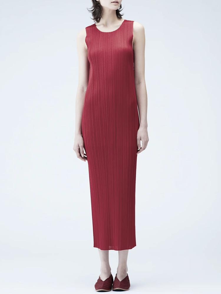 Vestido Miyake Counter Verano para Mujer Largo Básico Cuello Redondo Sin Mangas Vestido Chaleco Versátil Falda Recta