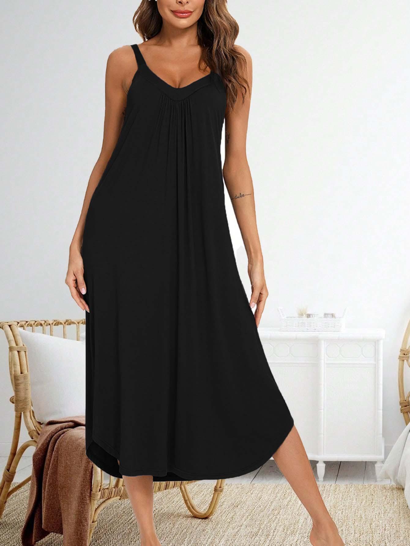 2024 Amazon Transfronterizo Europeo y Americano Vestido de Tirantes sin Mangas con Cuello en V Cómodo y Fresco para Estar en Casa Camisón Holgado para Mujer