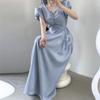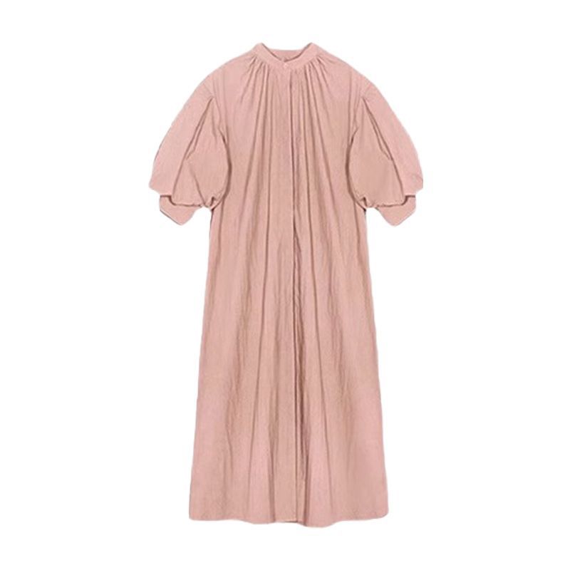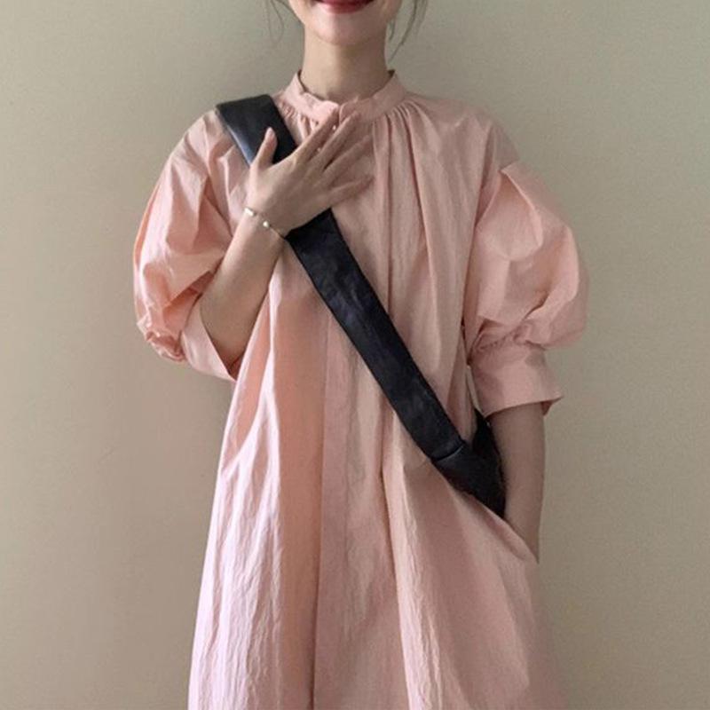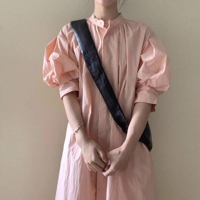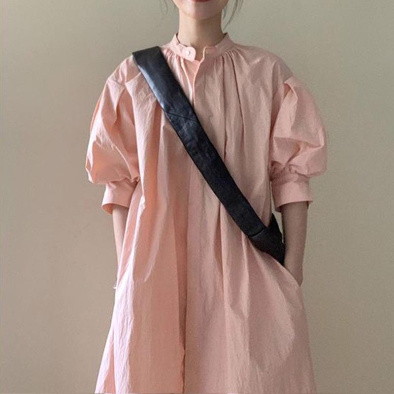 Vestido Casual de Manga Abullonada Estilo Francés para Mujer en Verano, Holgazán, Suelto, Delgado, de Alta Gama, Camisa por Encima de la Rodilla, Falda Larga
