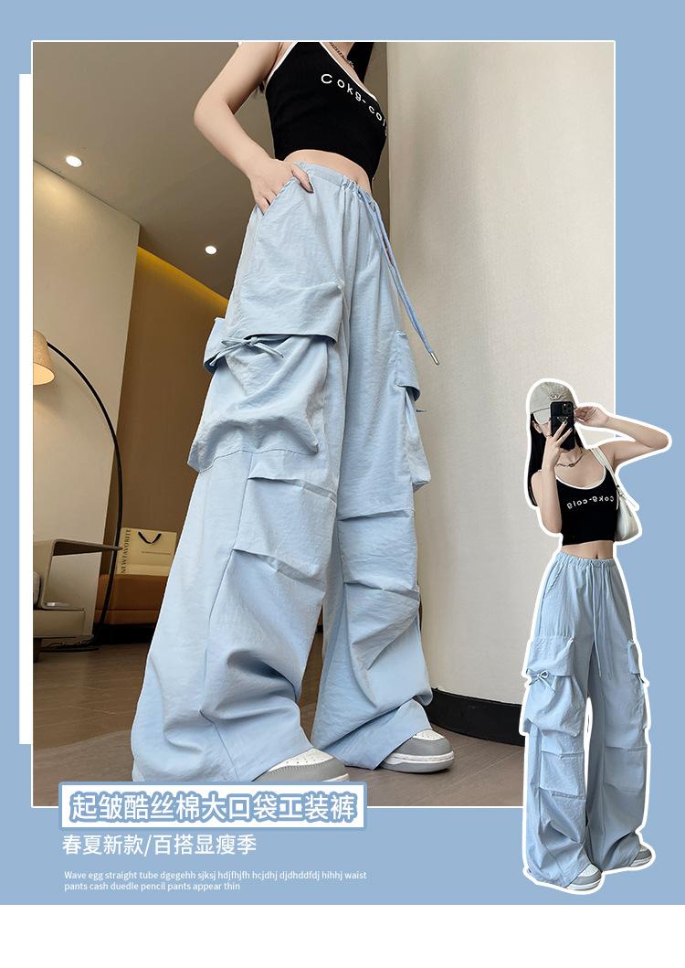 Pantalones Cargo de Estilo Retro para Mujer Verano Delgados 2025 Nuevos Slim Casual Americanos de Pierna Ancha Pantalones Deportivos de Cintura Alta para Mujer