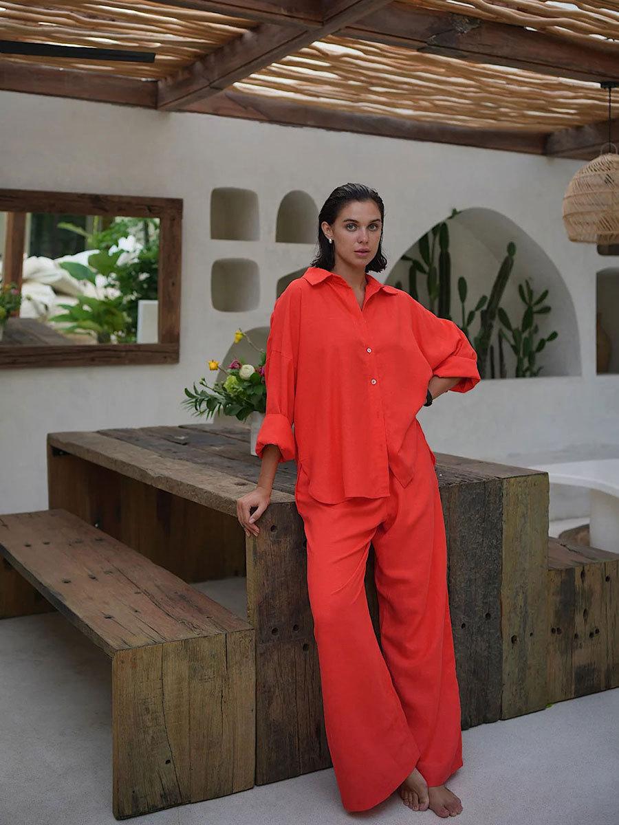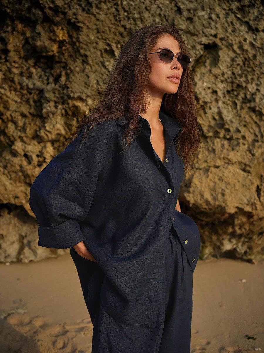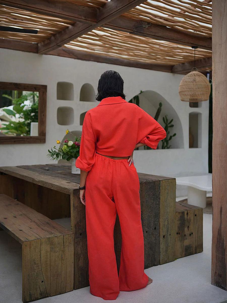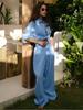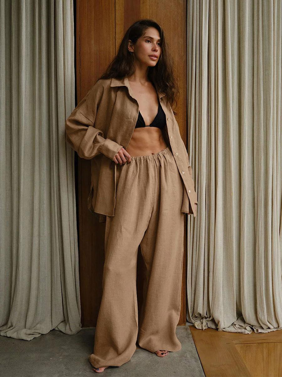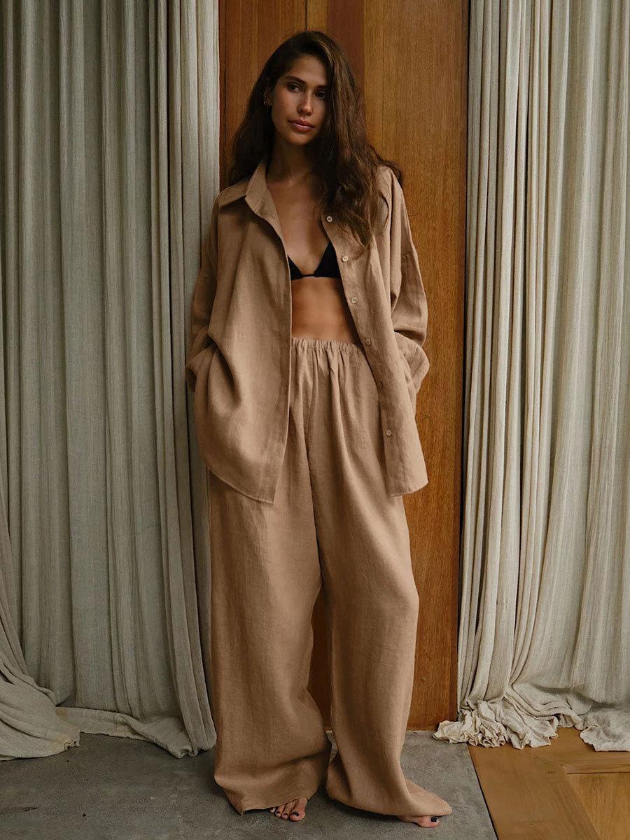 Traje casual de pantalón transfronterizo 2024 Europa y Estados Unidos otoño nuevo traje de pantalón ancho de camisa de algodón casual suelto