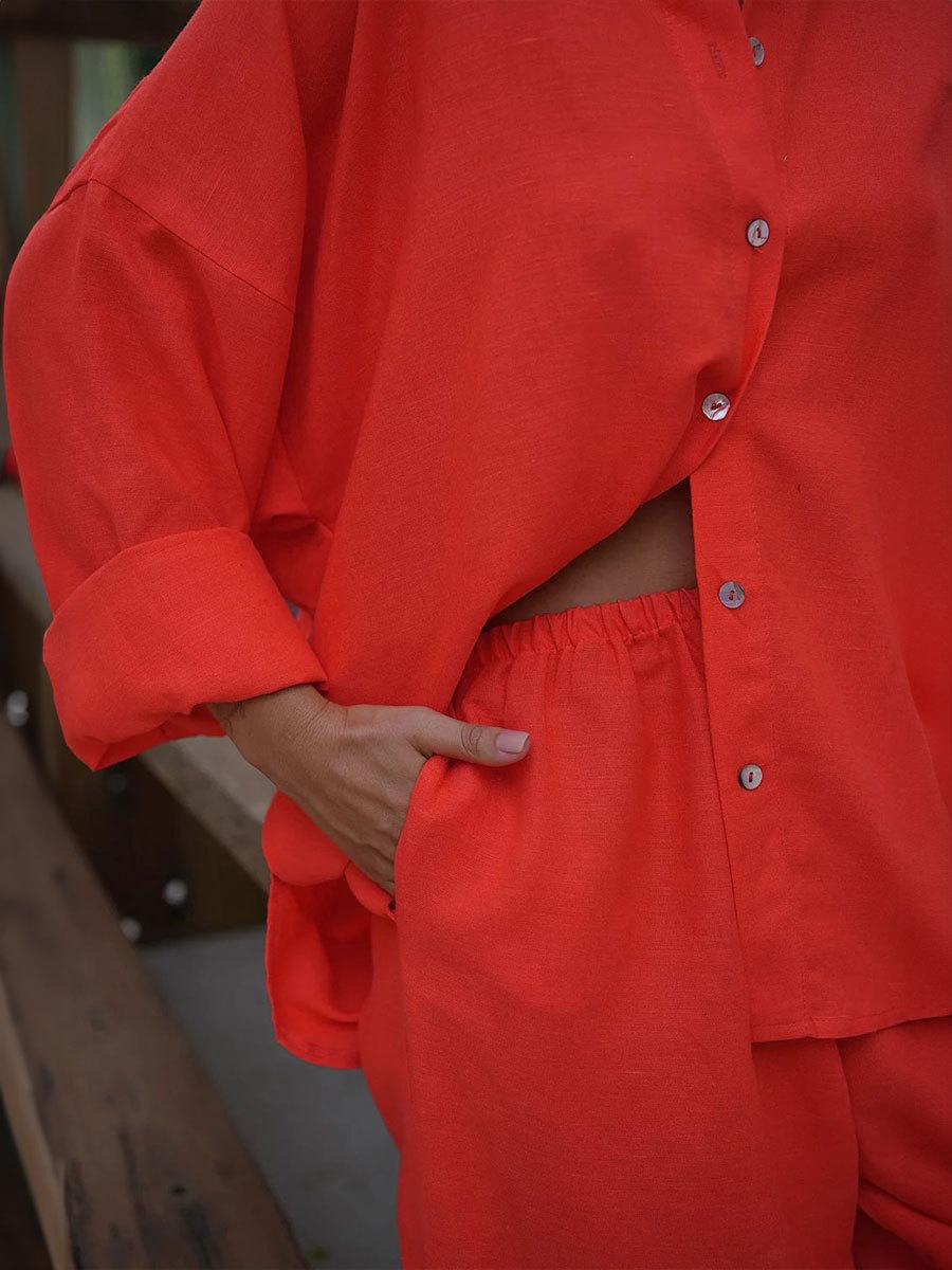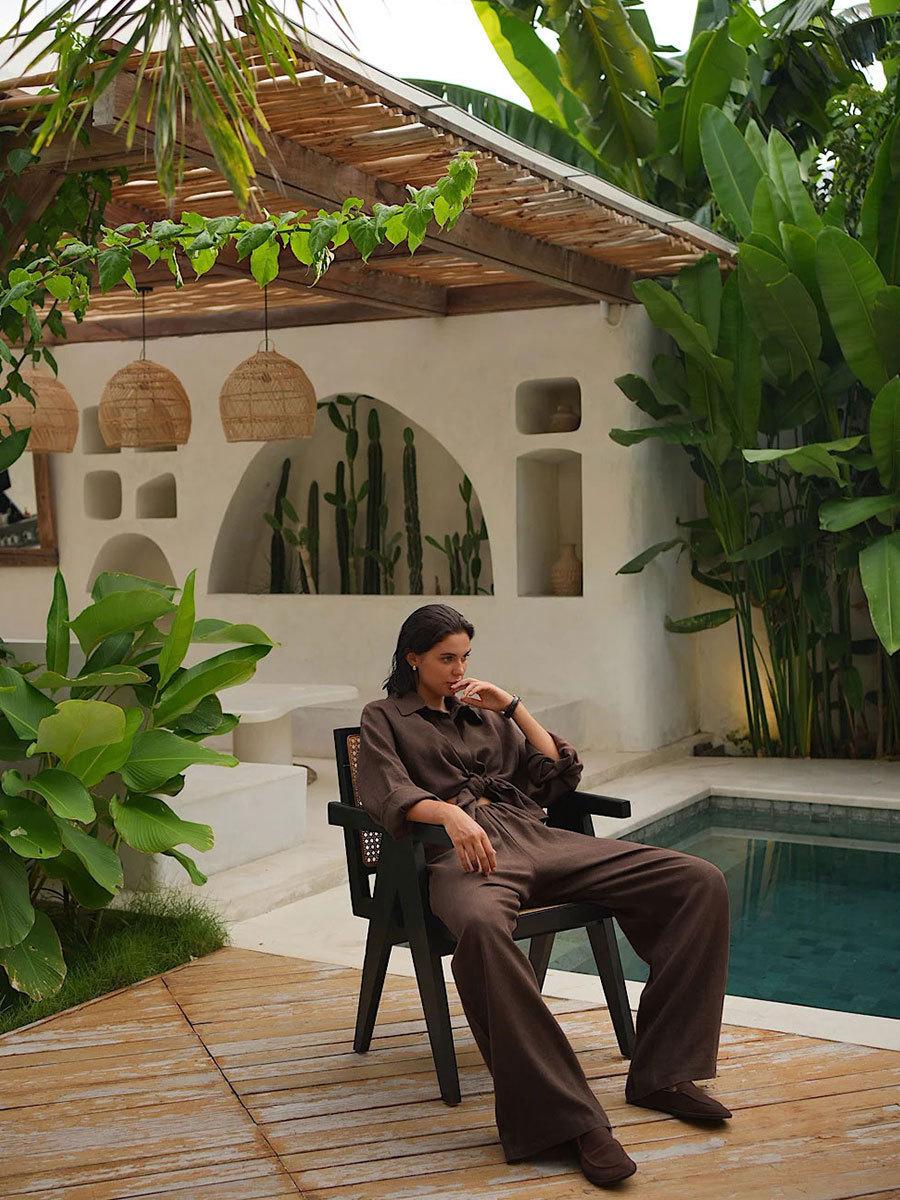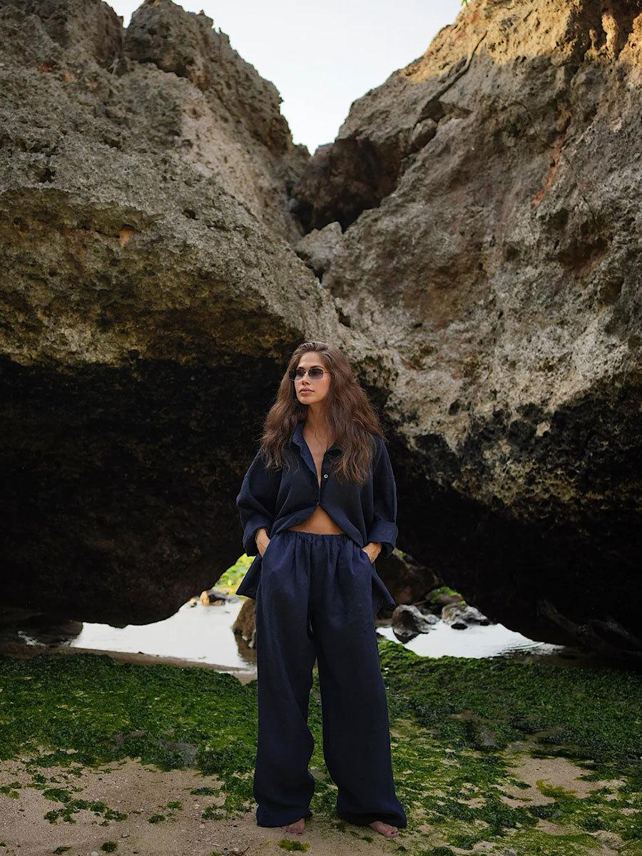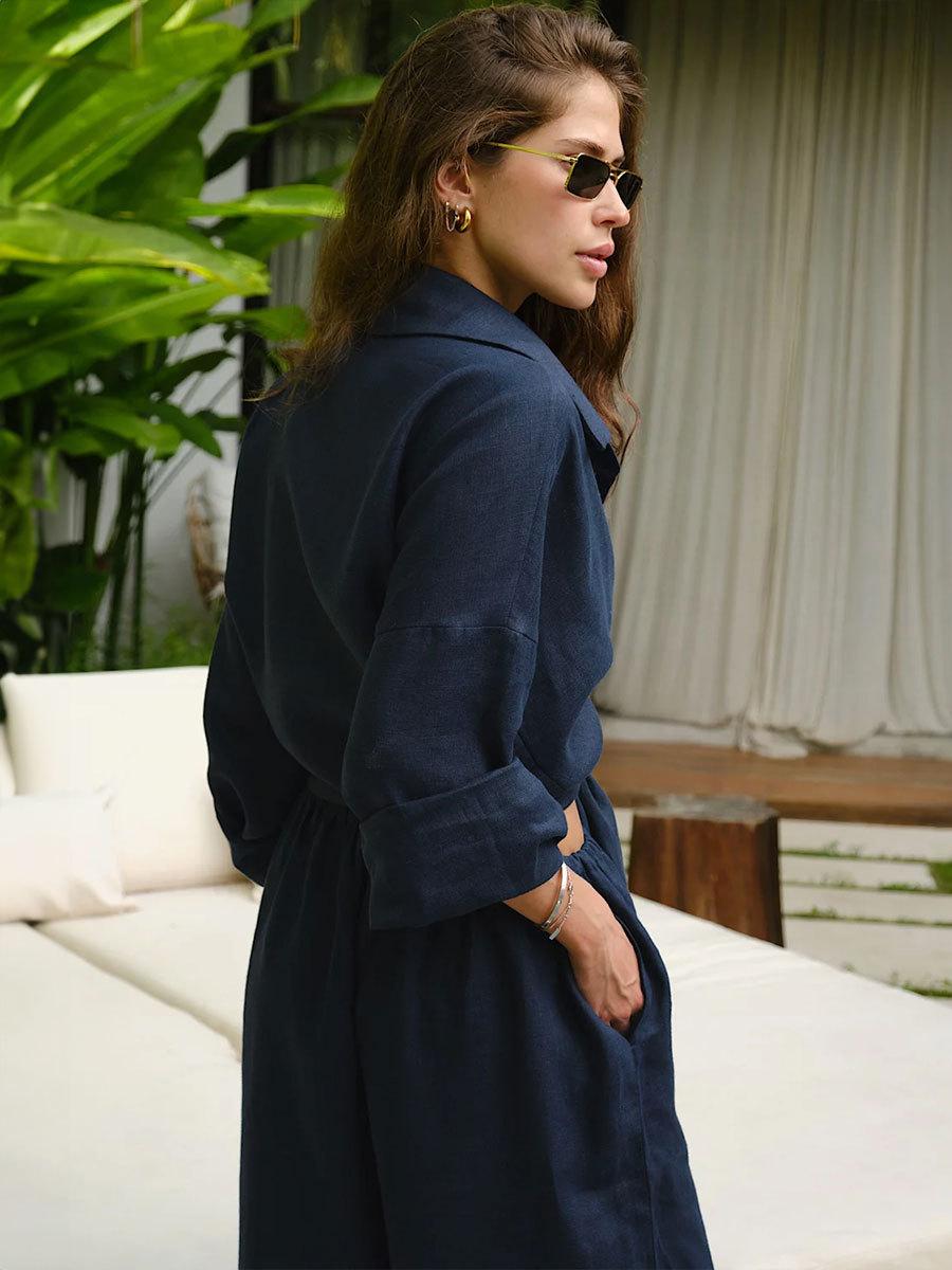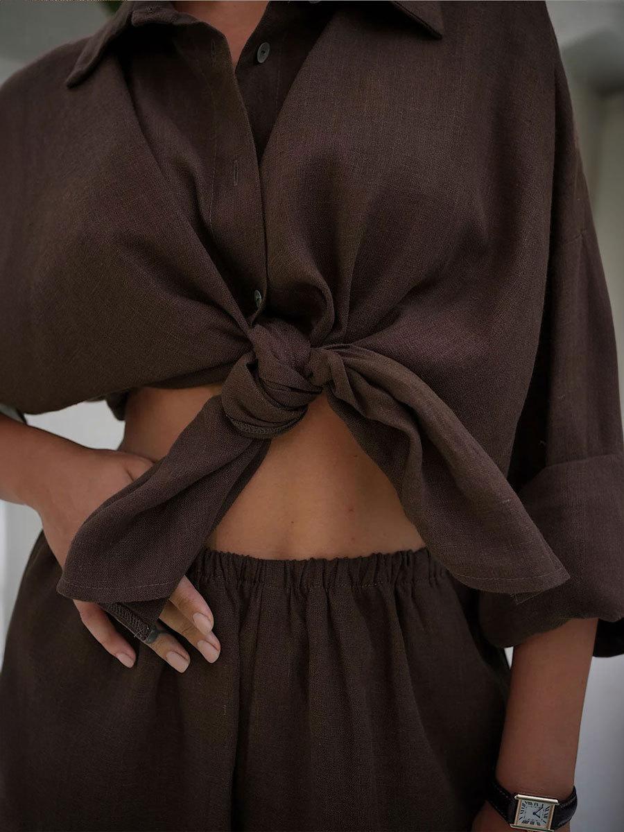 Traje casual de pantalón transfronterizo 2024 Europa y Estados Unidos otoño nuevo traje de pantalón ancho de camisa de algodón casual suelto