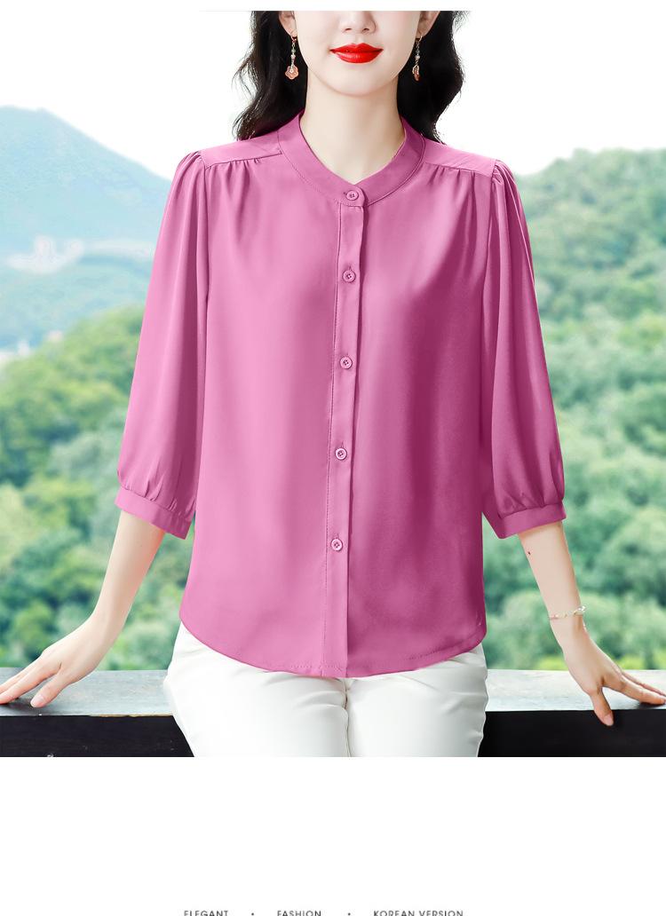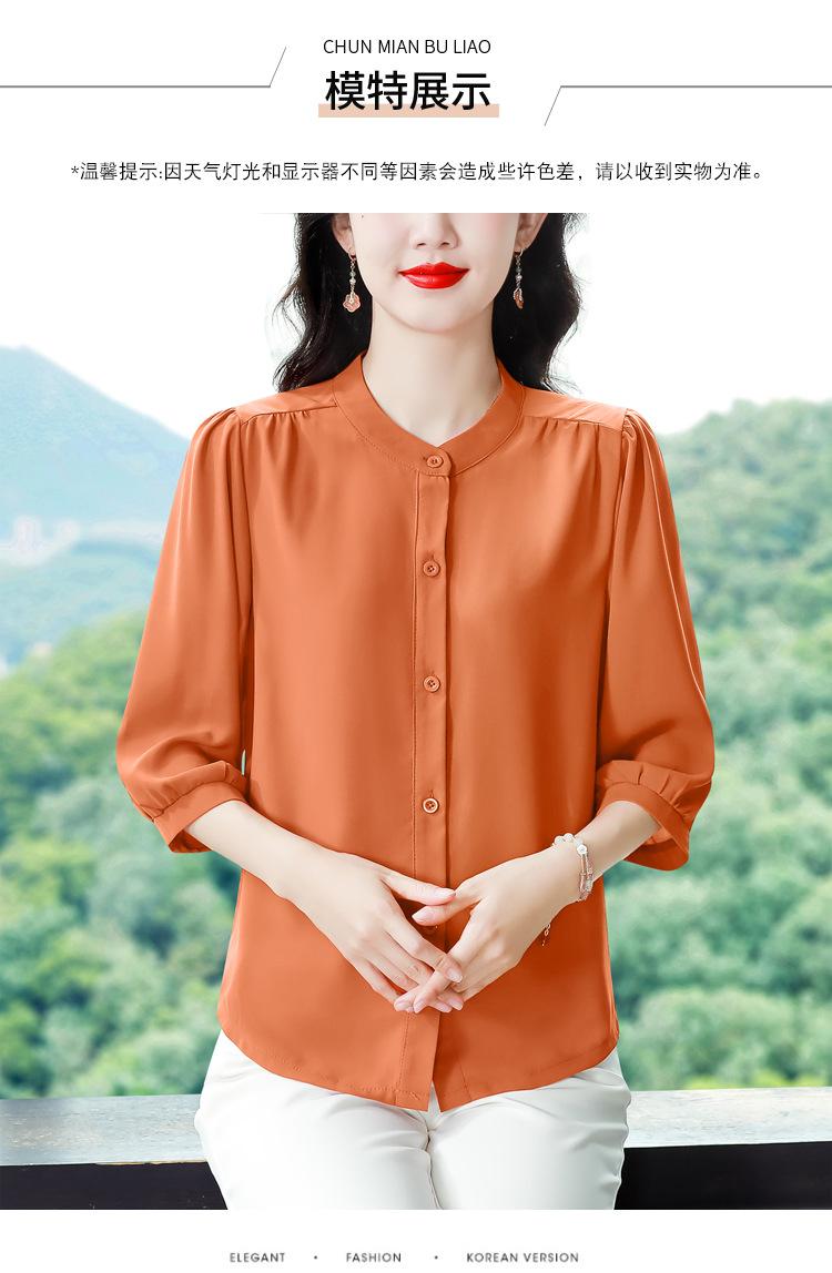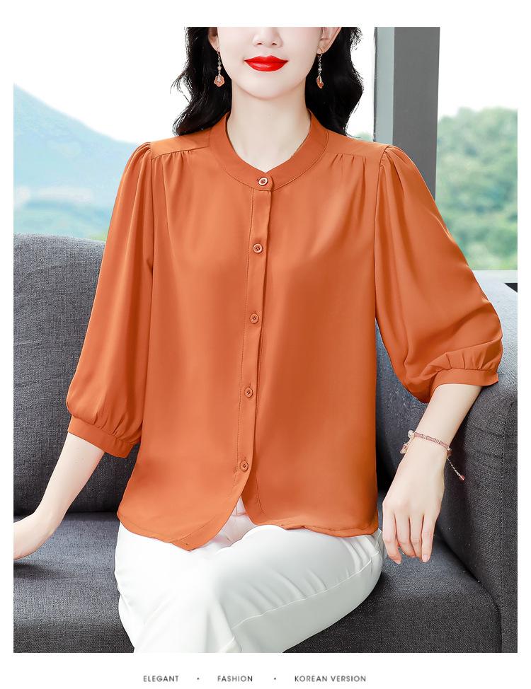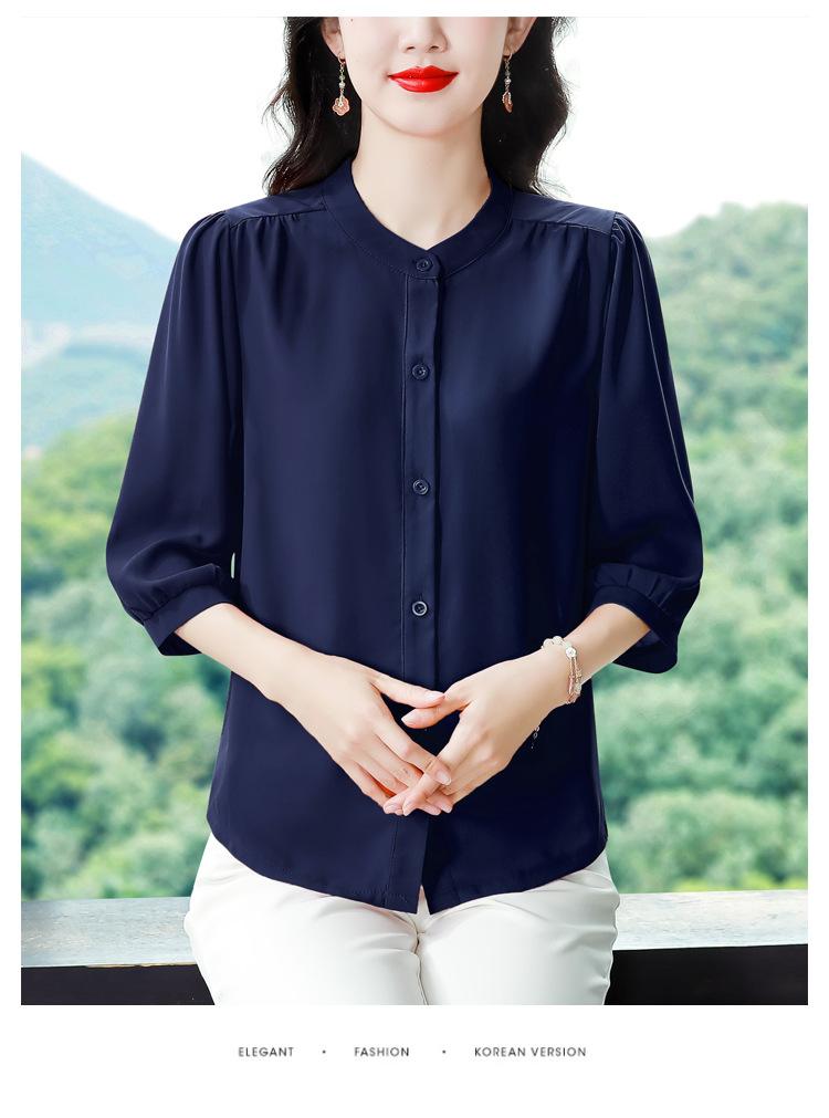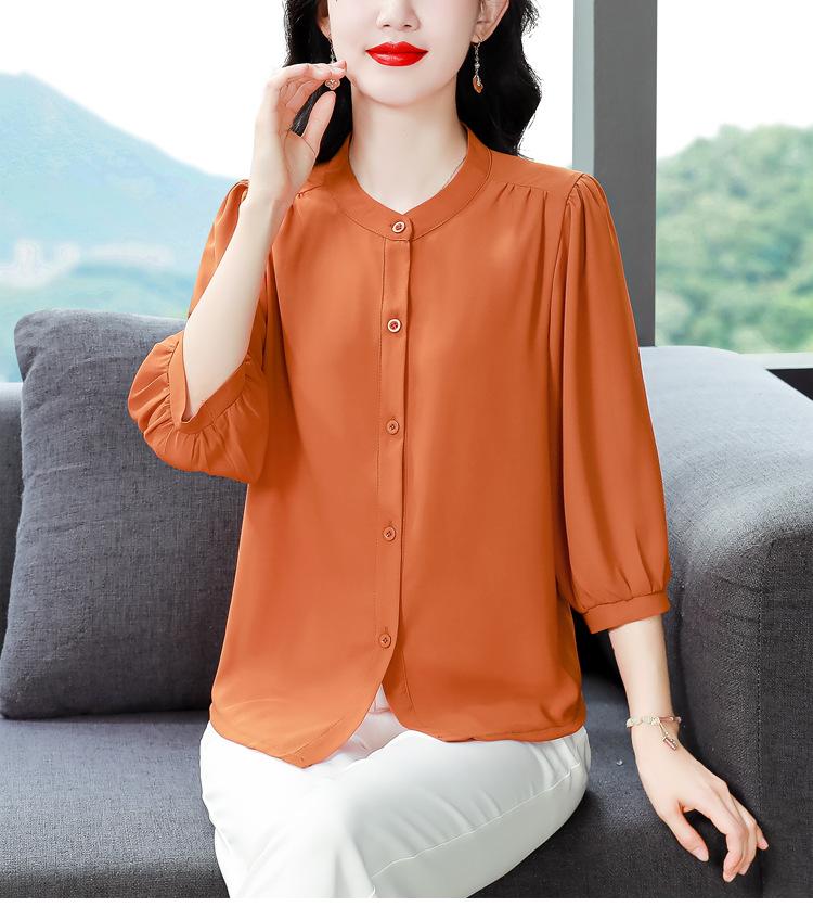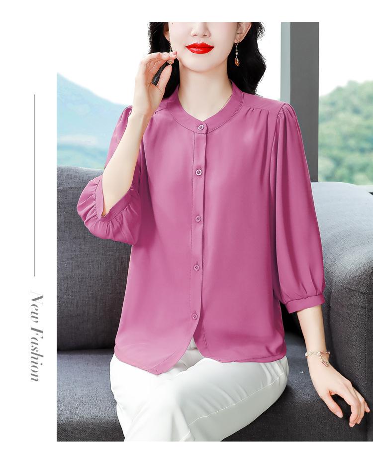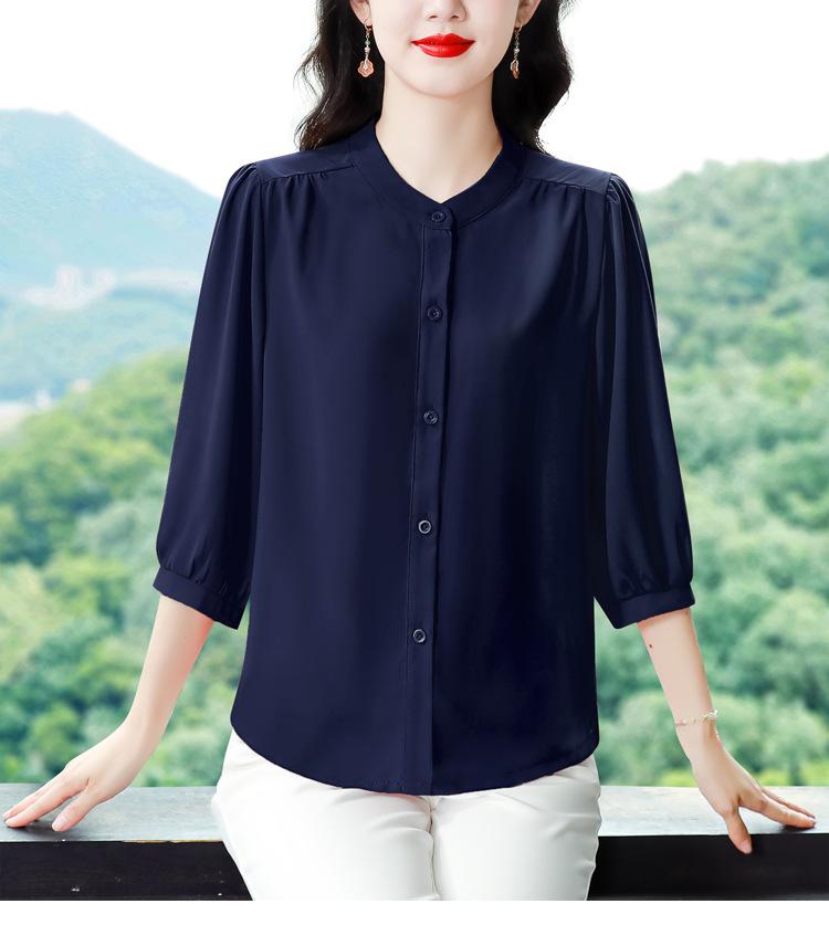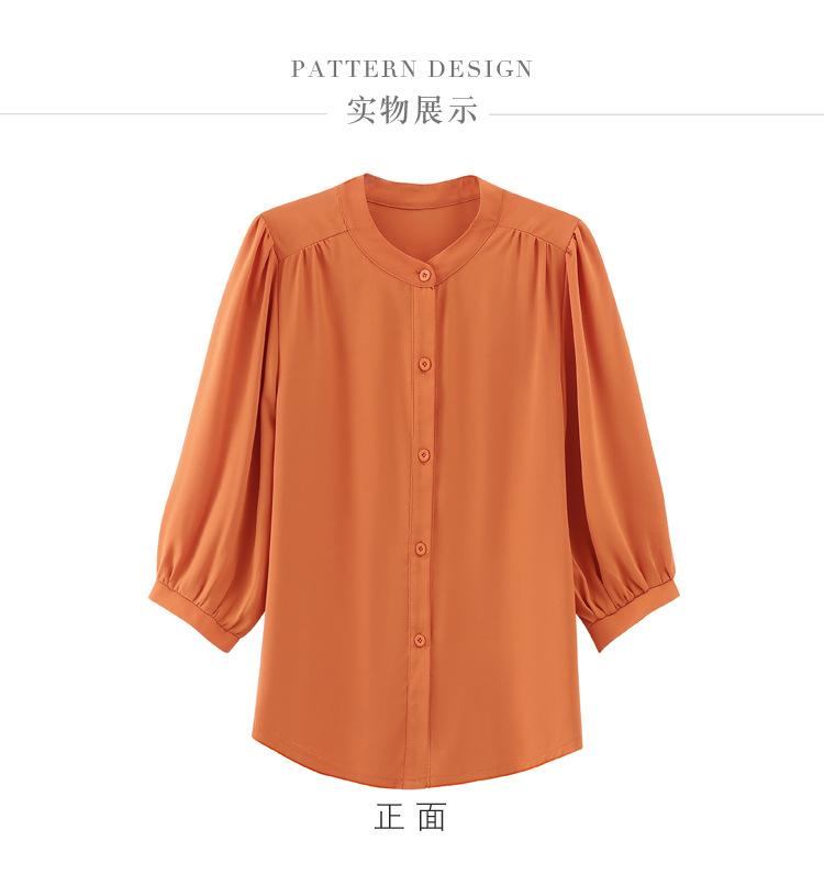 Camisa de Chifón de Manga Tres Cuartos con Cuello Mao para Mujer Verano 2024 Nuevo Diseño Versátil de Top de Media Manga Camisa Estilo Occidental